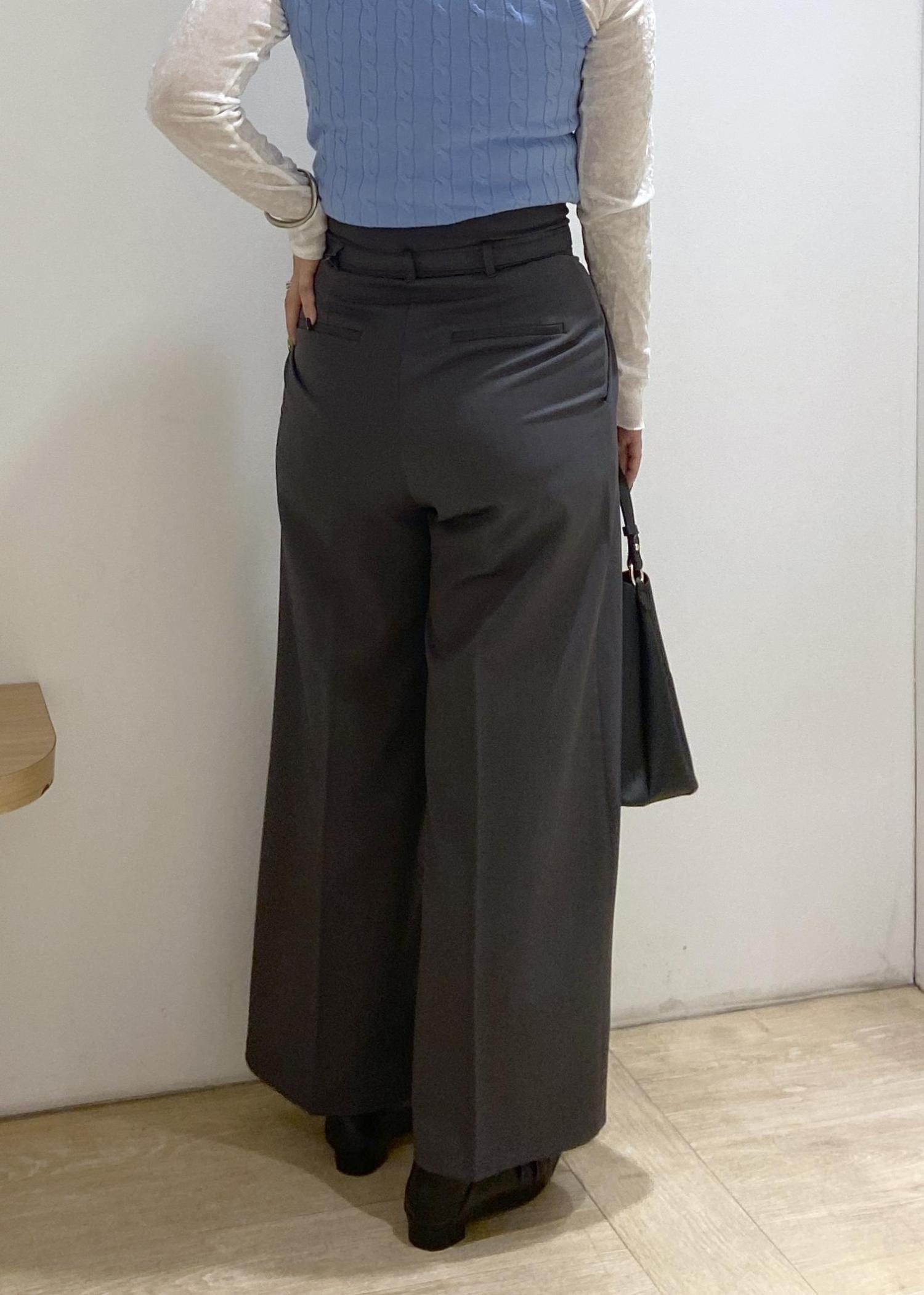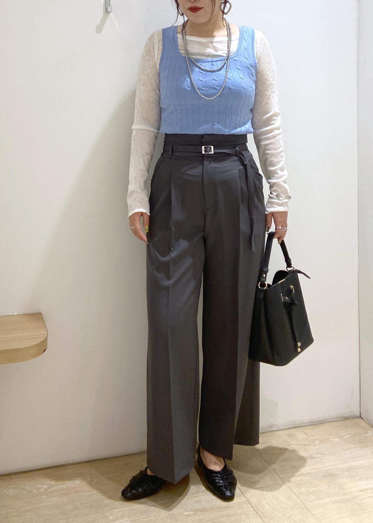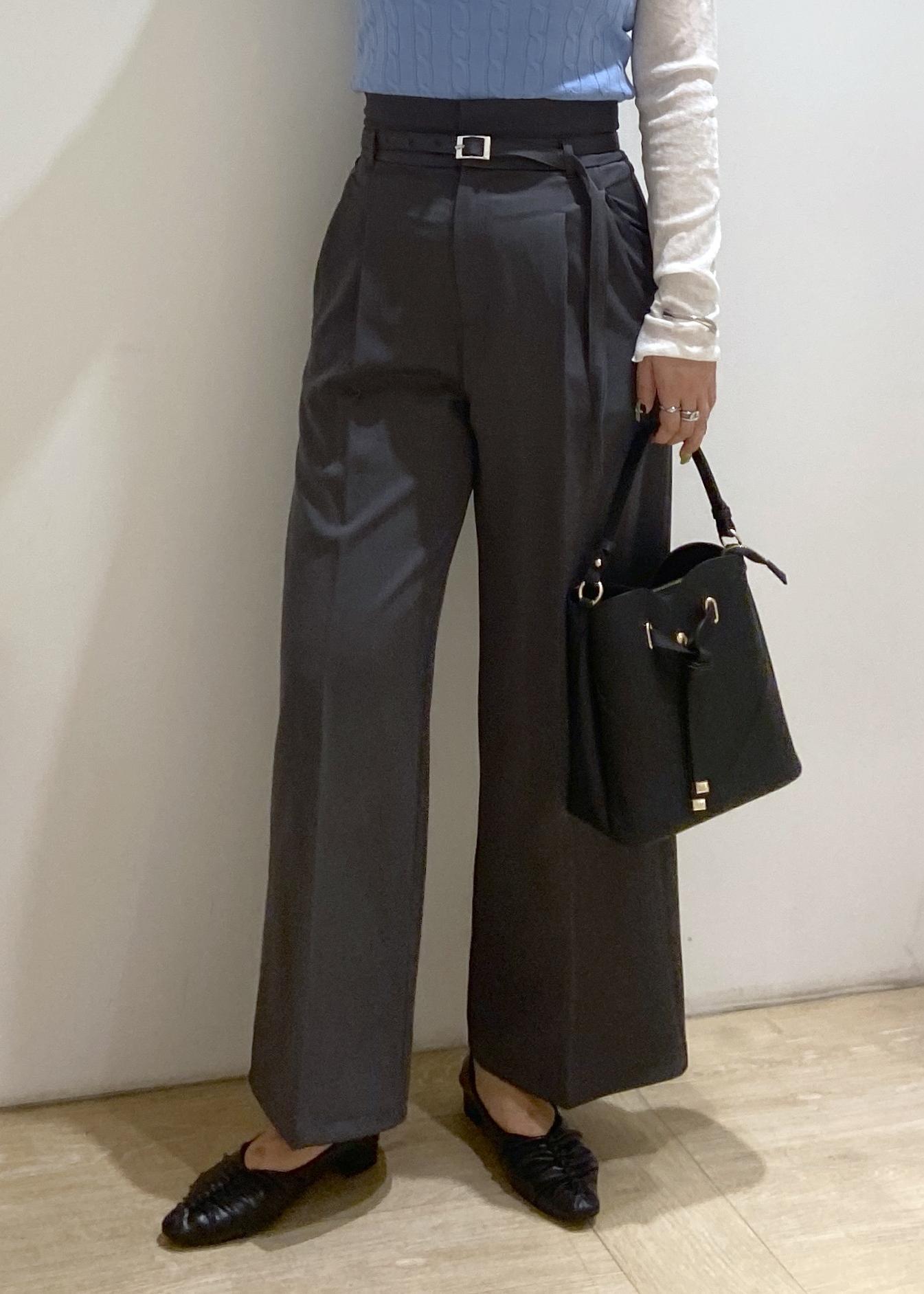 VISベルトディテールタックワイドパンツ/イージーケアチャコール / M¥6,589レビュー裏地なしのサラッとした生地で、長い期間で使いやすいです。