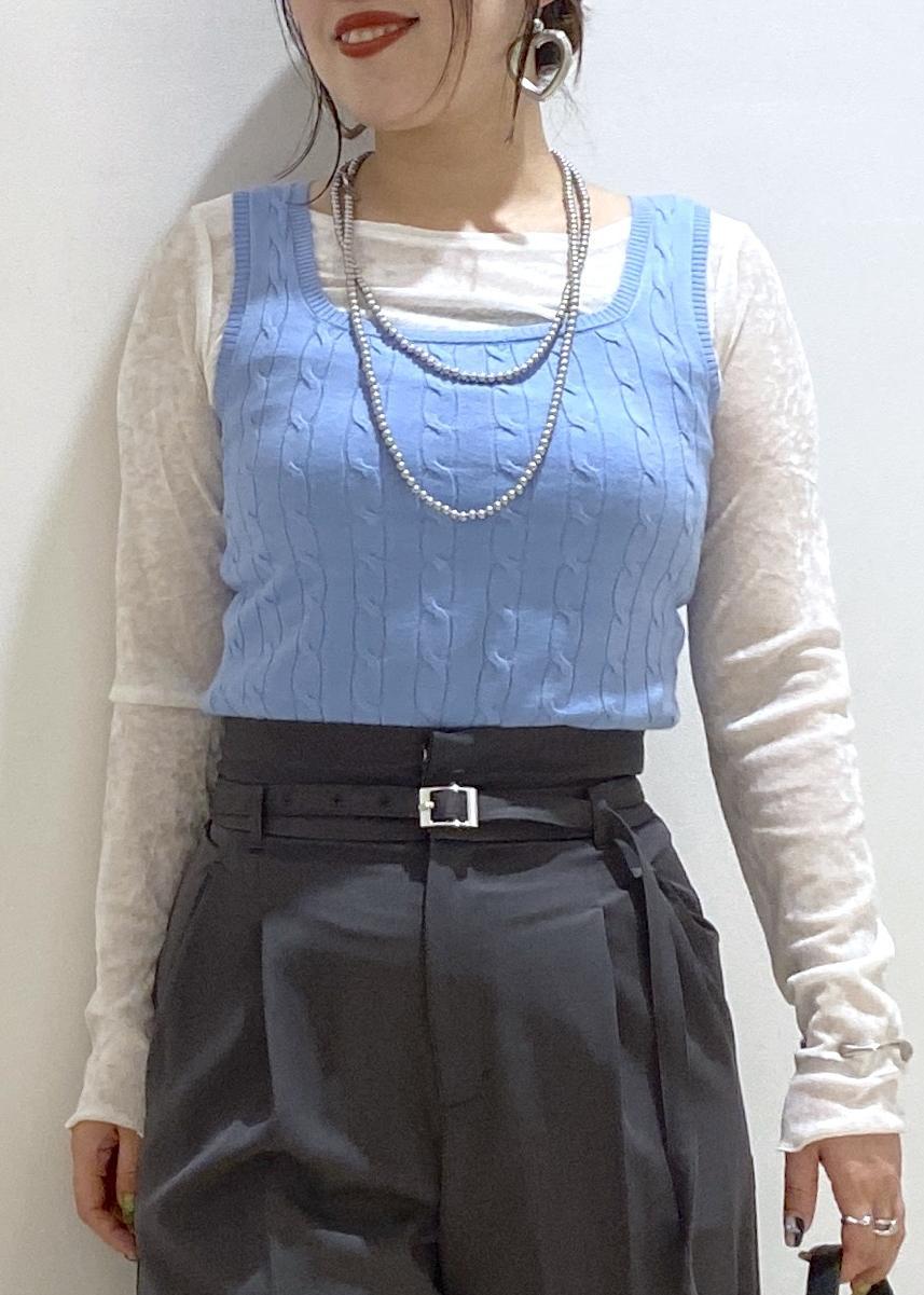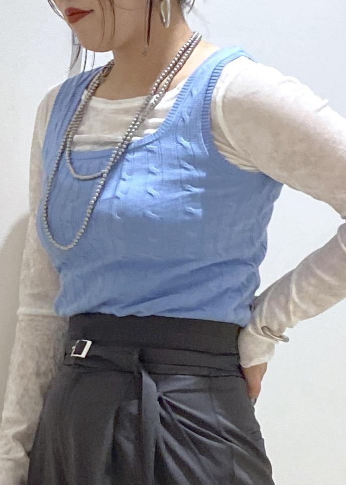VIS【前後2WAY】ケーブルニットタンクトップサックス / F¥2,633レビュー伸縮性のある生地で、程よくタイトなシルエットです。