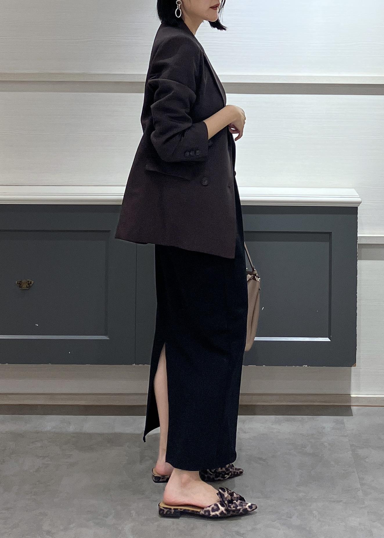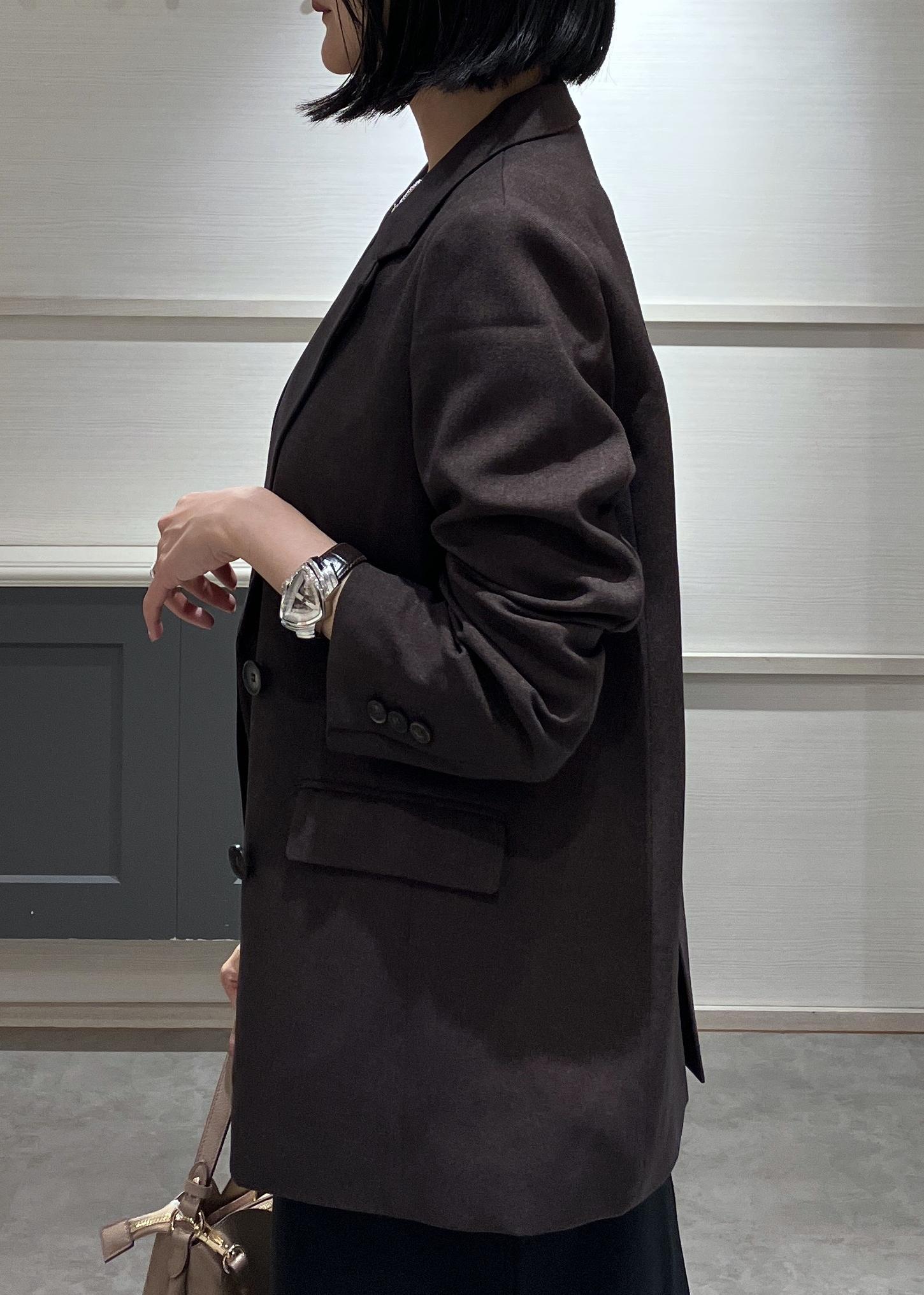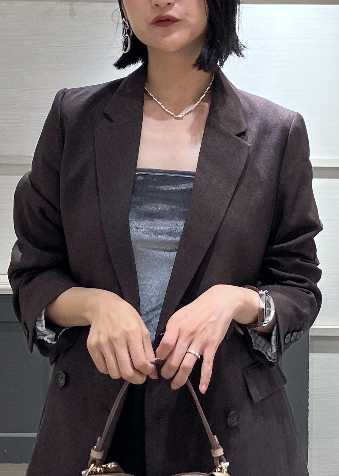 秋といえばダークブラウン!これからの季節の代表と言っても過言ではないカラージャケットをヘルシーな肌見せで女らしいジャケットスタイリングにしました♡