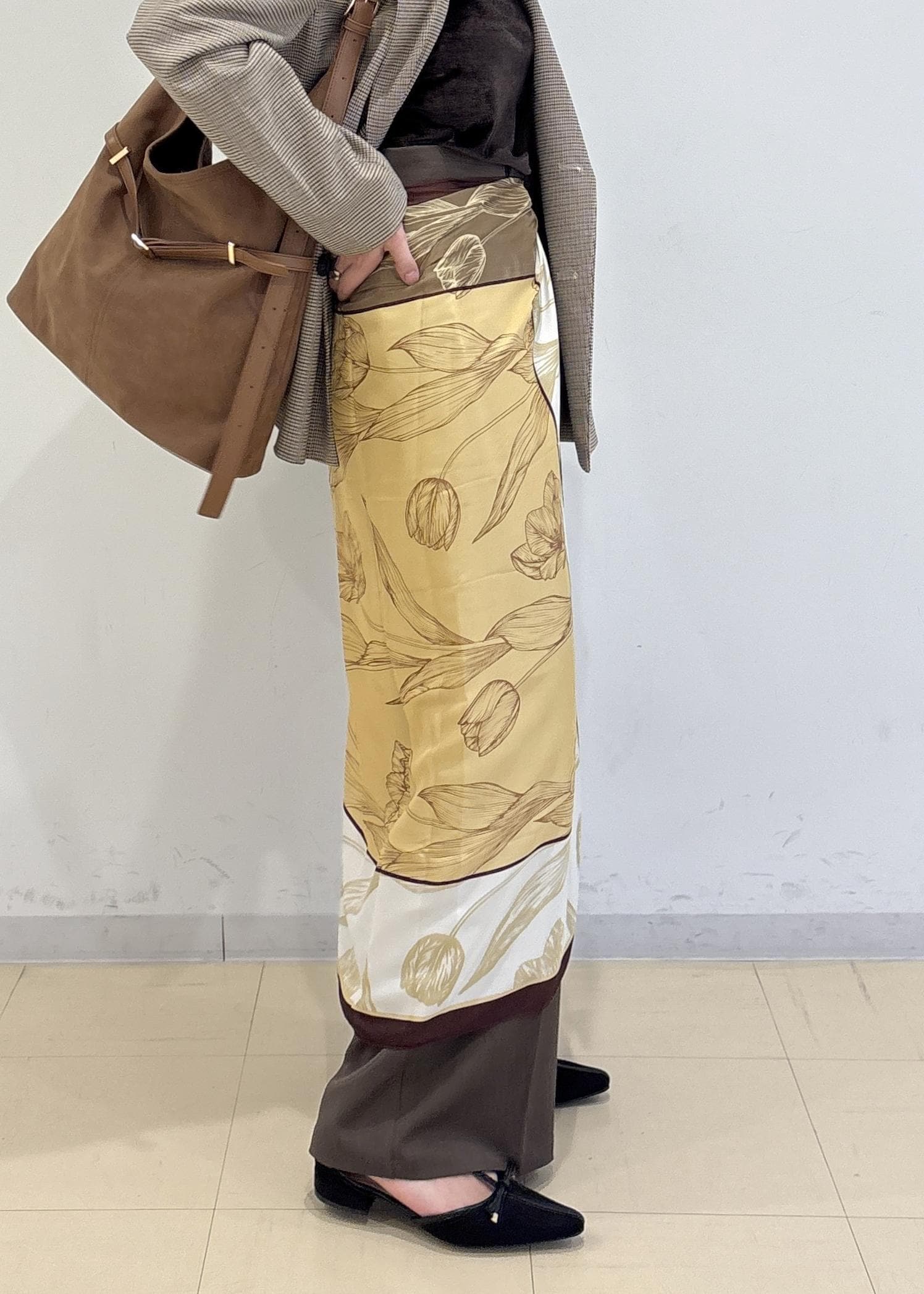 大判タイプのスカーフで腰巻きもしっかり出来るサイズ感です。