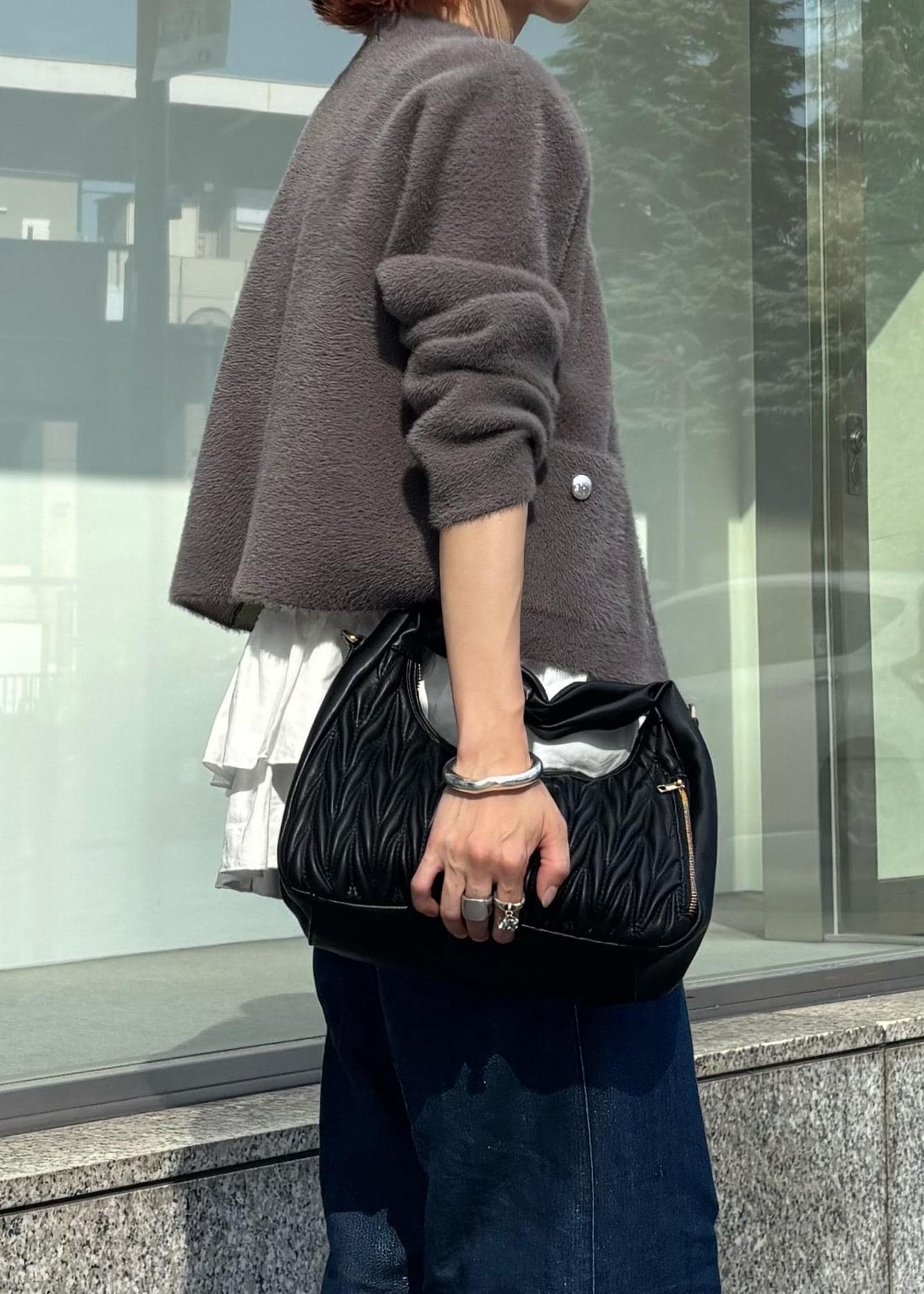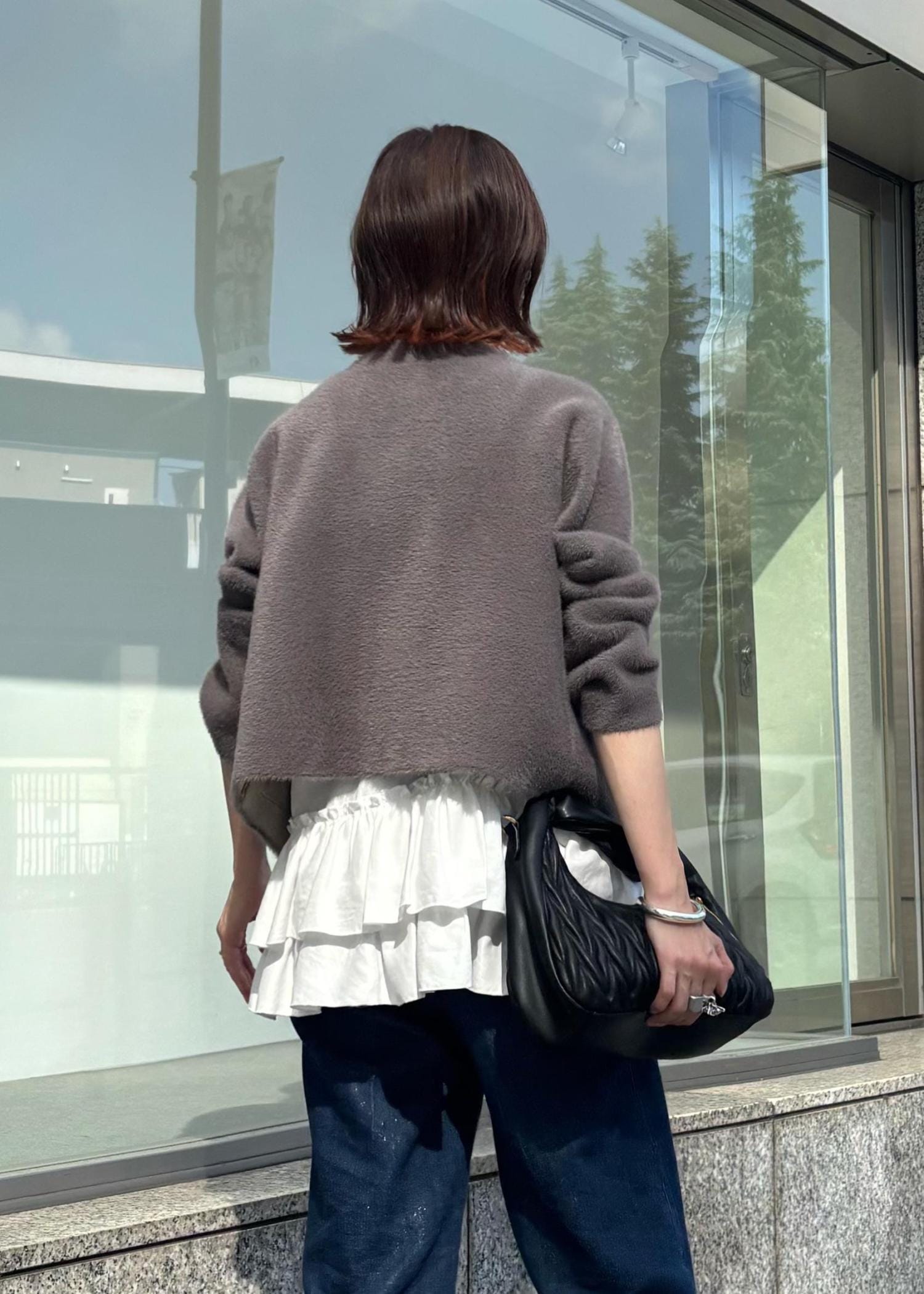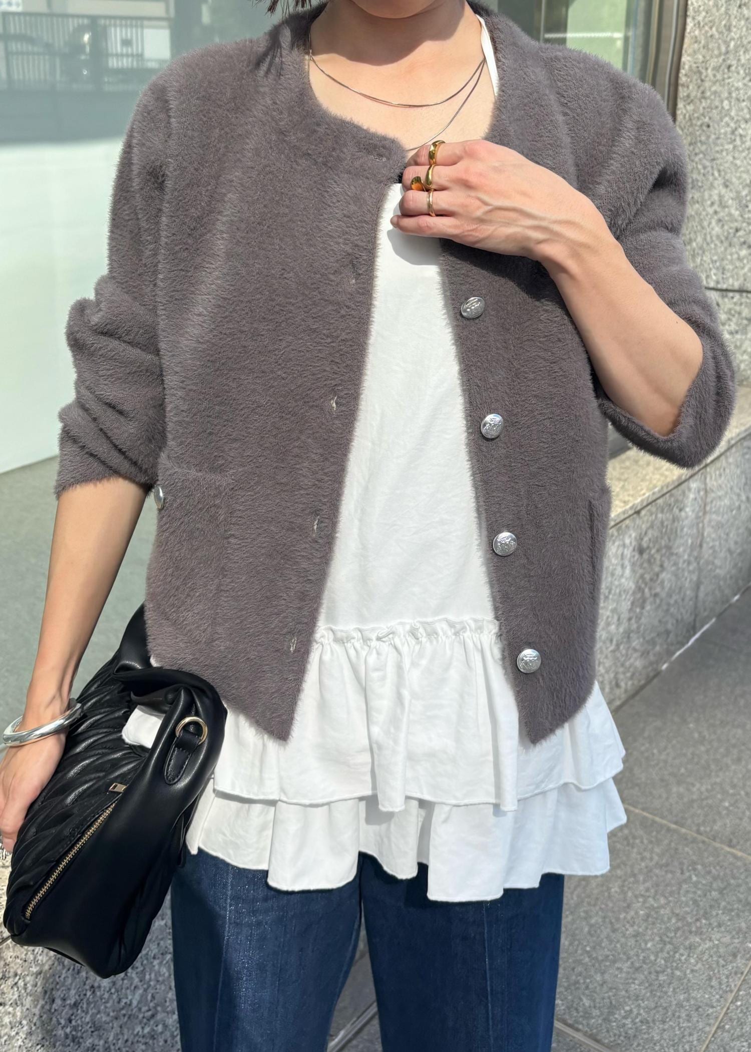 feather cardigan × denim