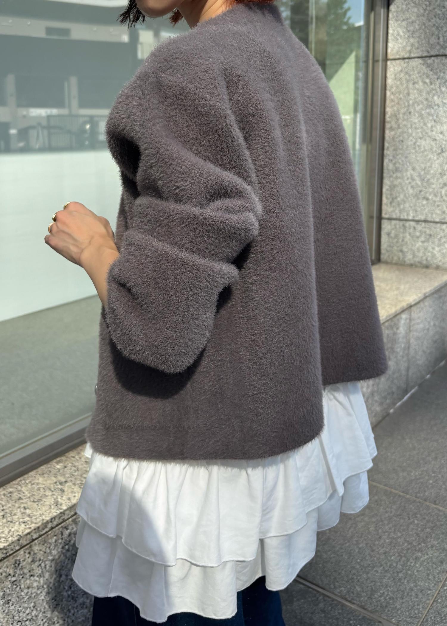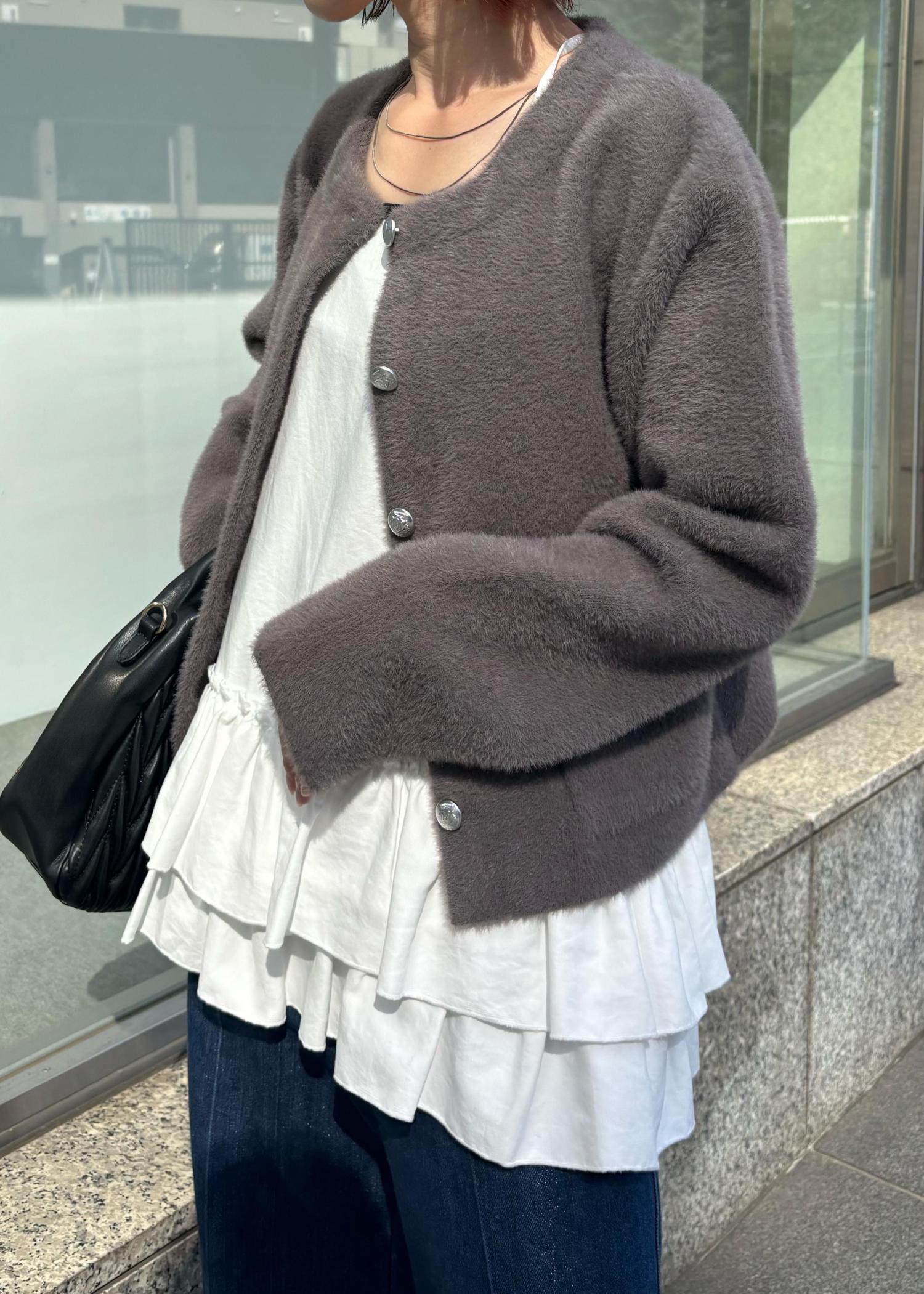 VIS接結ミニフェザーニットジャケットカーディガン/一部WEB限定カラーブラウン / F¥6,919レビューふわふわ柔らかなミニフェザーカーディガン♪昨年も同様の素材がとても人気で、とても着心地◎程よい伸縮性があり、けれど形崩れはしにくい上品なデザイン。メタルボタンも高みえします。全体的に程よくゆとりがあり、着丈は腰くらいの長さでした。