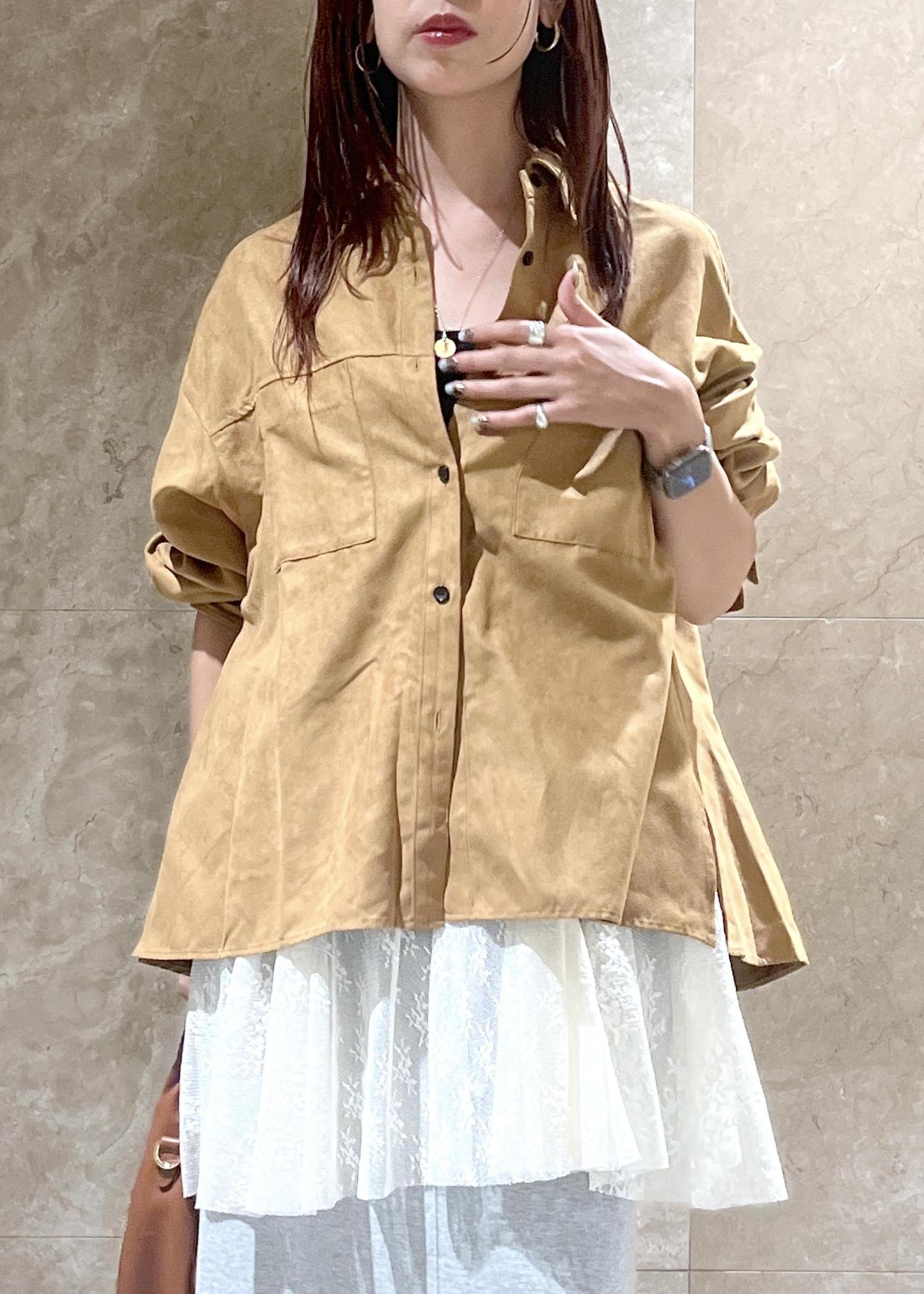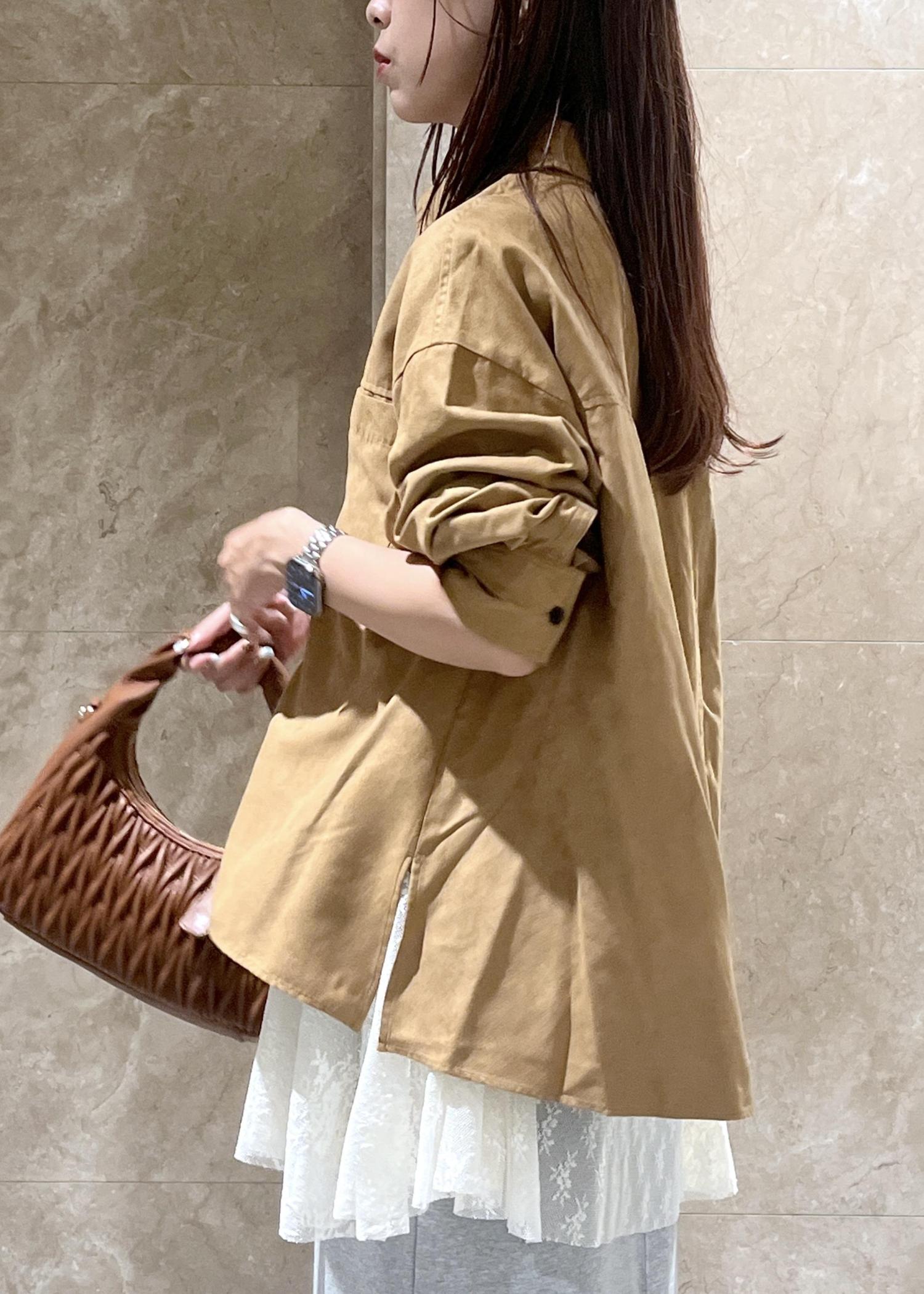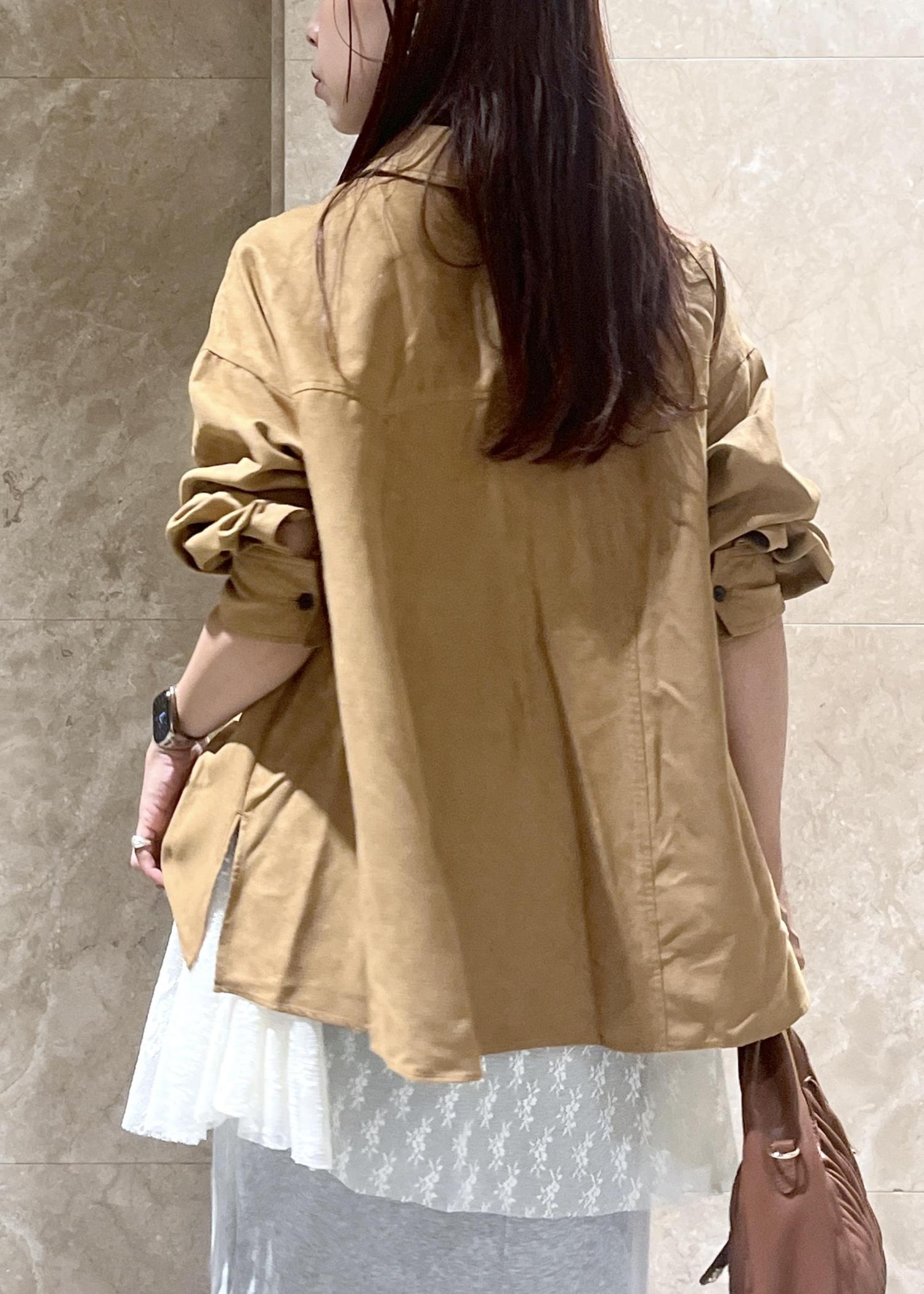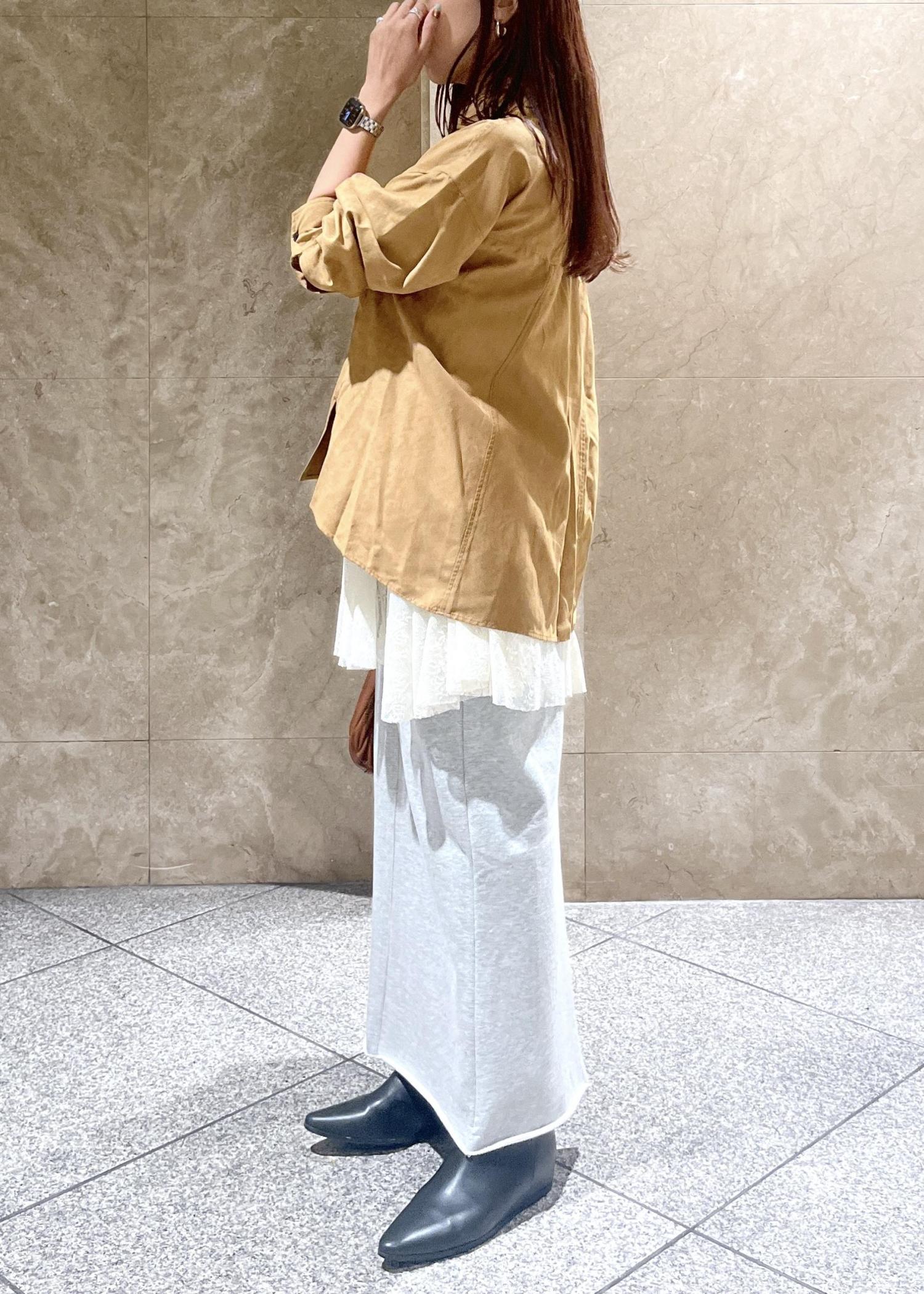 キャメル系のカラーをリアルバイで着用していますが、残暑の残る今の時期でも取り入れやすく、秋らしく華やぐ一枚です!