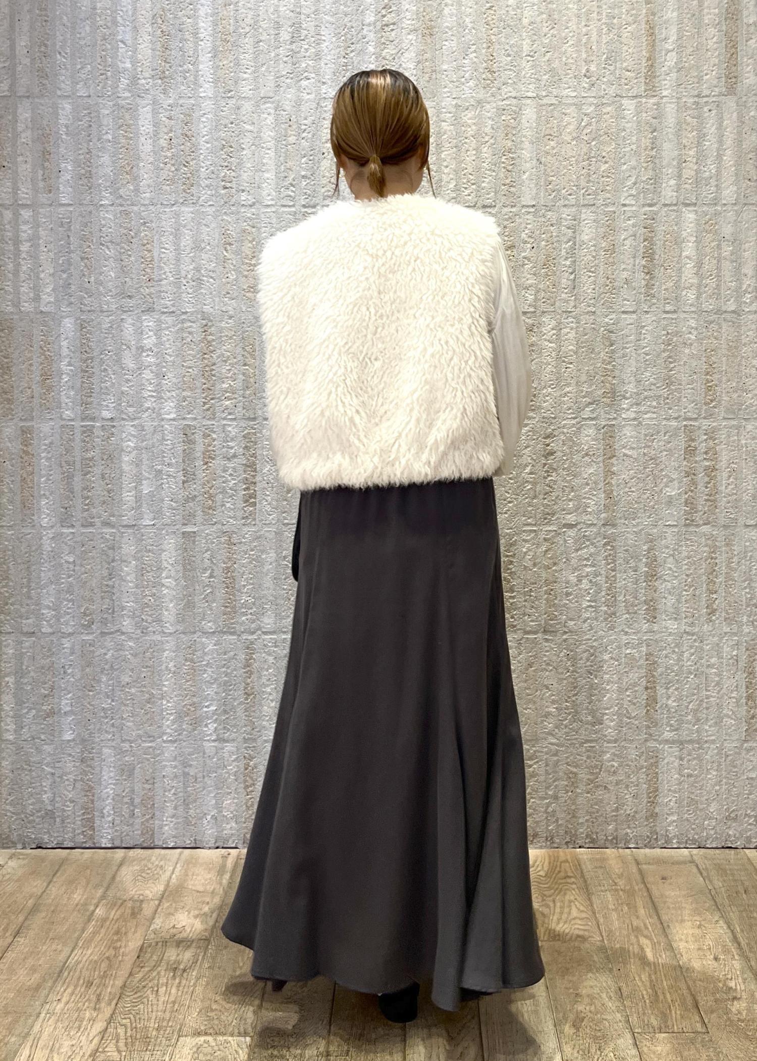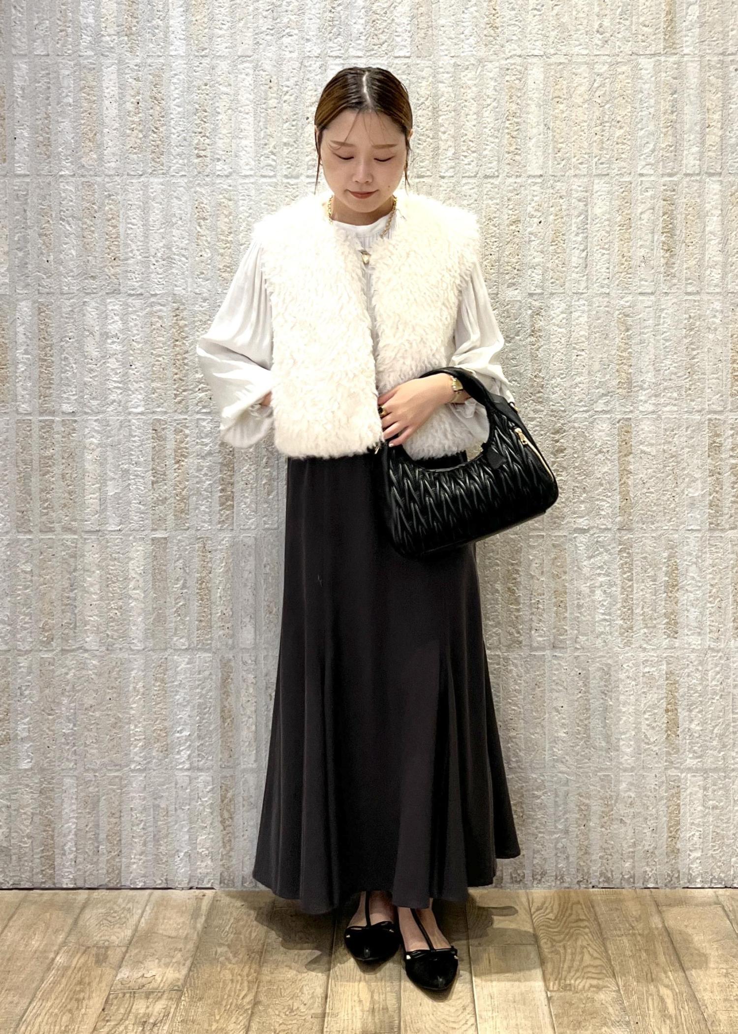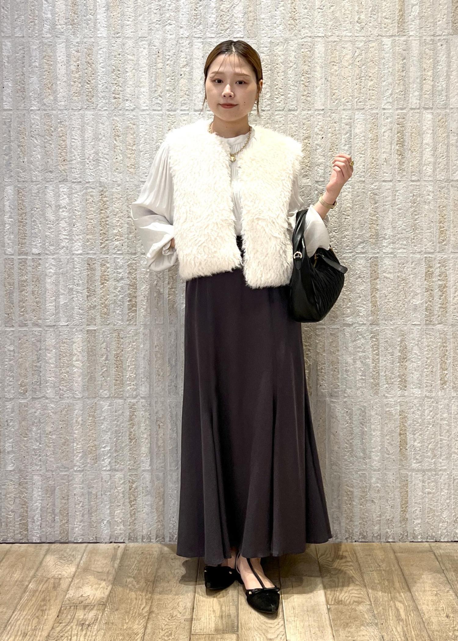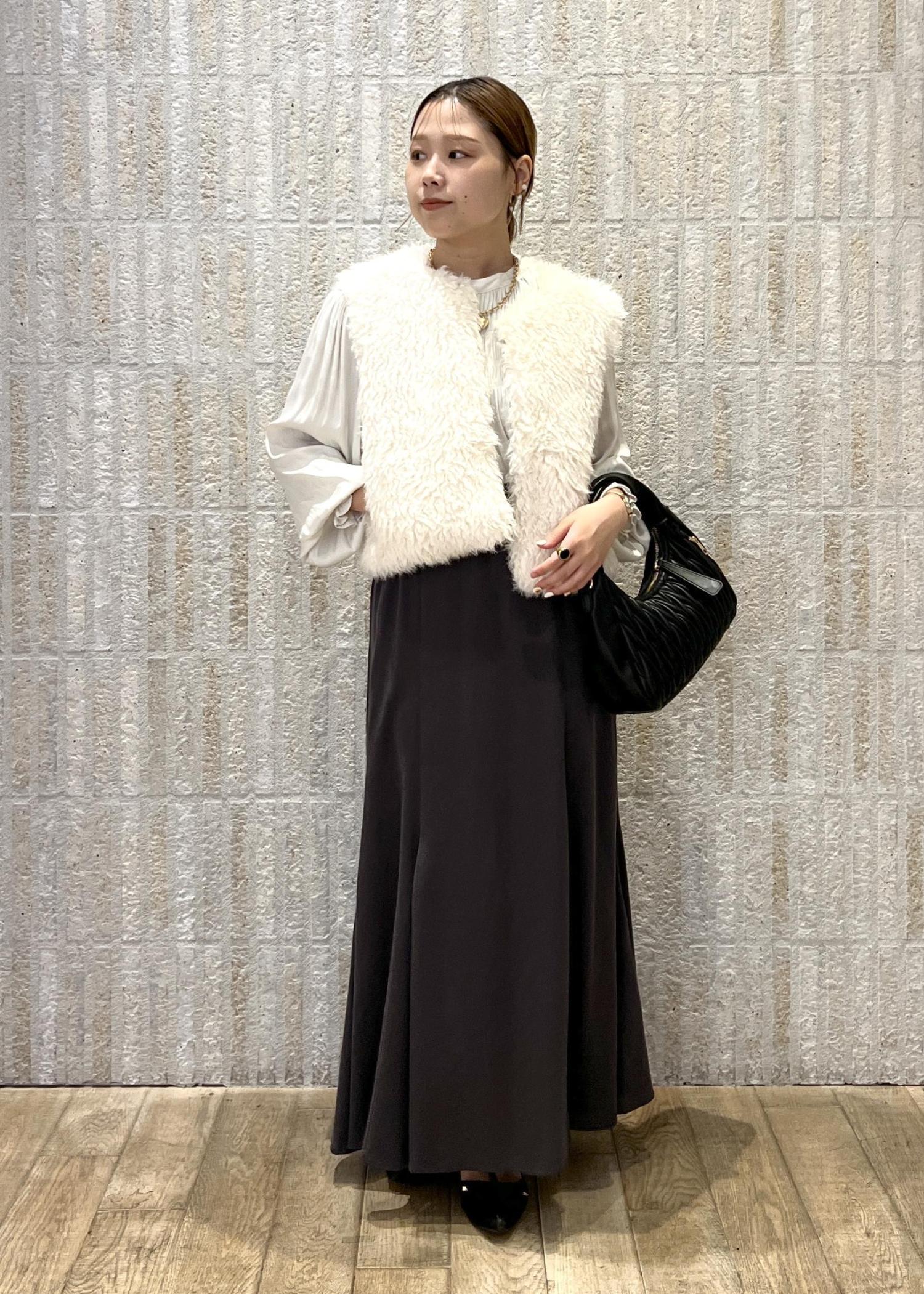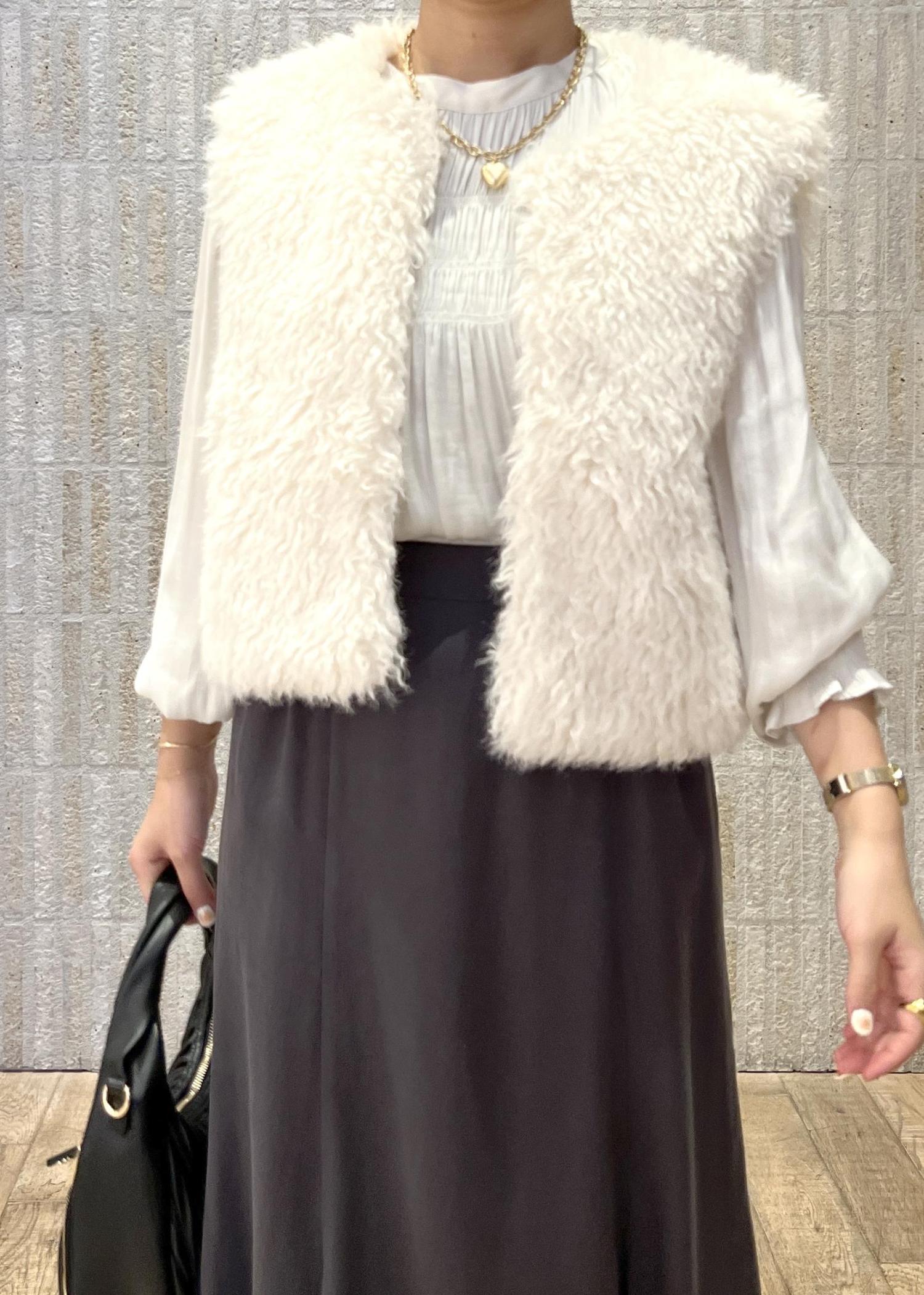 ファーベストを合わせて、頑張りすぎてる印象にならないように、少しカジュアル要素をプラスしてみました!
