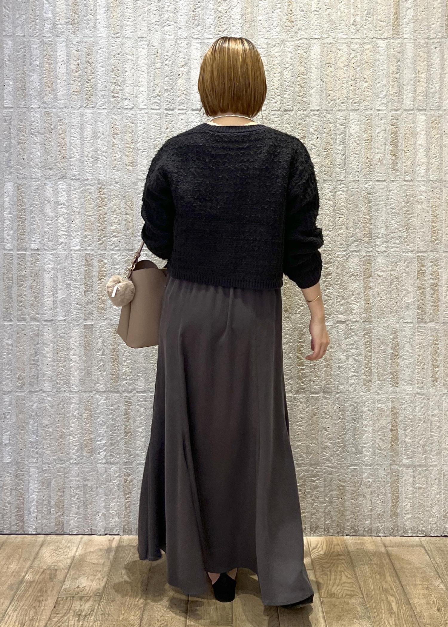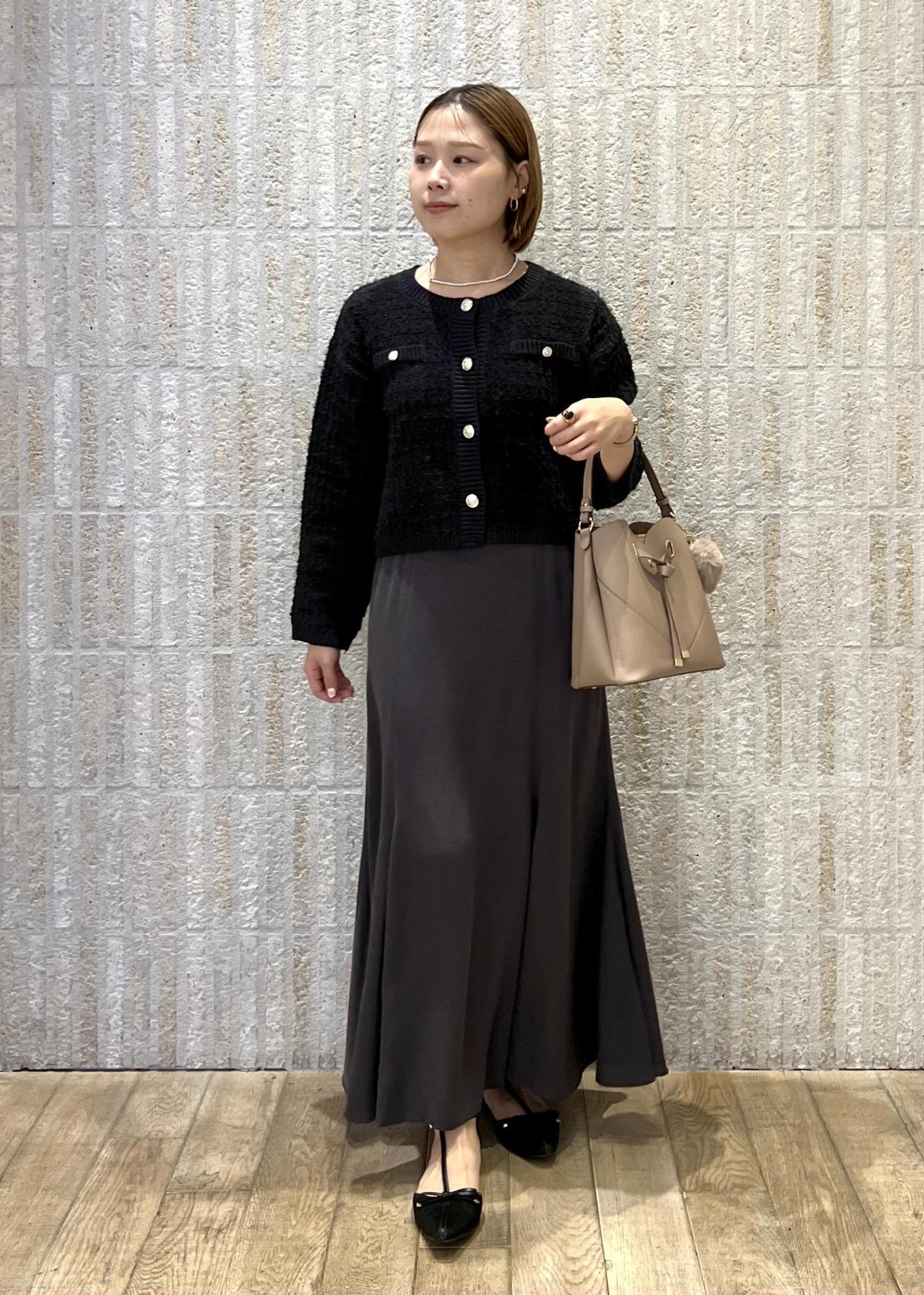 同色系のスカートを合わせて、大人綺麗ねコーデにしました。