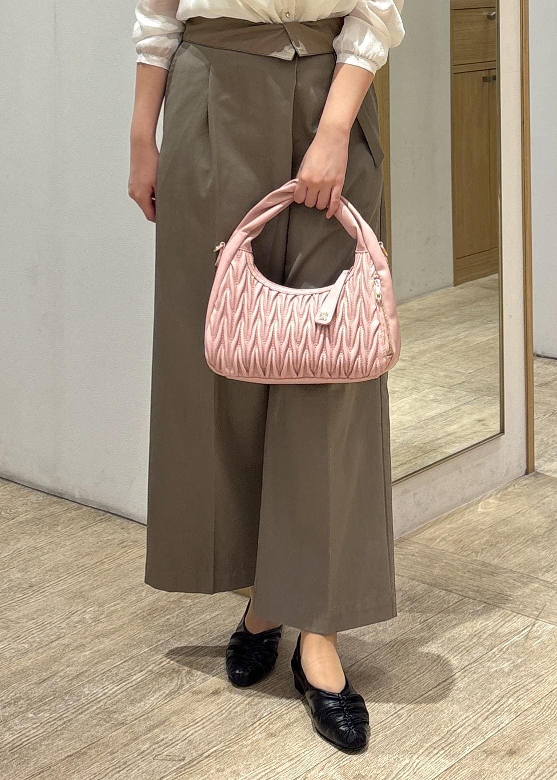 VIS【2WAY】ねじりハンドルキルティングバッグピンク系 / F¥7,909レビューコンパクトながら存在感のあるバッグで、シルエットを邪魔せずにきちんと感をプラス。