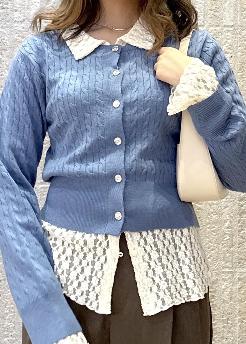 VISレースポロ襟カーディガンキナリ / F¥3,842レビューレース素材のカーディガン。