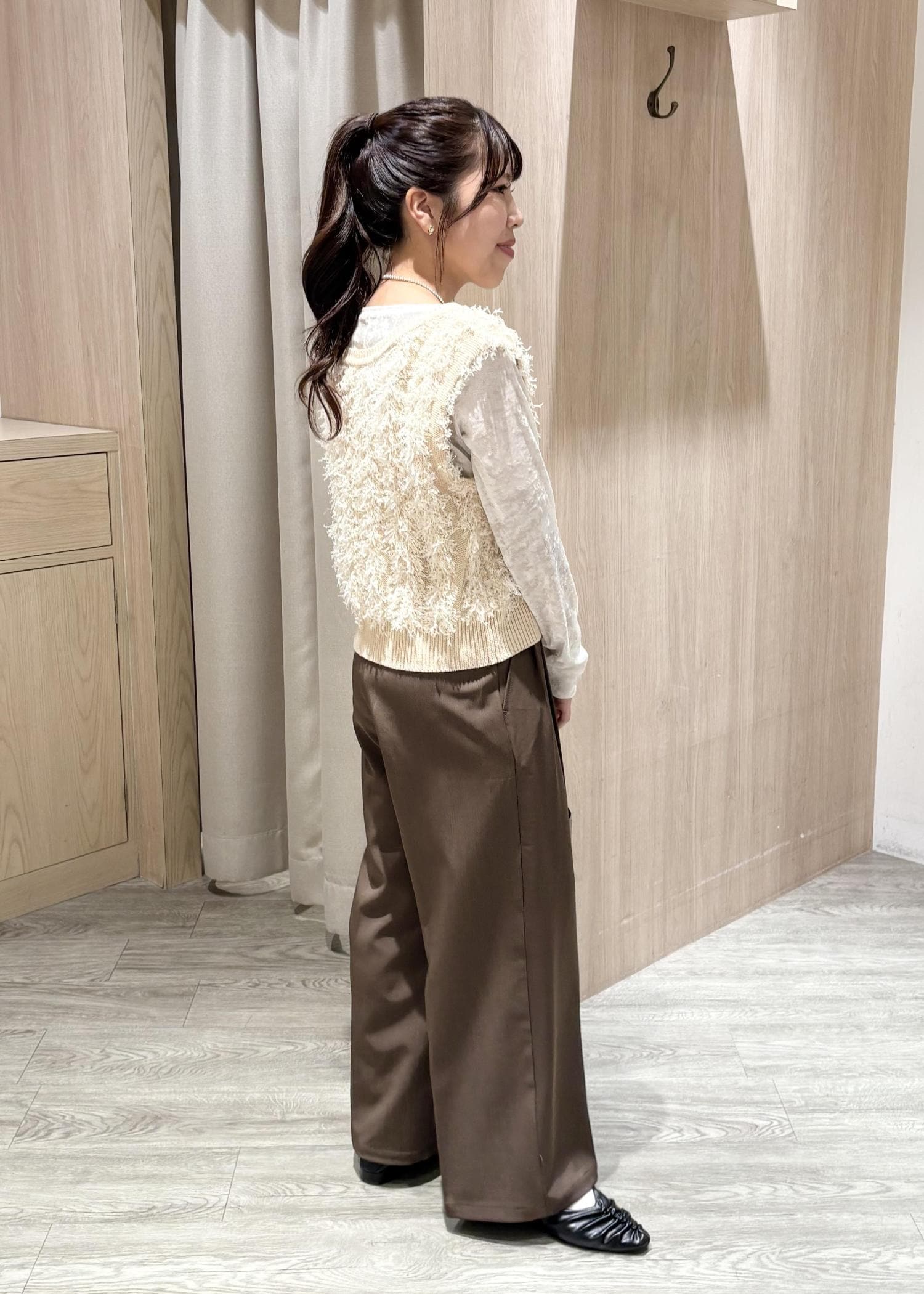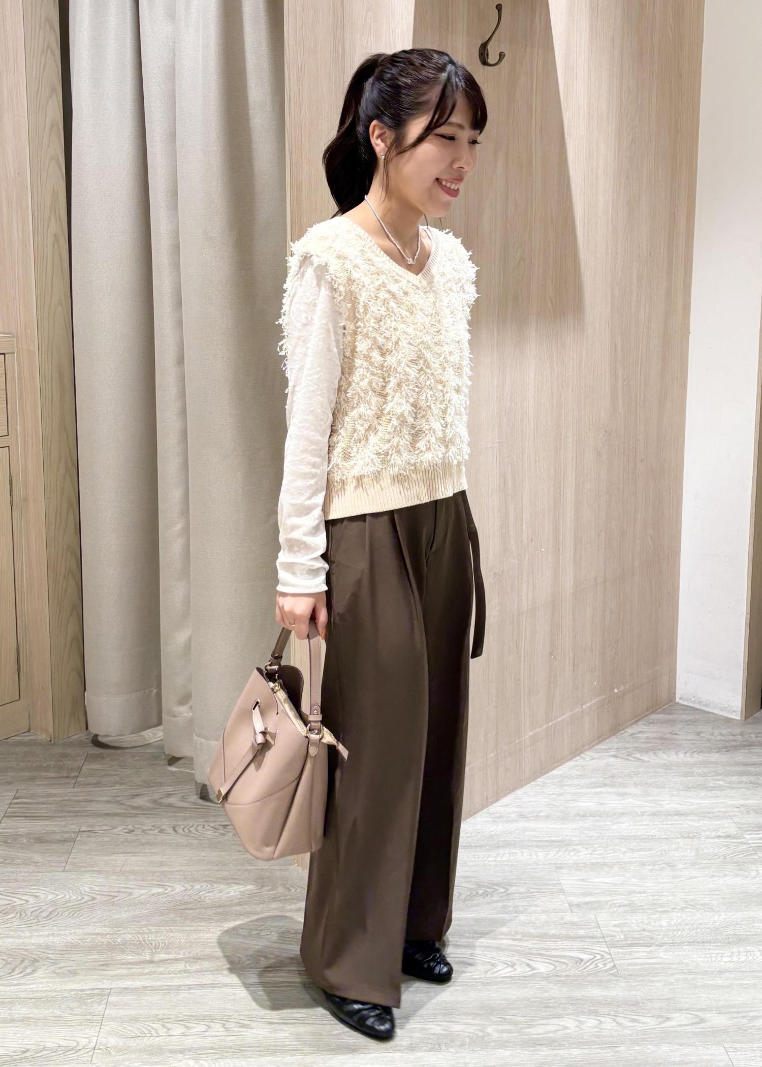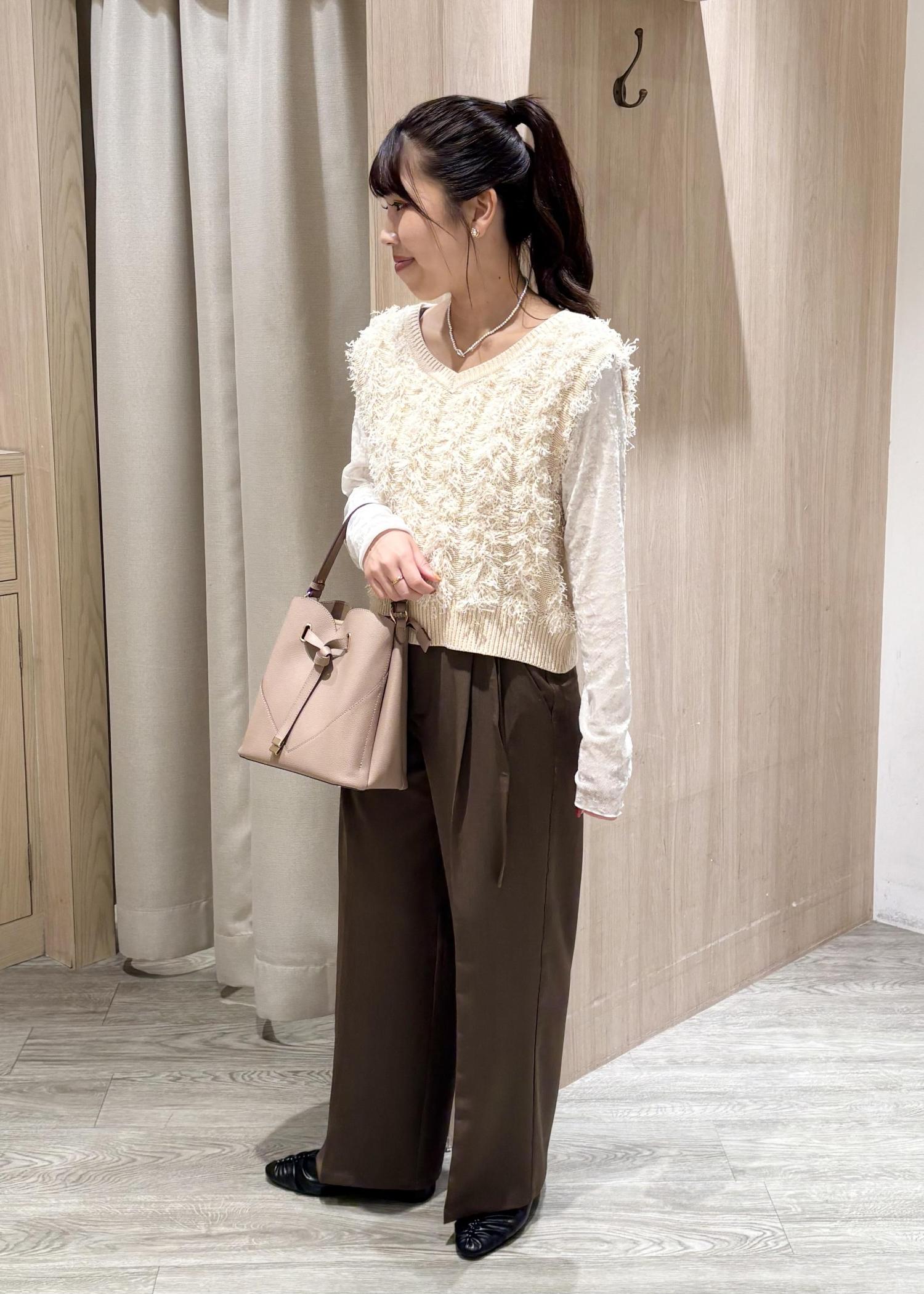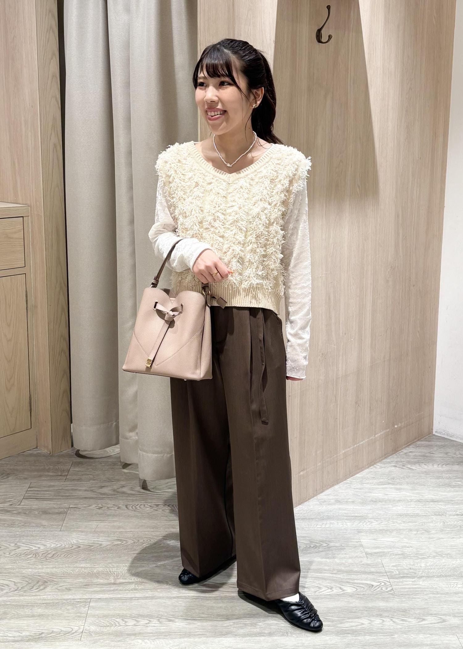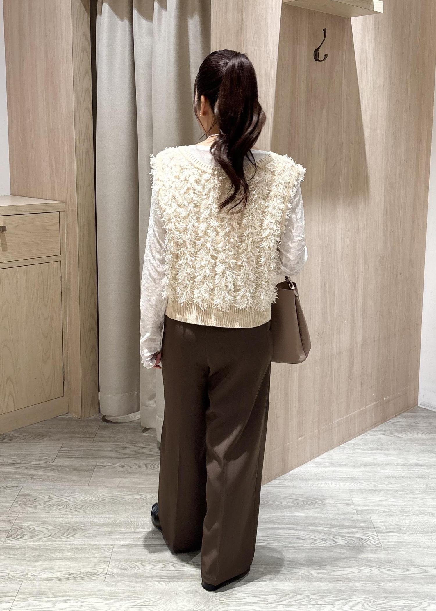 今年流行りのフリンジニットはワイドパンツとの相性抜群!!