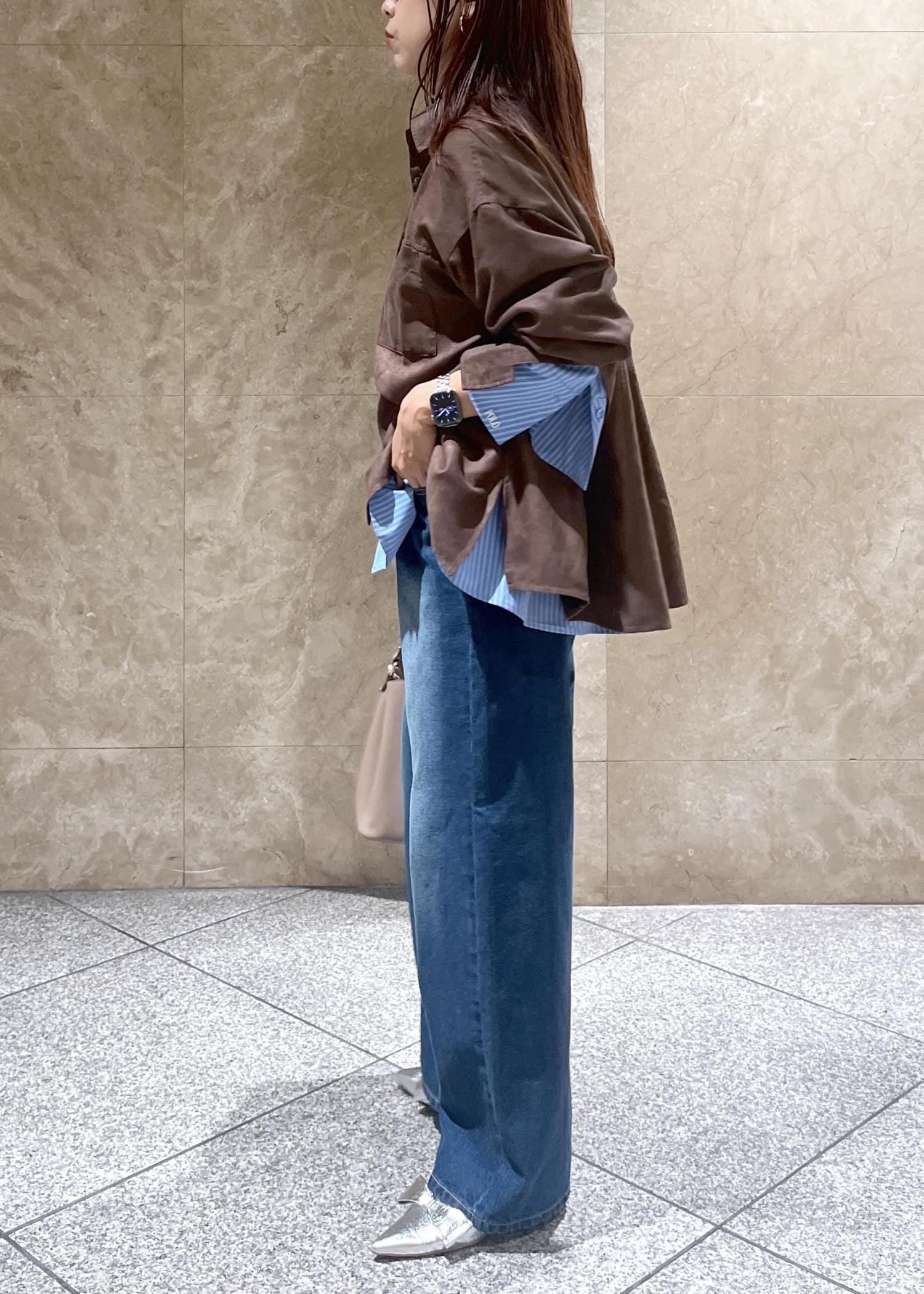 シャンとしたシャツのほどよいハリはありながら、思ったよりも柔らかい素材感なので、すっきりめの羽織を合わせたり、上からスウェット、ニットなど重ねてもゴワつかずに着用できそう!