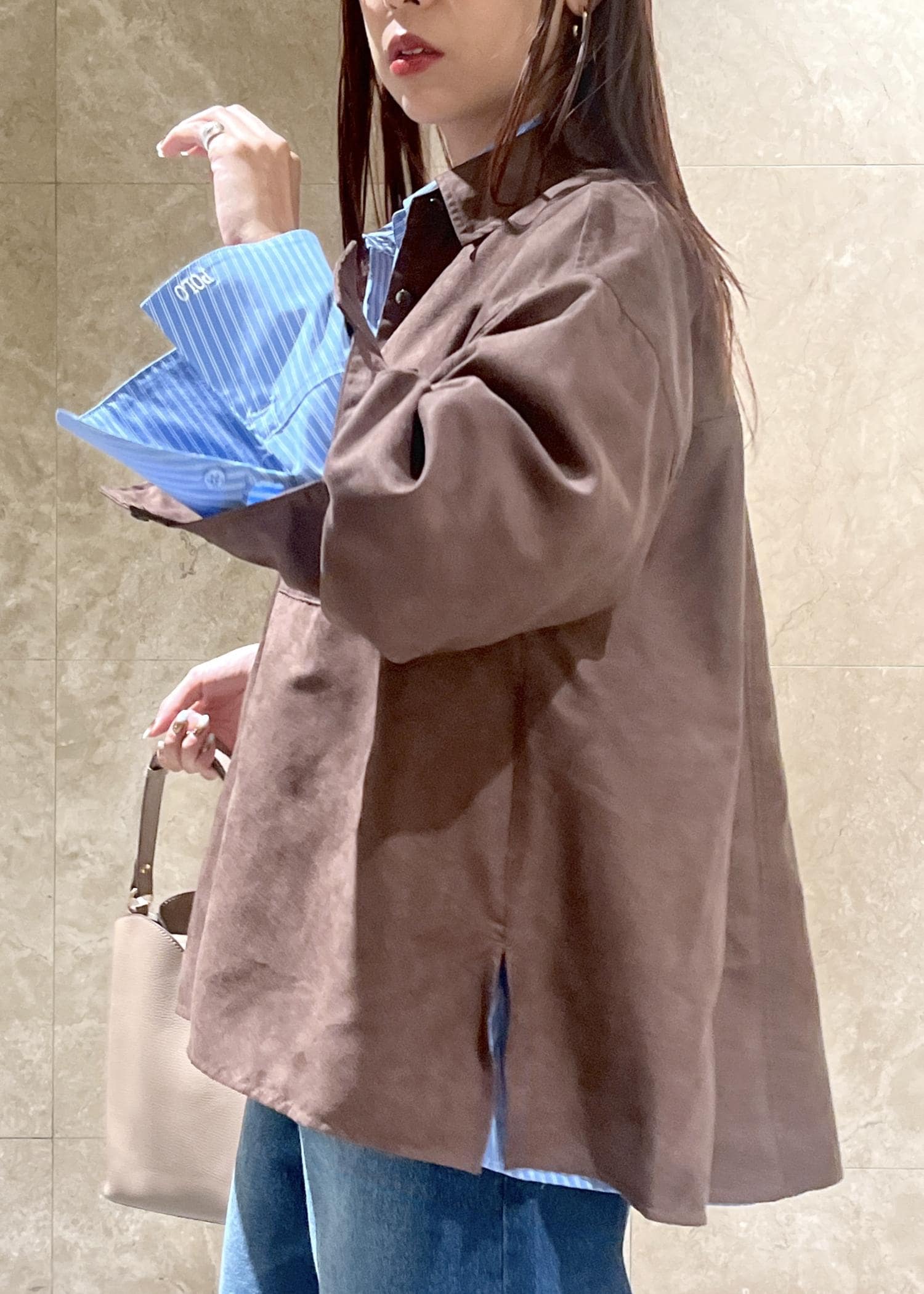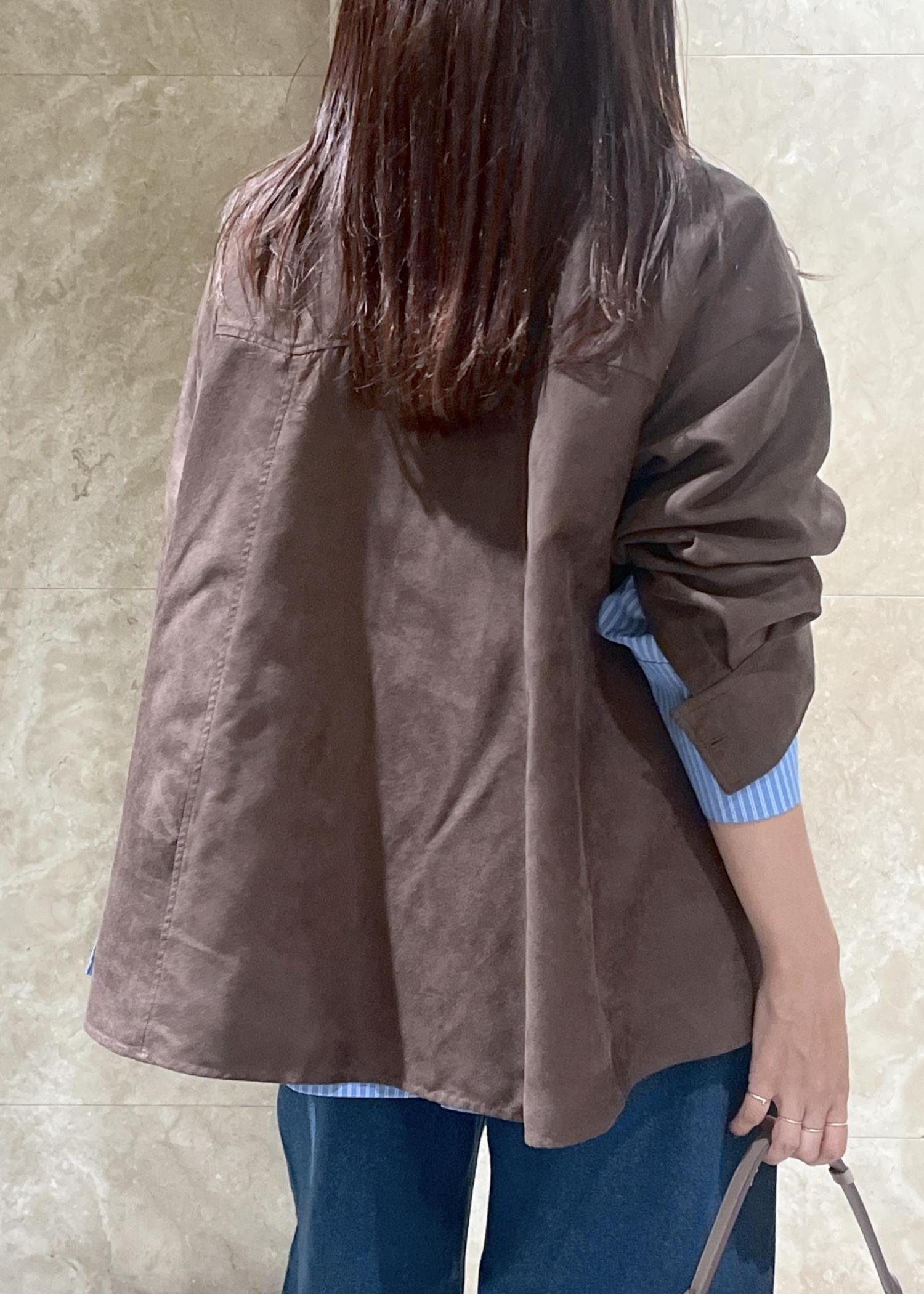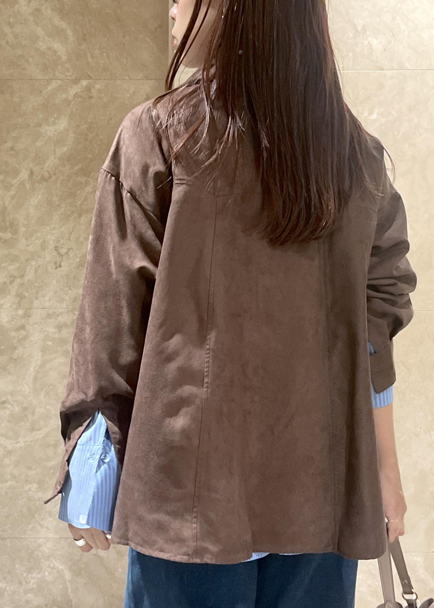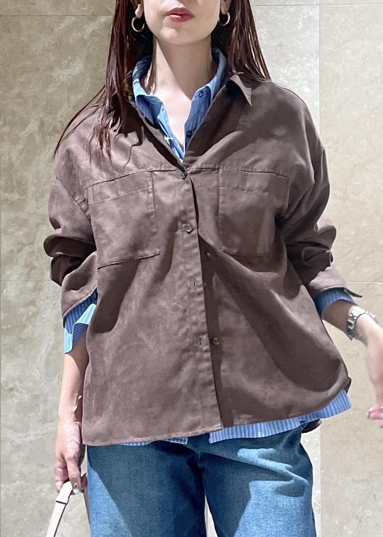 VISスエードライクロングスリーブシャツダークブラウン系 / F¥4,843レビュー身長158cm、ゆったりとしたオーバーサイズで着丈はおしりがすっぽりと隠れるほど。
