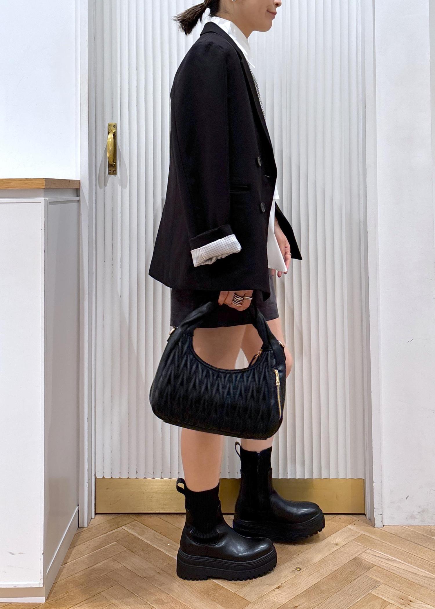 ブーツがあれば、ミニでも肌の露出が抑えられるので、ドレスコードが厳しくないオフィスなら浮かずに上品な印象♡