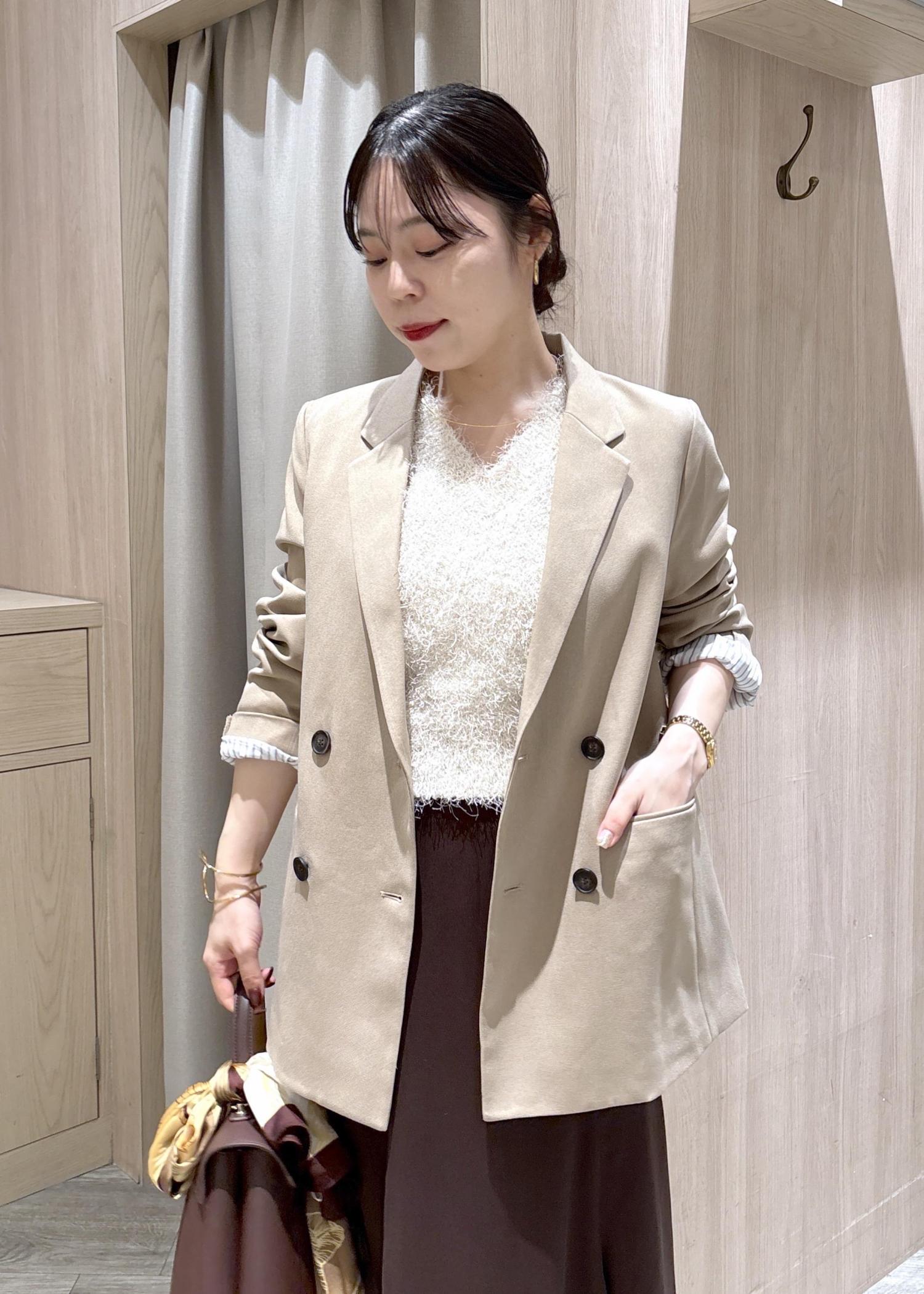 VIS【美easy】ウーリッシュダブルブレストテーラードジャケット【セットアップ対応/洗える】ベージュ / M¥8,899レビュー普段より1サイズ上のMサイズを着用しています。ヒップがぴったり隠れる着丈で、袖にゆとりがあり厚みのあるインナーとのコーディネートも可能です。(Sサイズは軽めのインナーを合わせてぴったりで、ヒップより2〜3センチ程上の着丈です。)
