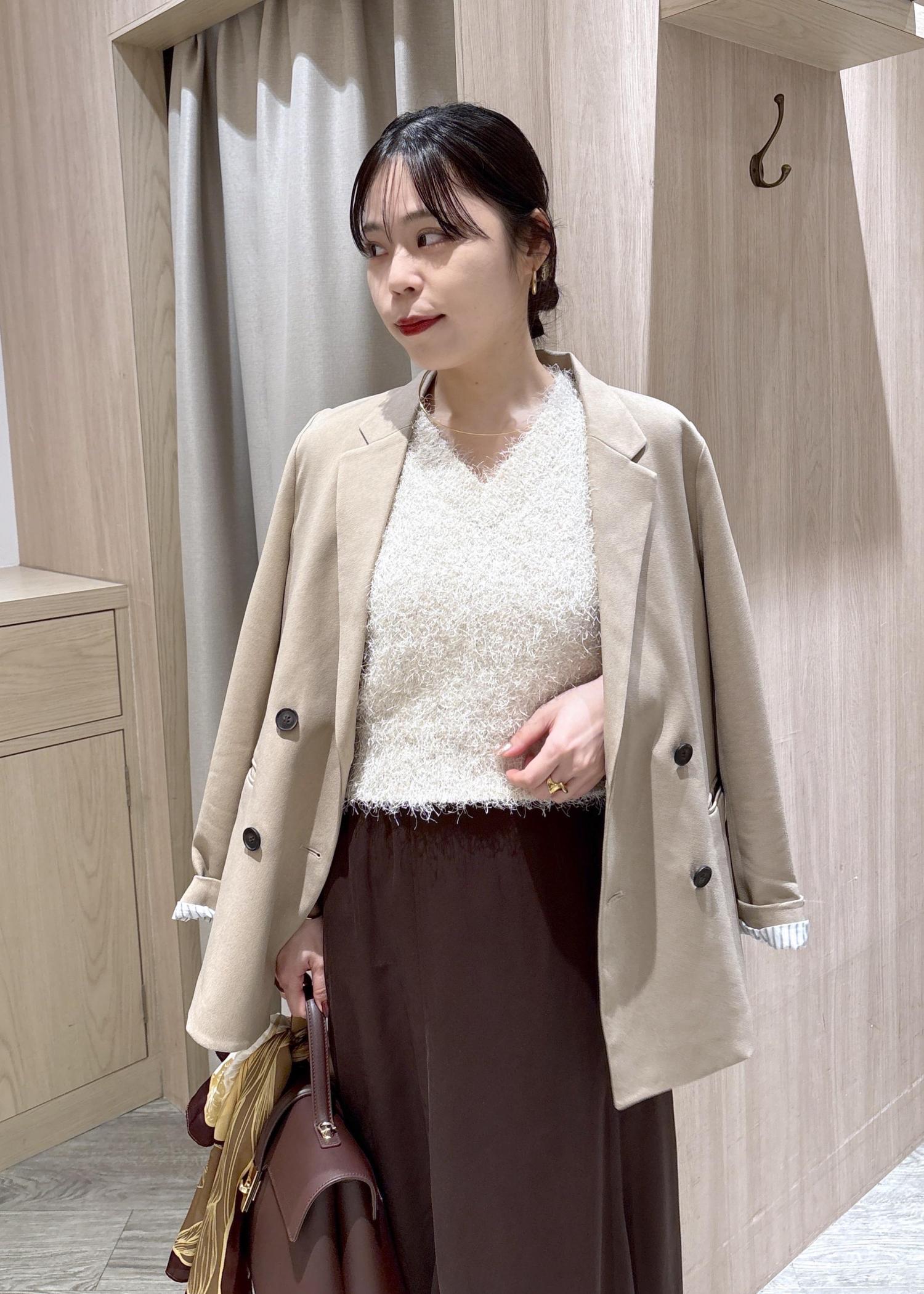 毛足が長めなニットですがちくちく感もなく、ジャケット等のインナーにも◎