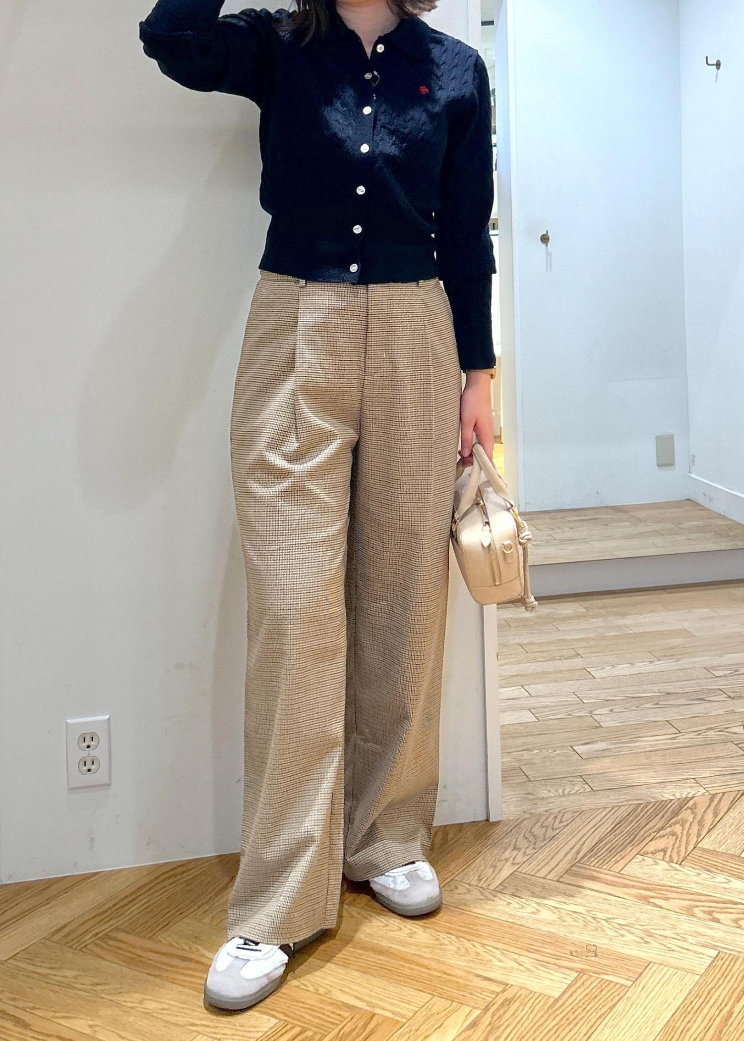 カーディガン×千鳥柄パンツの秋先取りコーデ♡