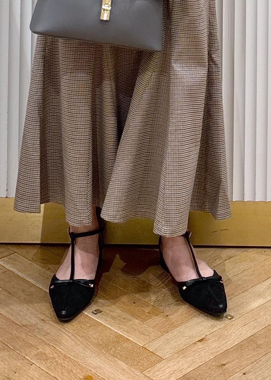 足の甲にかかるストラップが足をより細く綺麗に見せてくれるのが◎ -