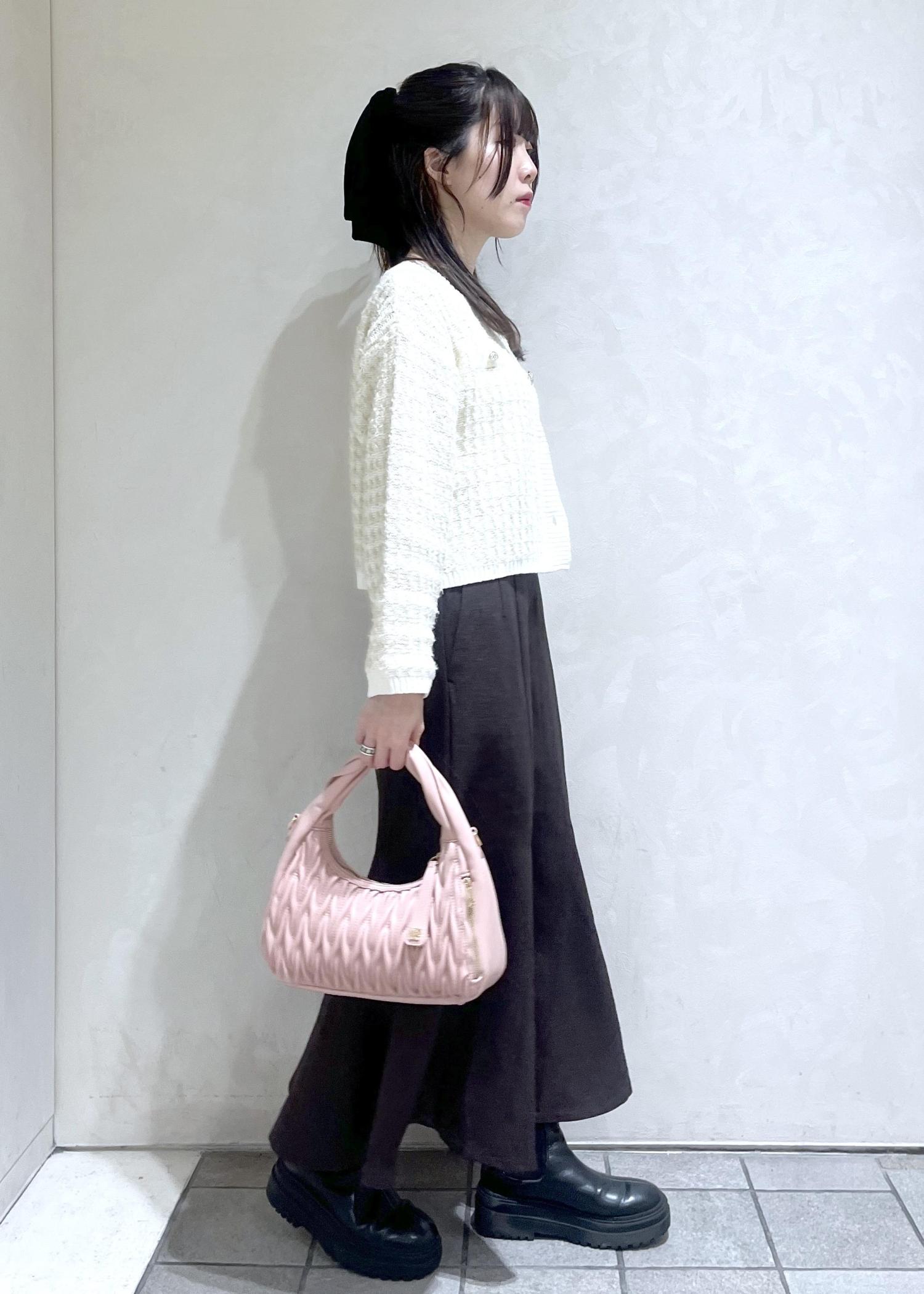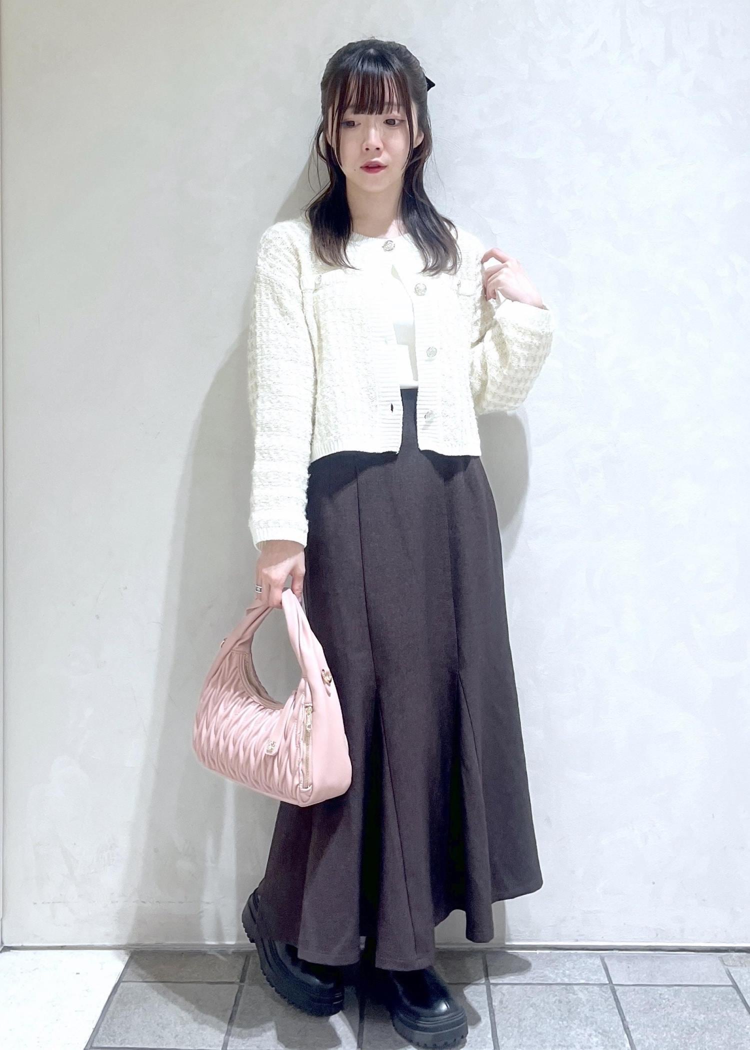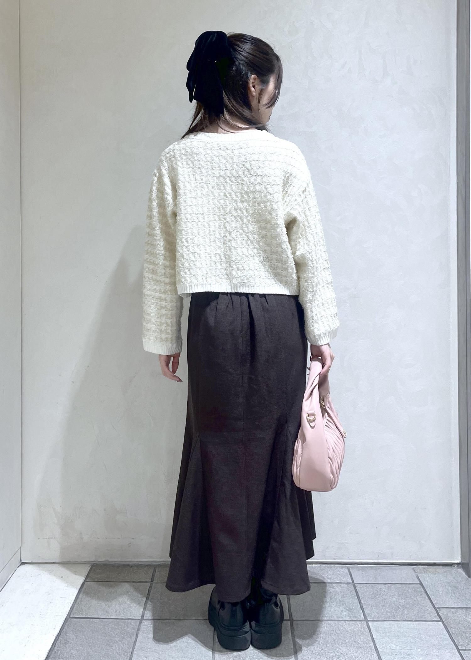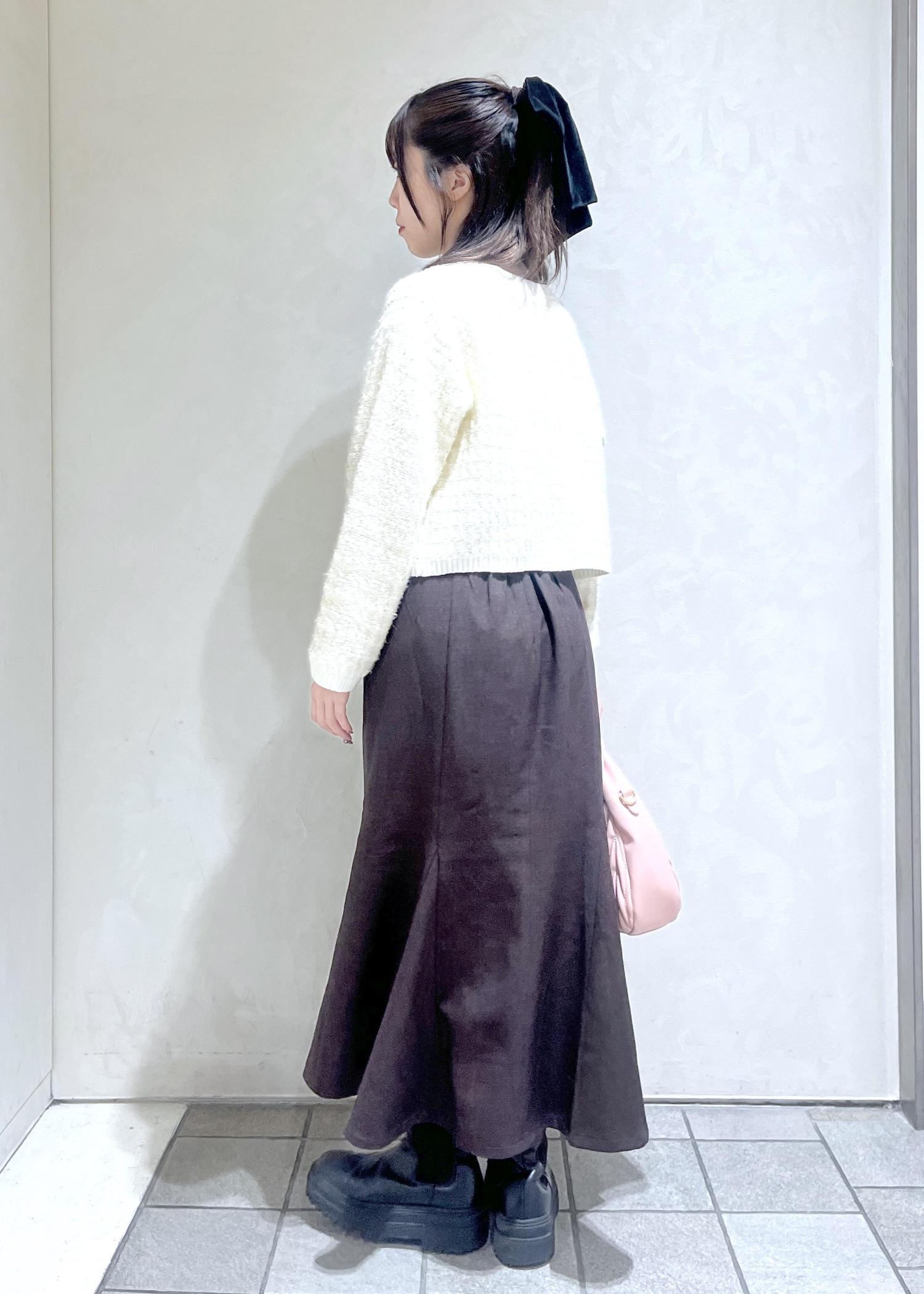 秋冬らしいツイードのカーディガンをトレンドのブラウンのスカートと合わせてフェミニンコーデを組んでみました!