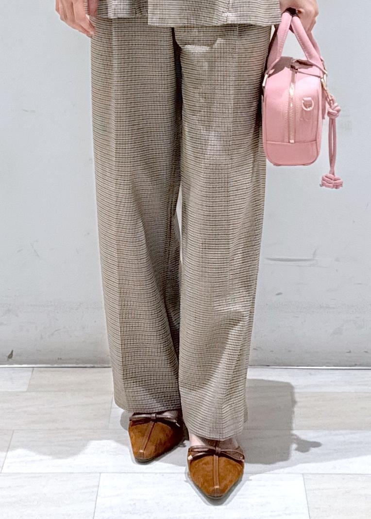 美ウーリッシュのセットアップをメインに、小物で女性らしさも取り入れたコーディネートです!