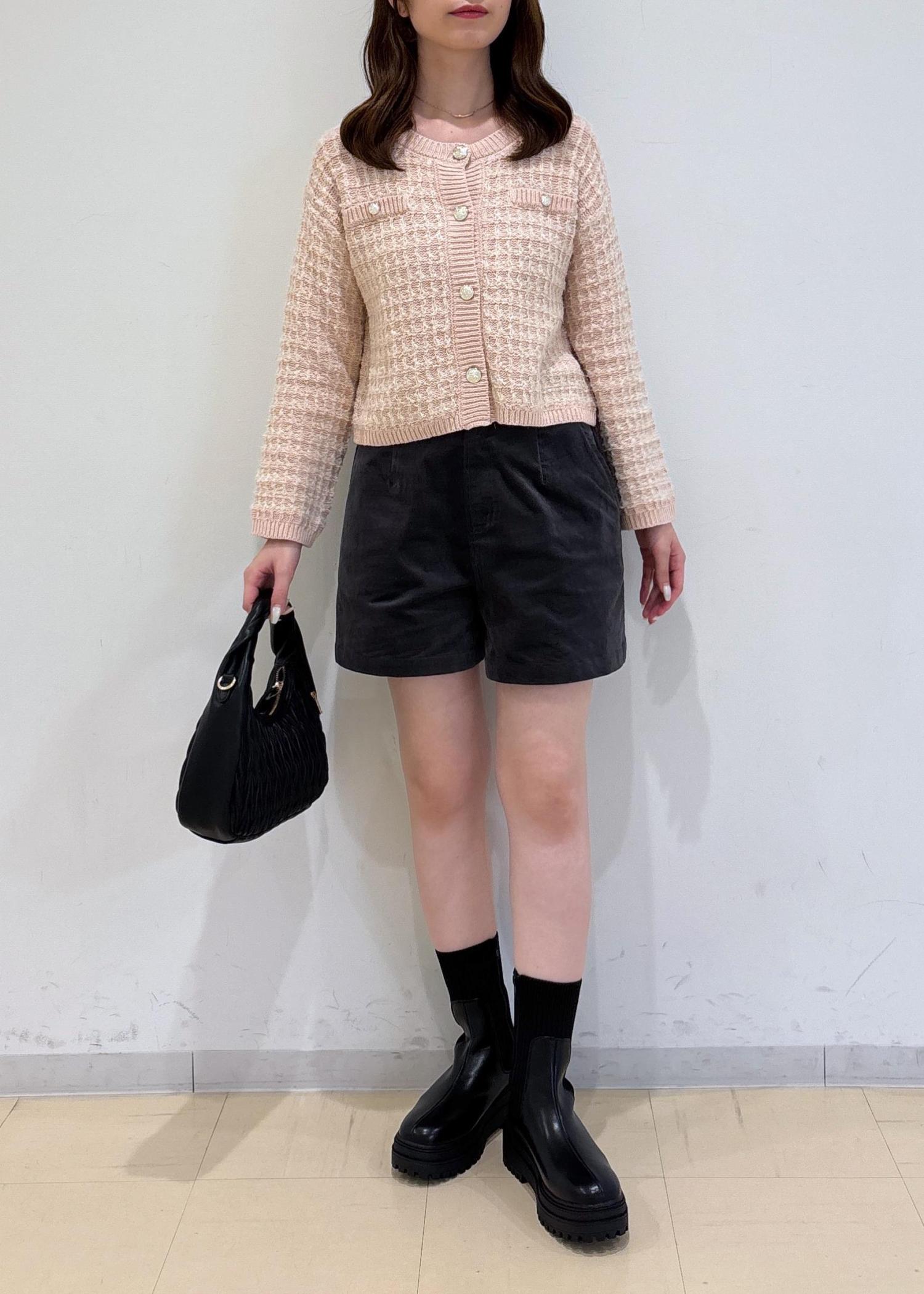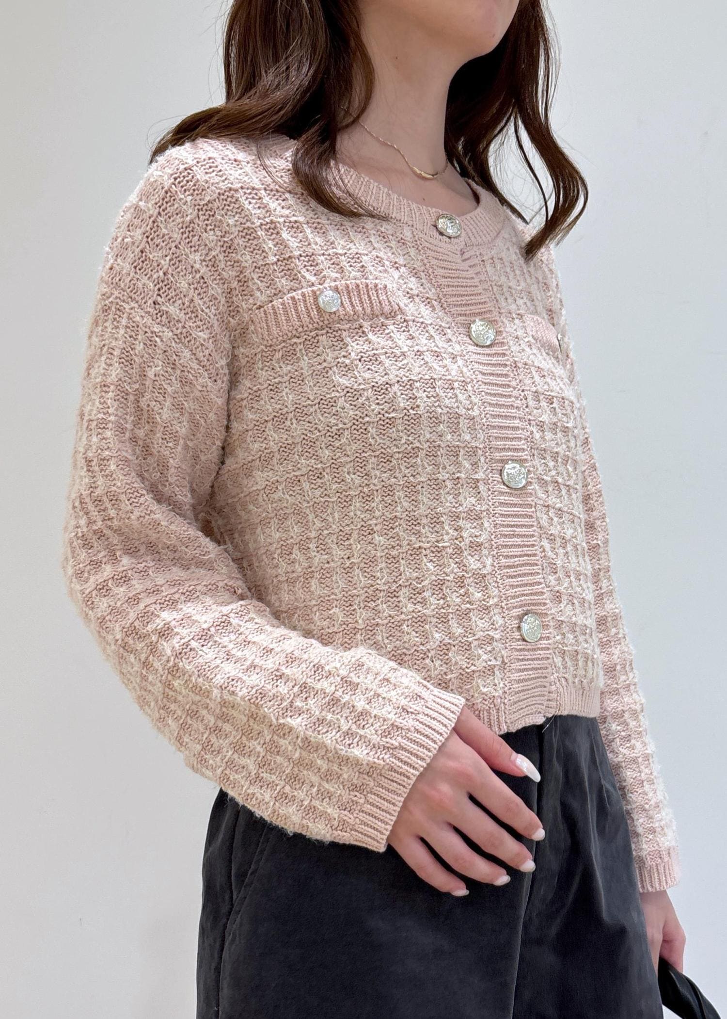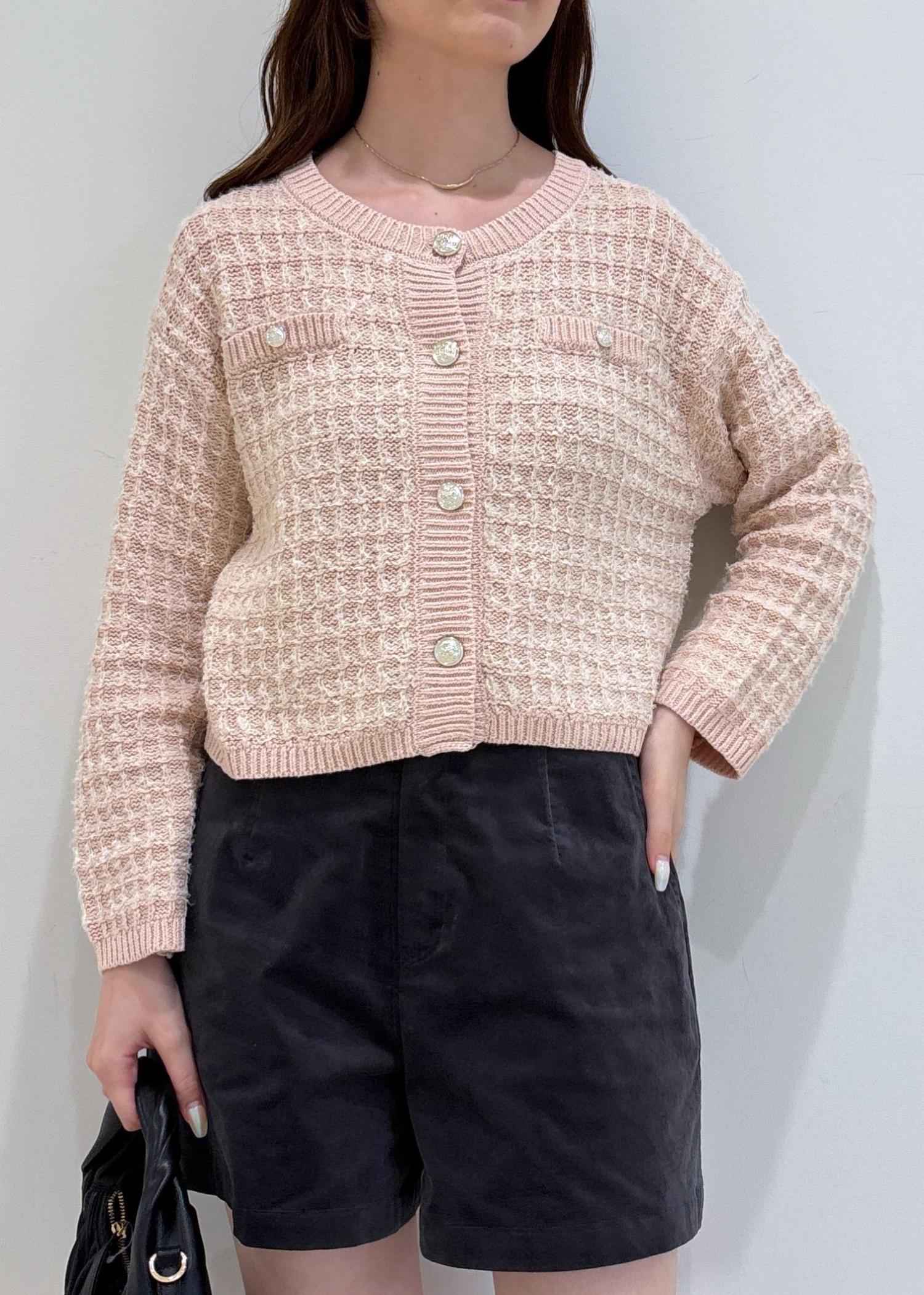 VISファンシーツイードメタルボタンカーディガンピンク / F¥6,589レビューふんわりと柔らかい素材感で着心地が良いです。