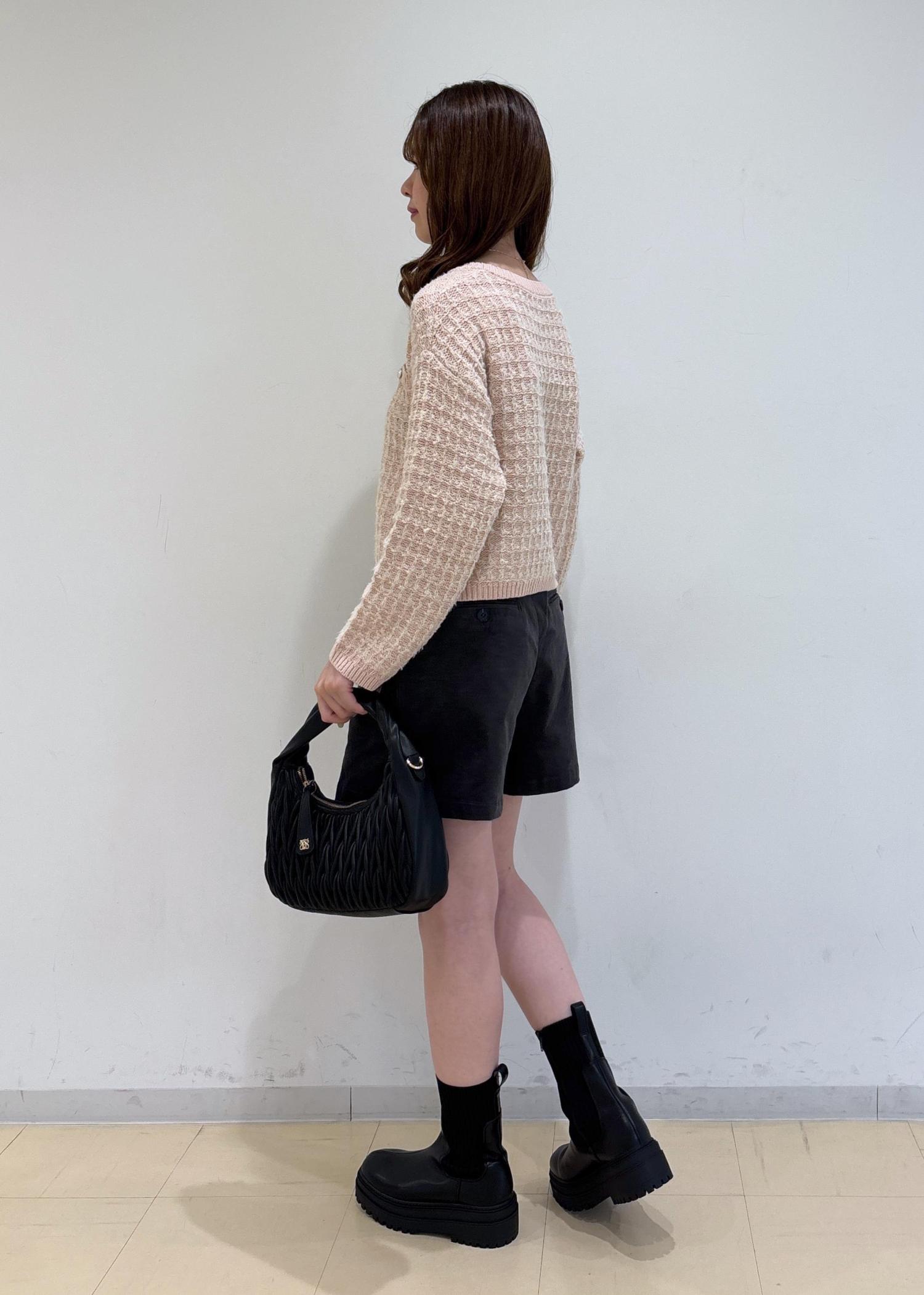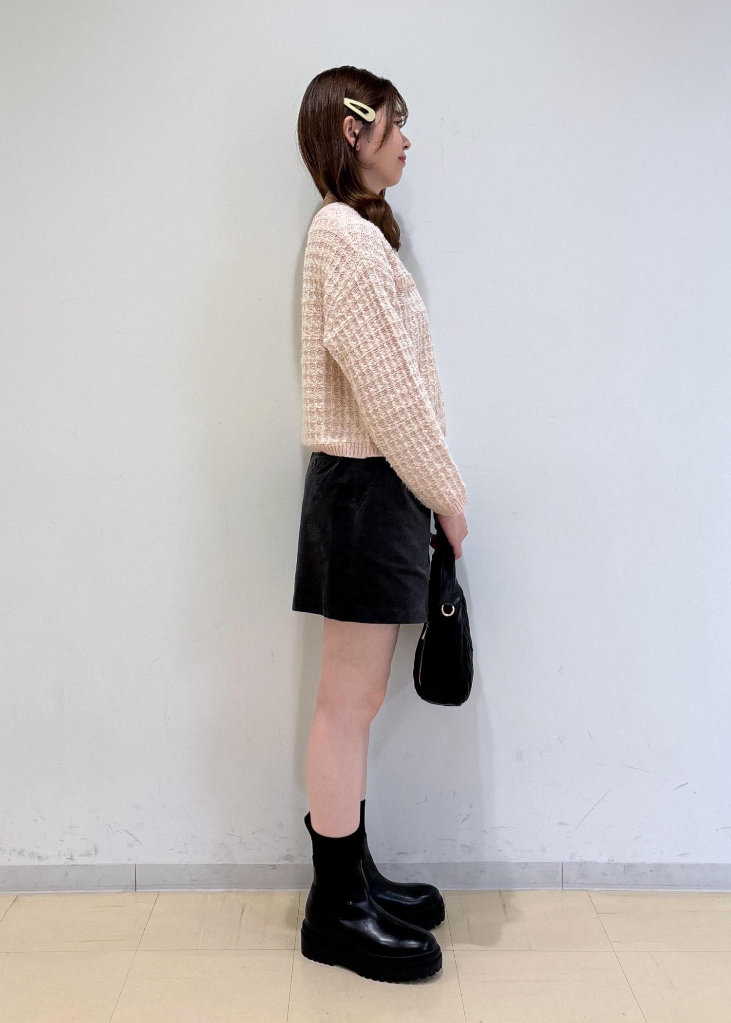 甘くなりすぎないようにトップス以外はグレーやブラックでまとめました。