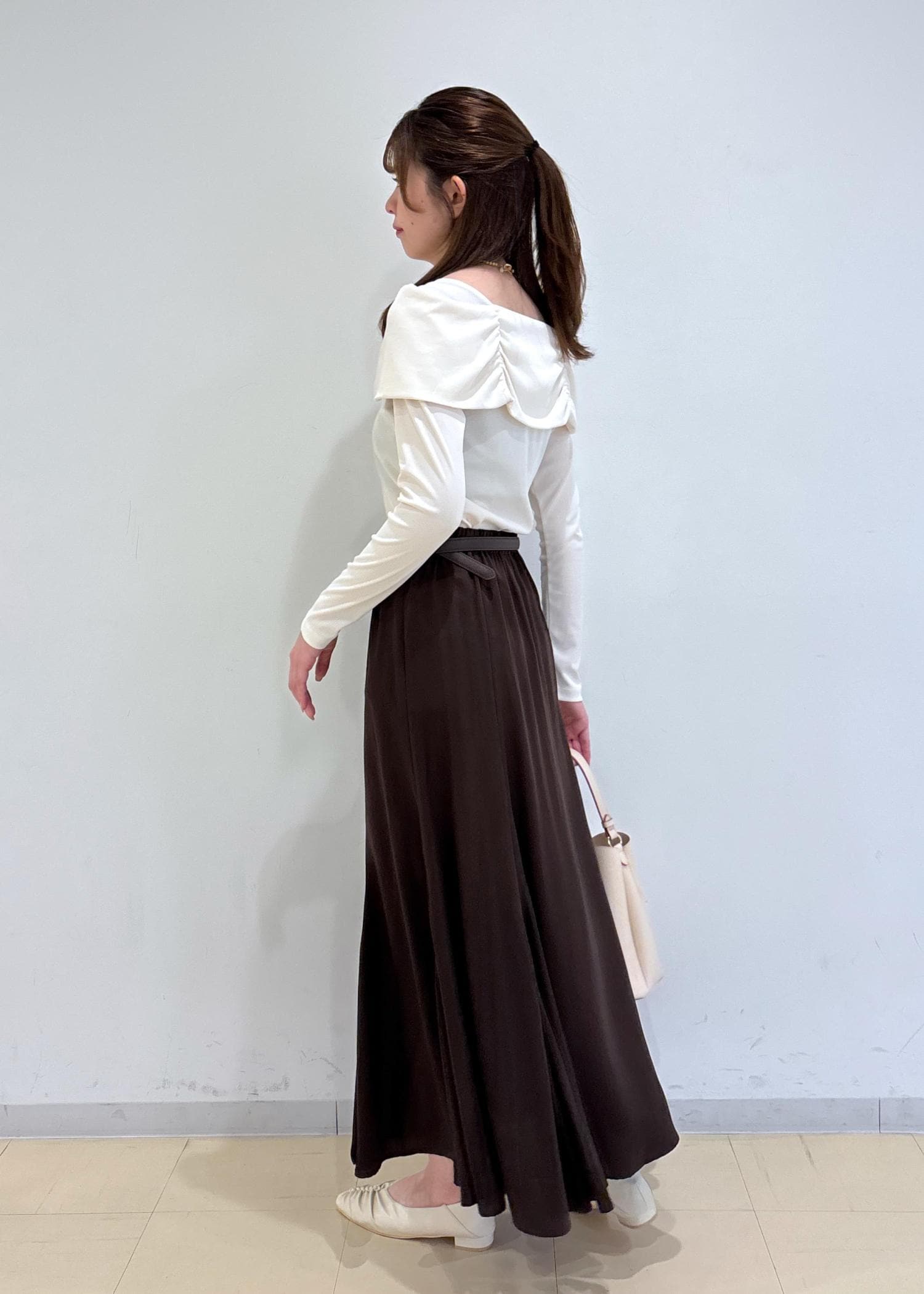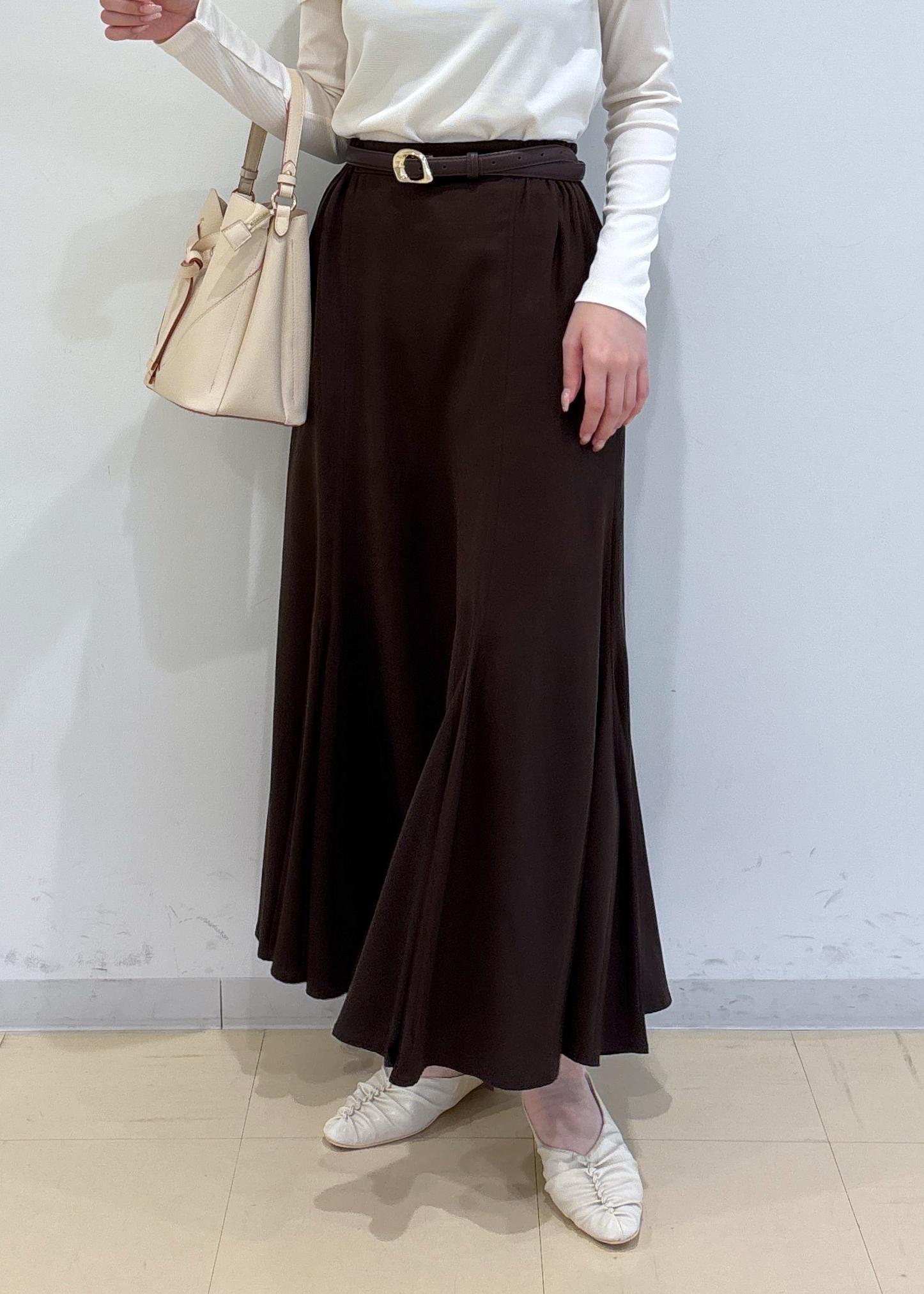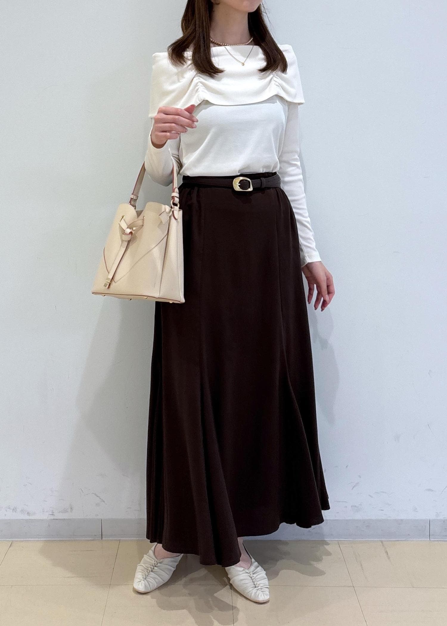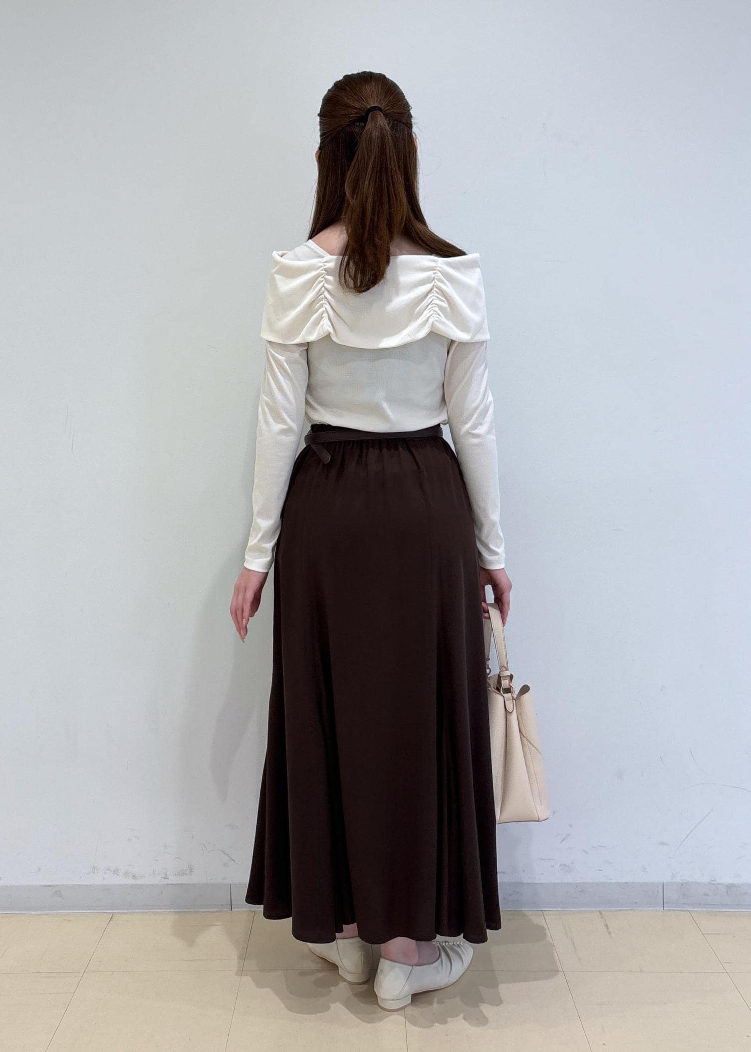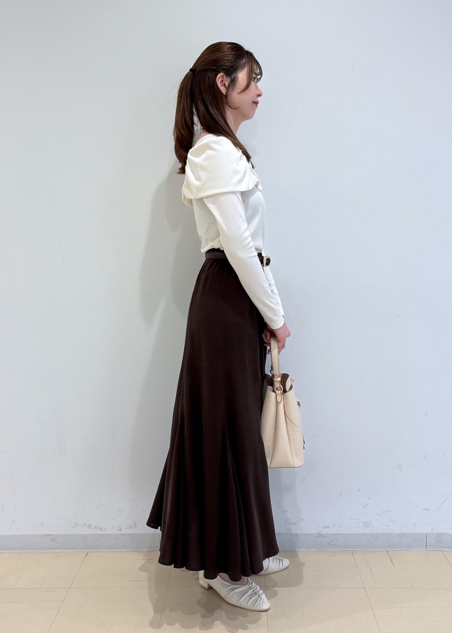 スカートは程よくツヤ感のあるサテン素材が軽い履き心地で大人っぽく印象にしてくれます。