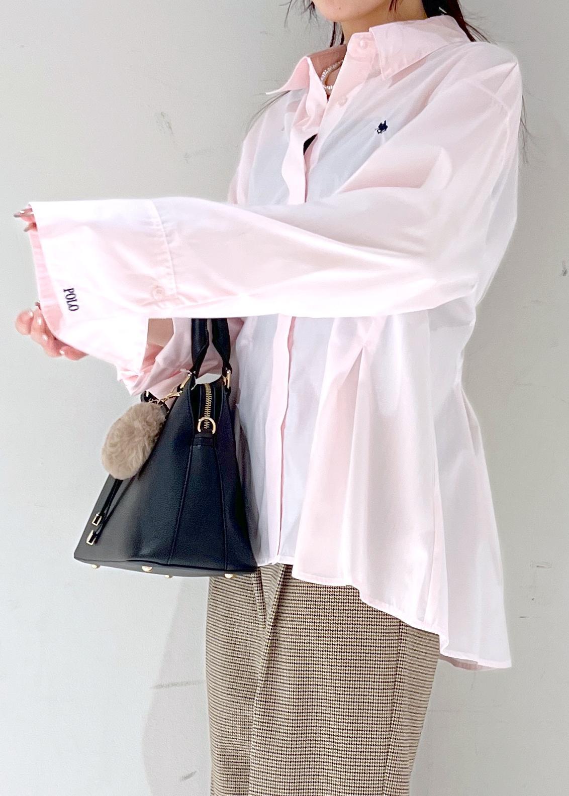 VIS【POLOBCS】VIS別注ウエストタックフレアシャツピンク / F¥6,930レビュー152cmでヒップがしっかり隠れるくらいですが、ウエストにタックが入っているので着膨れせず綺麗なシルエットで着れました◎