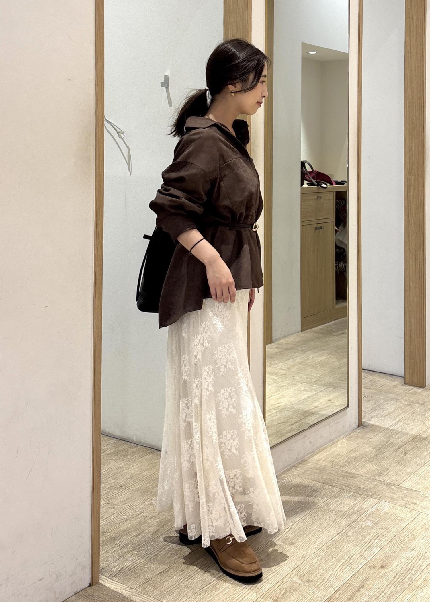 スエードのツヤ感が程よい&毛足が短めなので、低身長ウェーブも着られてる感なくナチュラルに着こなせました!