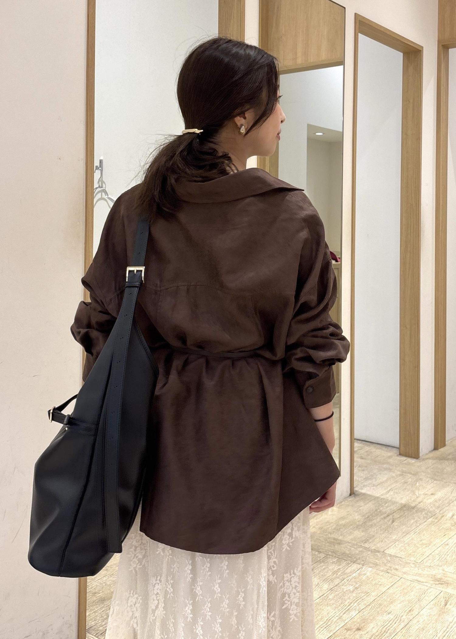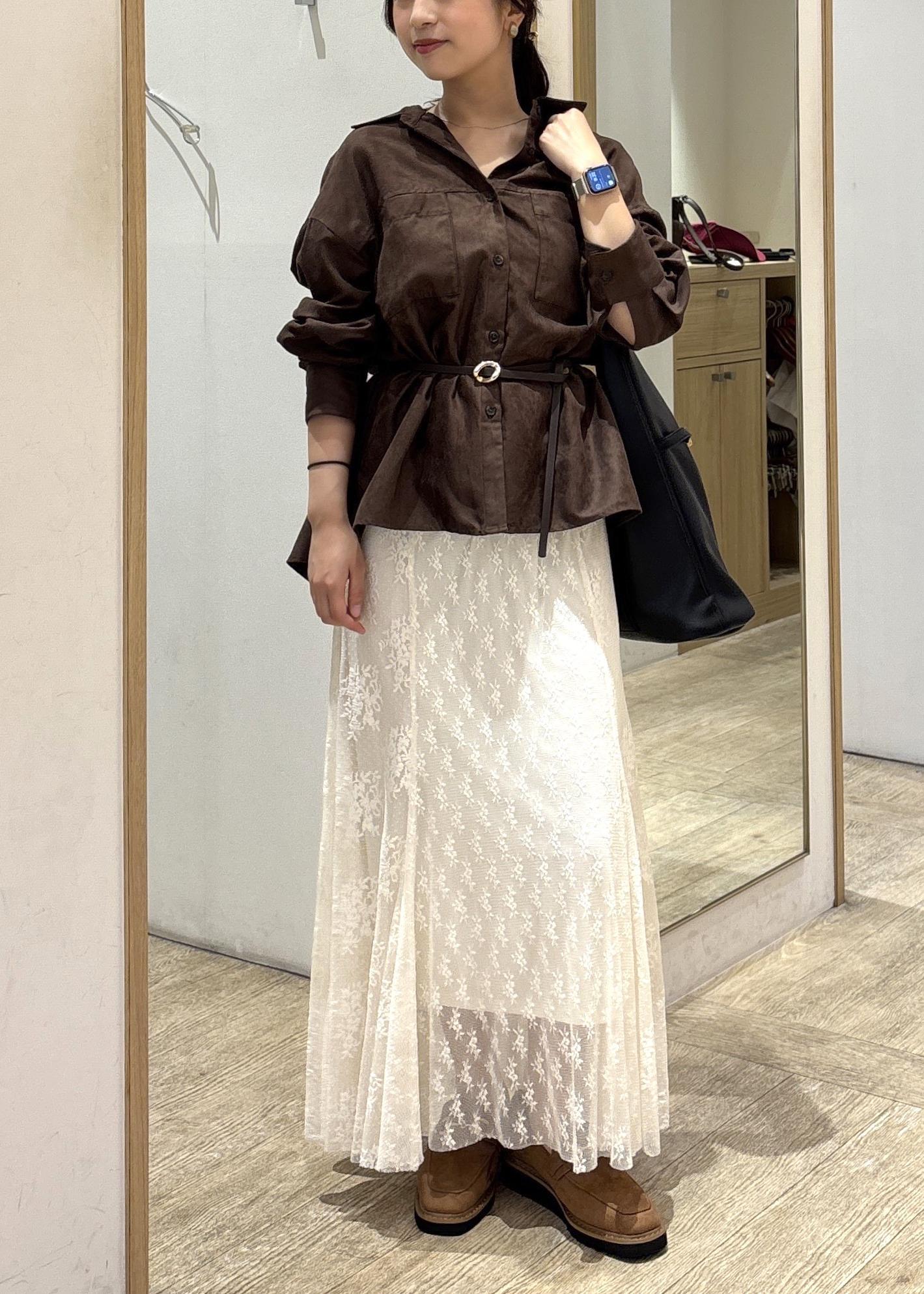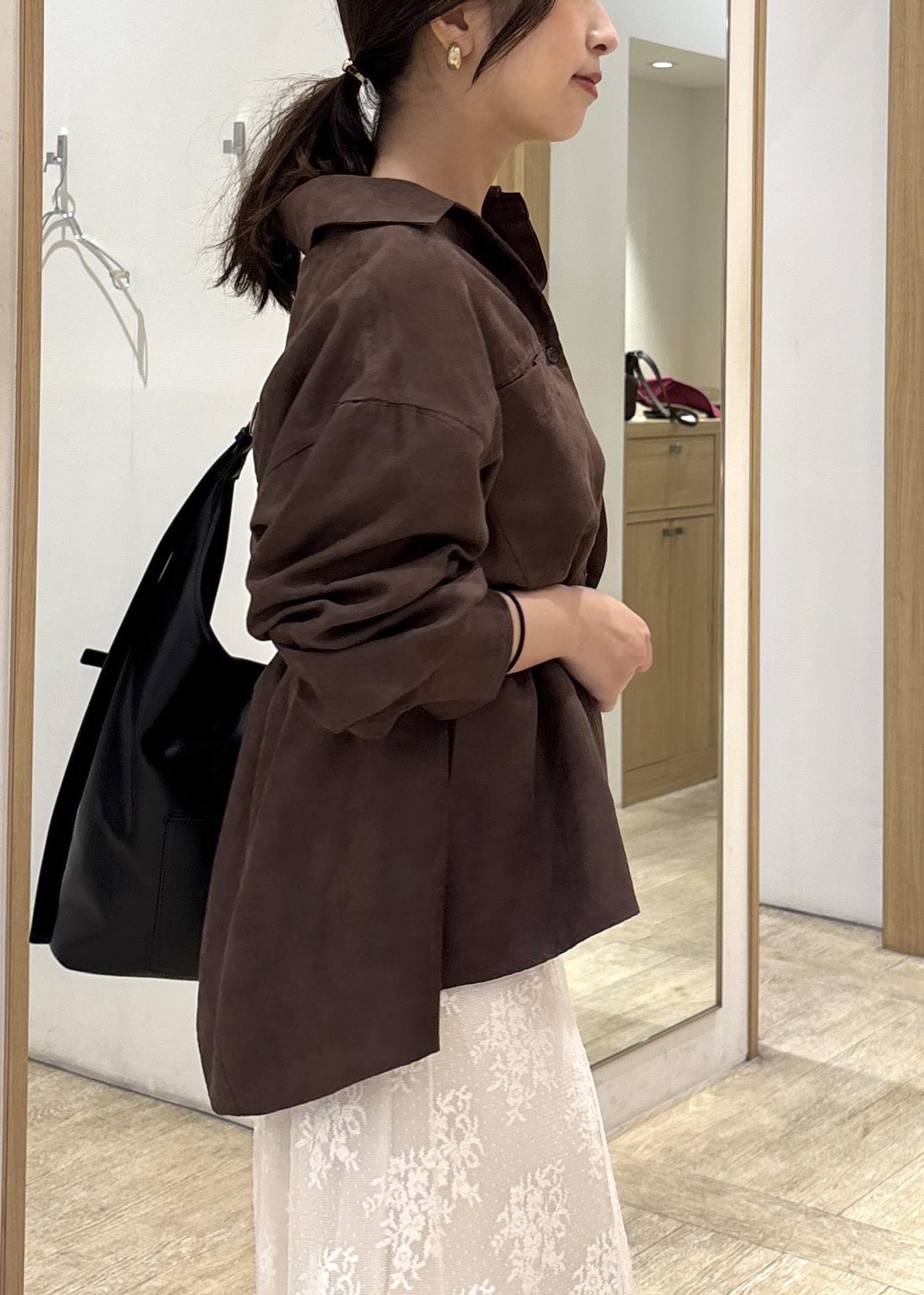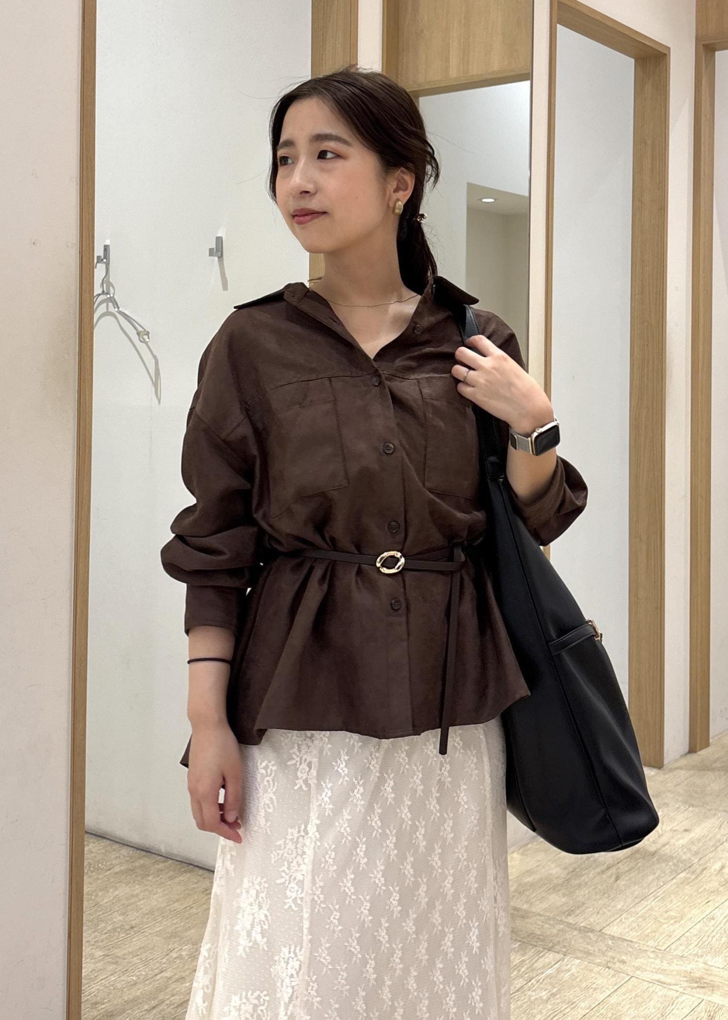 スエードシャツは柔らかい素材感で着膨れすることなく低身長も着やすい素材☺︎