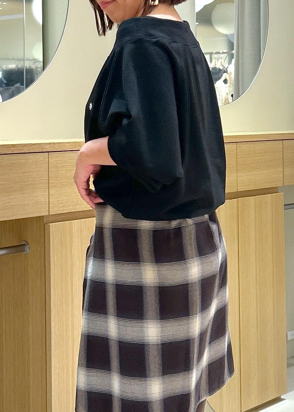 ボリューム感のあるデザインですが、丈感はコンパクトなのでスカート、パンツどちらも合わせやすいです。 -