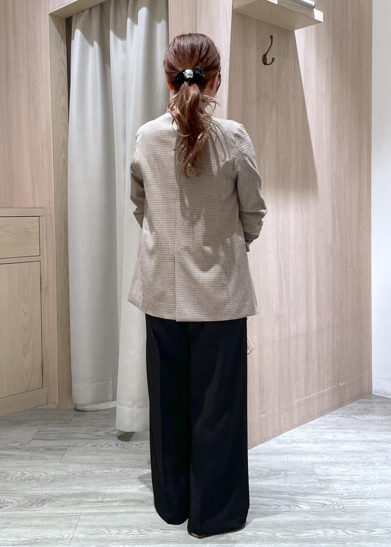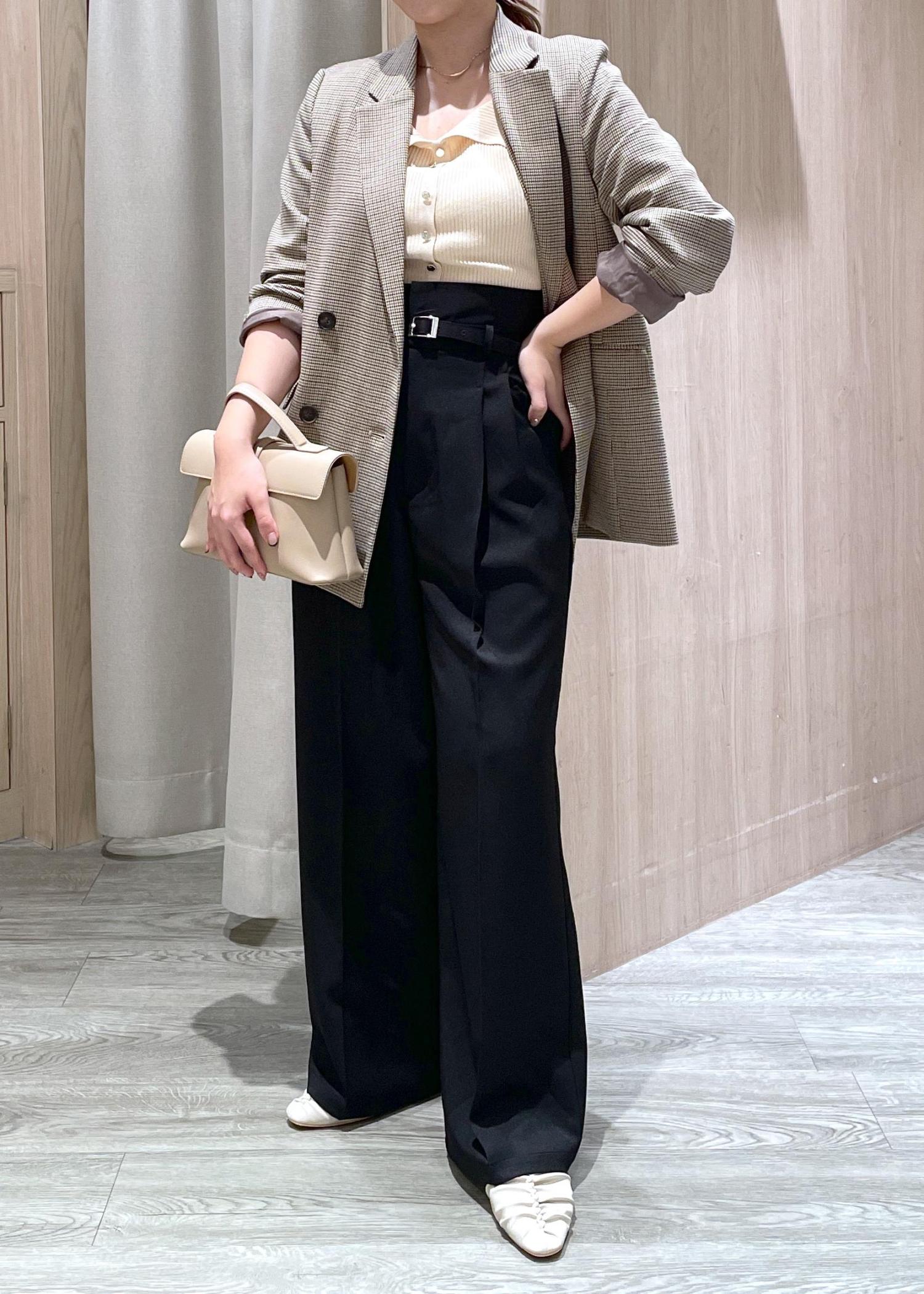 ベルトタックパンツは低身長の方もスタイルアップできるおすすめアイテムです◎ ジャケットとパンプスを合わせてキレイめコーデにしました♪