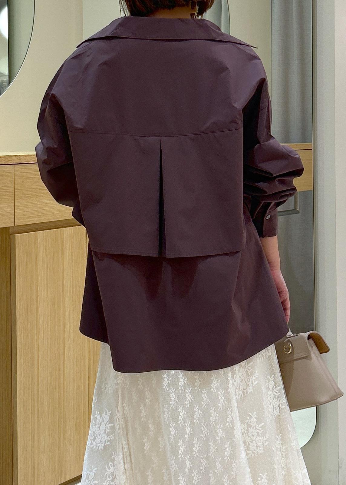 VIS裾ティアードオーバーシャツ/UVケア・イージーケアダークブラウン / F¥3,557レビュー程よいハリ感のあるオーバーサイズのシャツ。