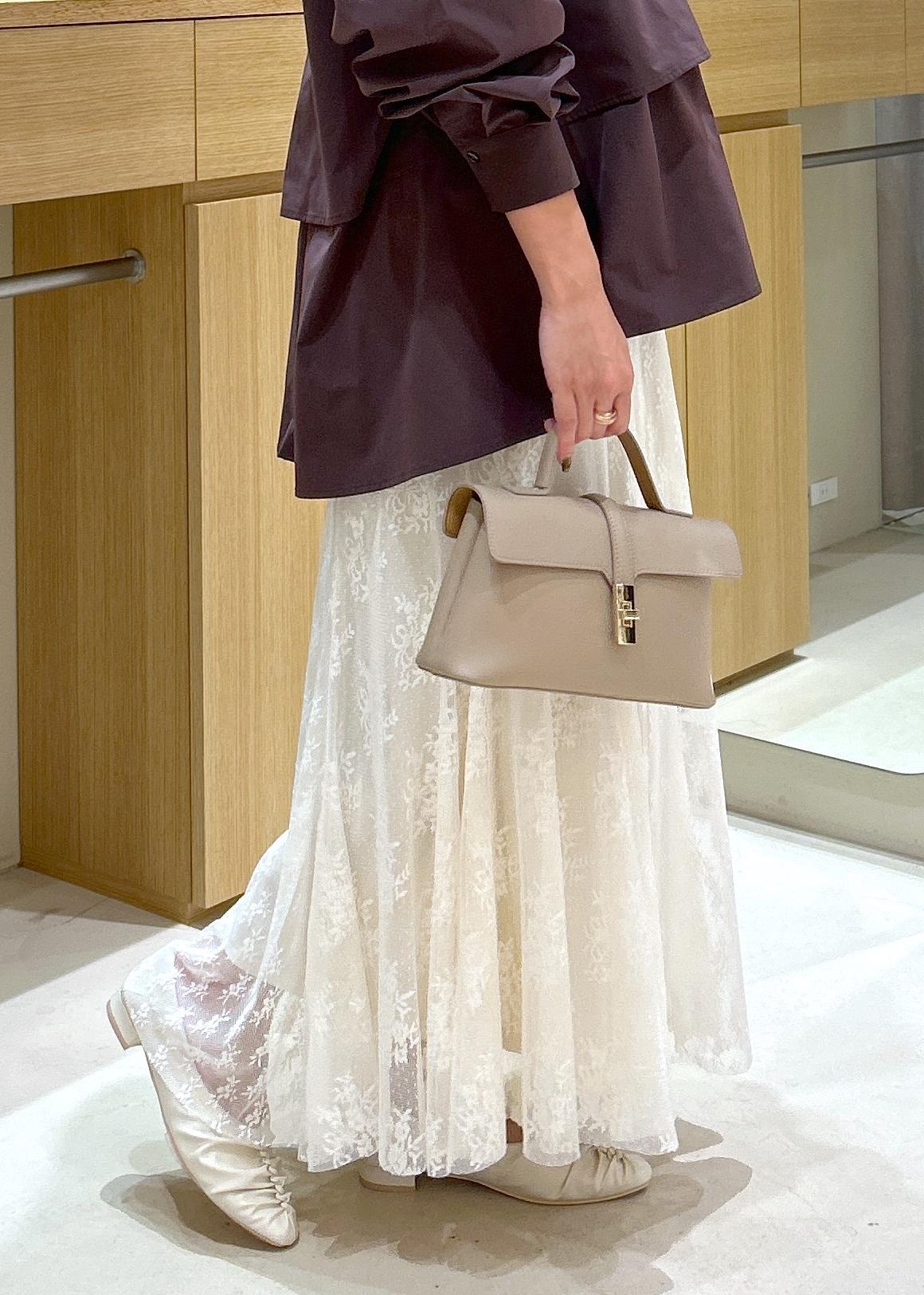レーススカートは中のペチコートが取り外し可能なのでデニムなどとのレイヤードスタイルもおすすめ◎ -