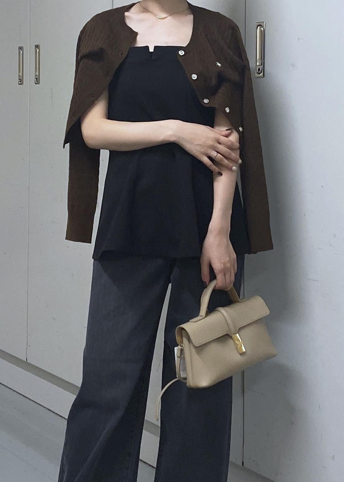胸元のスリットは羽織ものと合わせてもポイントになります! -