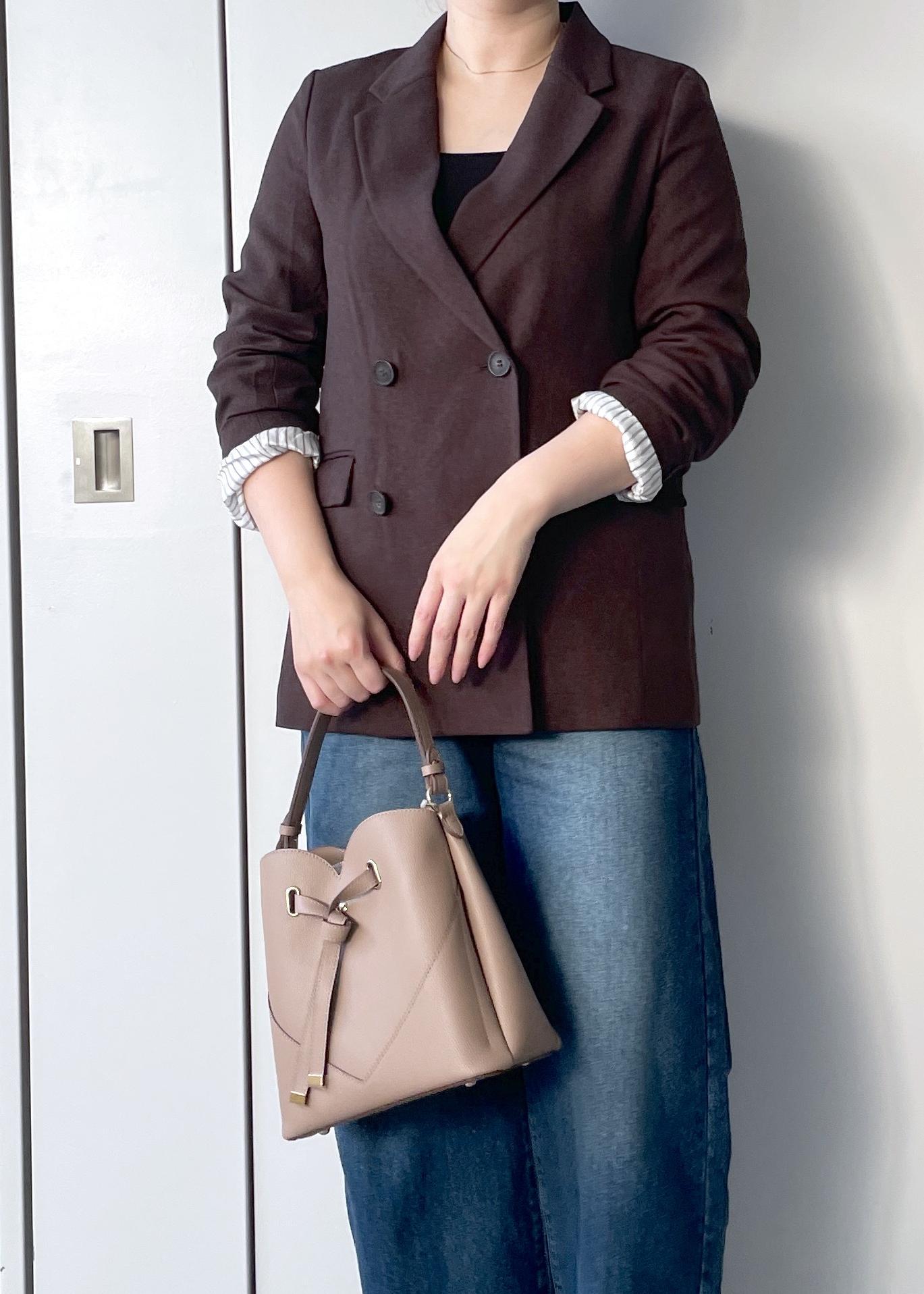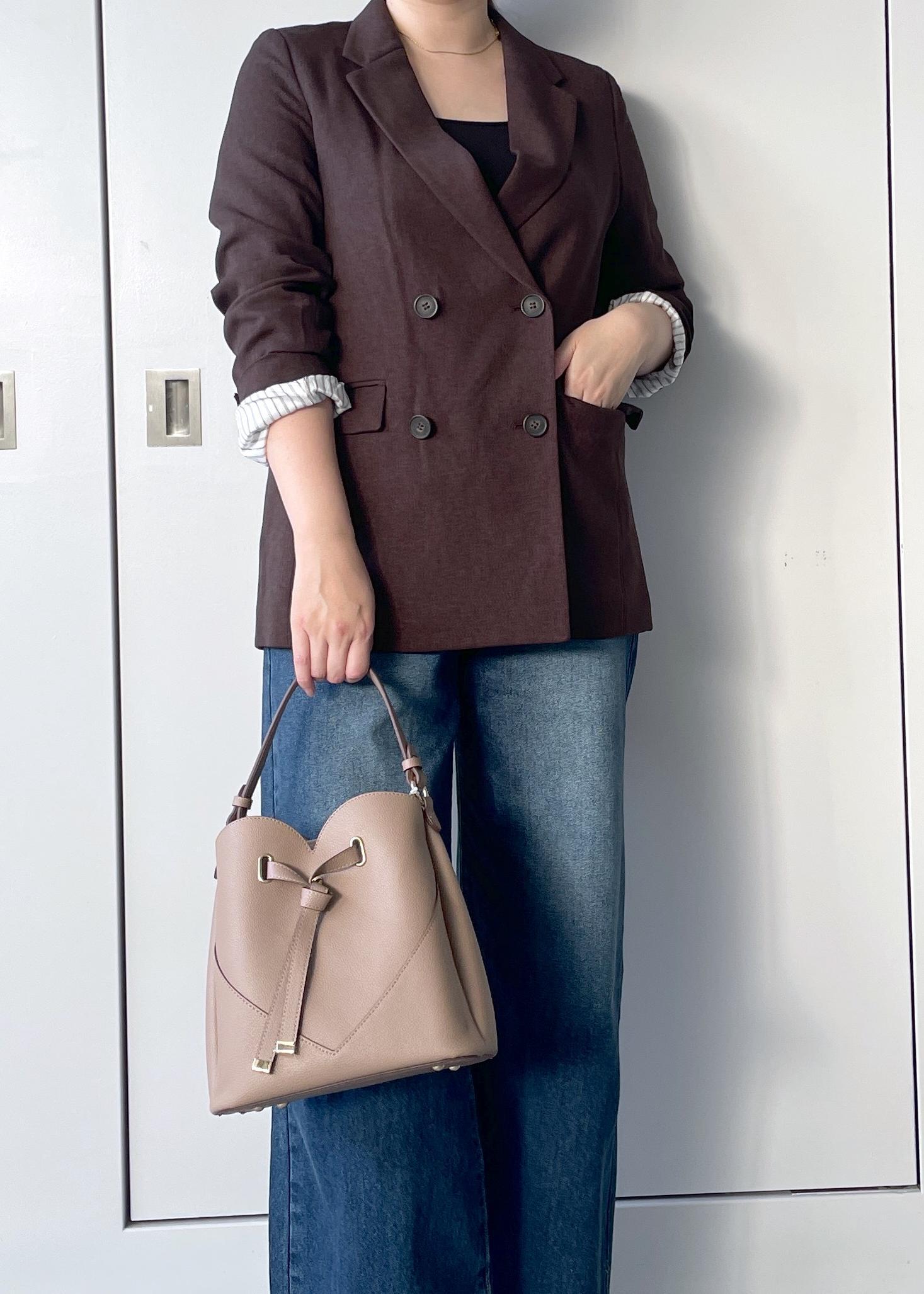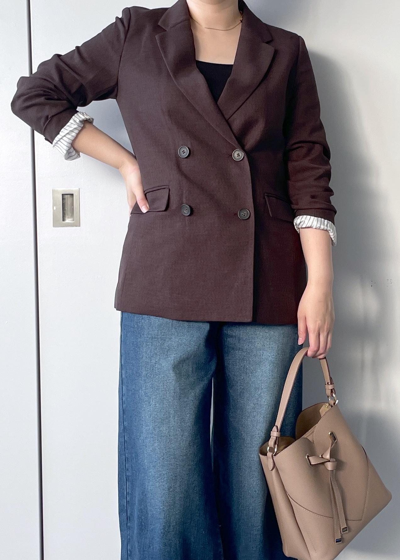 VIS【美easy】ウーリッシュダブルブレストテーラードジャケット【セットアップ対応/洗える】ダークブラウン / M¥8,899レビュー163cm Mサイズ着用でヒップがほとんど隠れる丈感です。