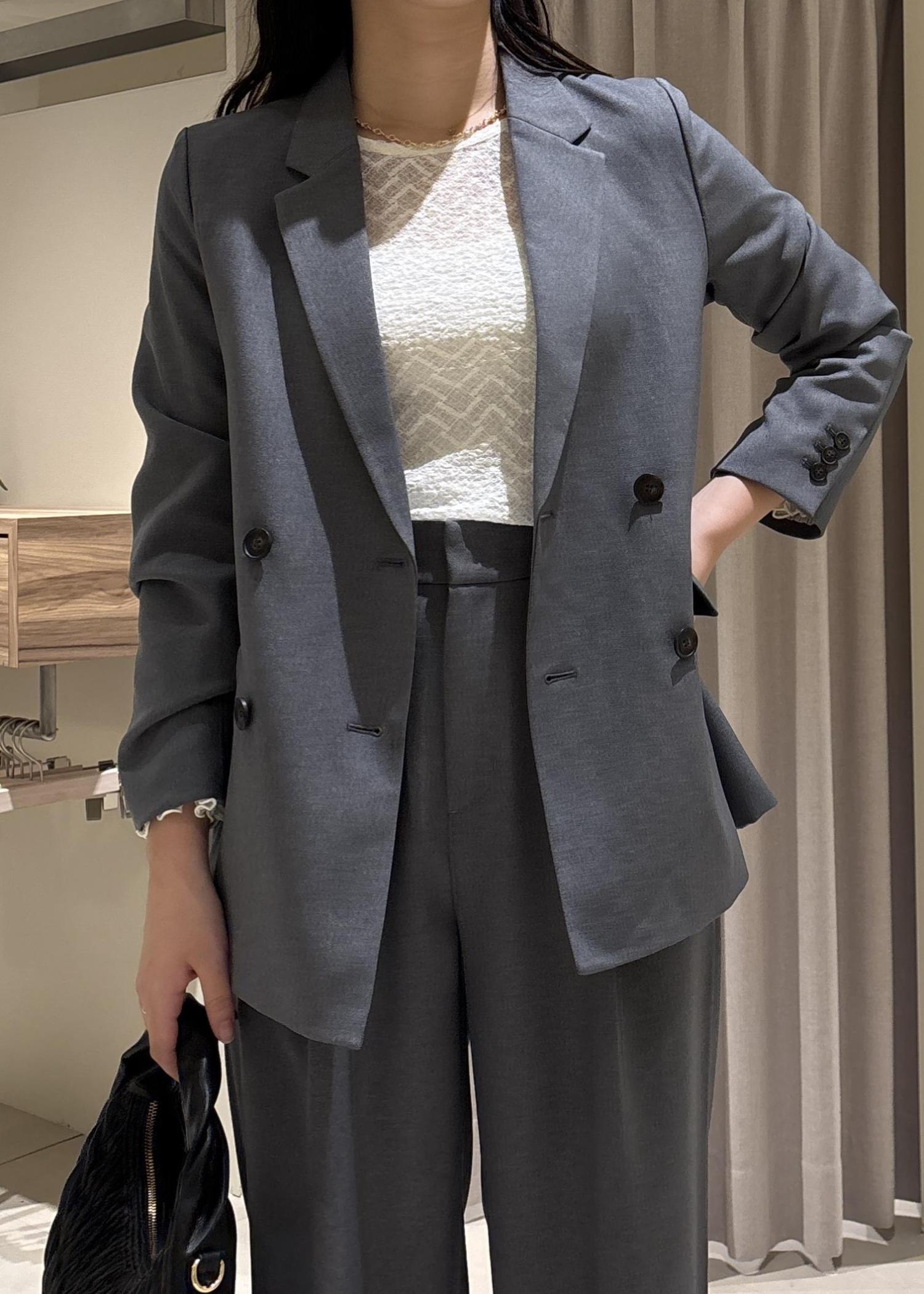 VIS【美easy】ウーリッシュダブルブレストテーラードジャケット【セットアップ対応/洗える】グレー / L¥8,899レビュー165cmでMサイズ着用しています!