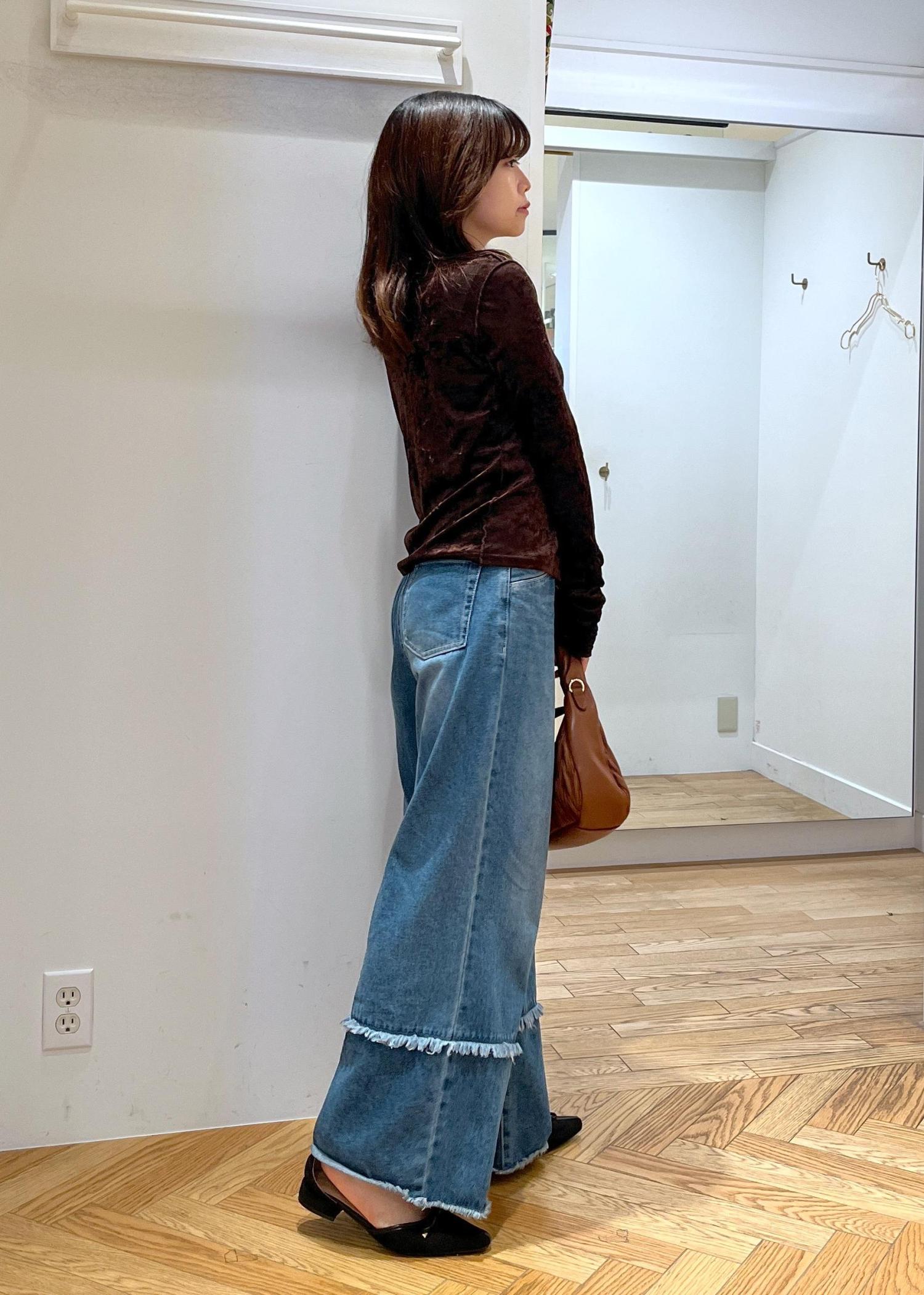 VISフリンジフレアデニムブルー系 / S¥4,395レビューウエストは少しゆとりがありますが、ニットなど暑さのあるものをインするとちょうど良いです。