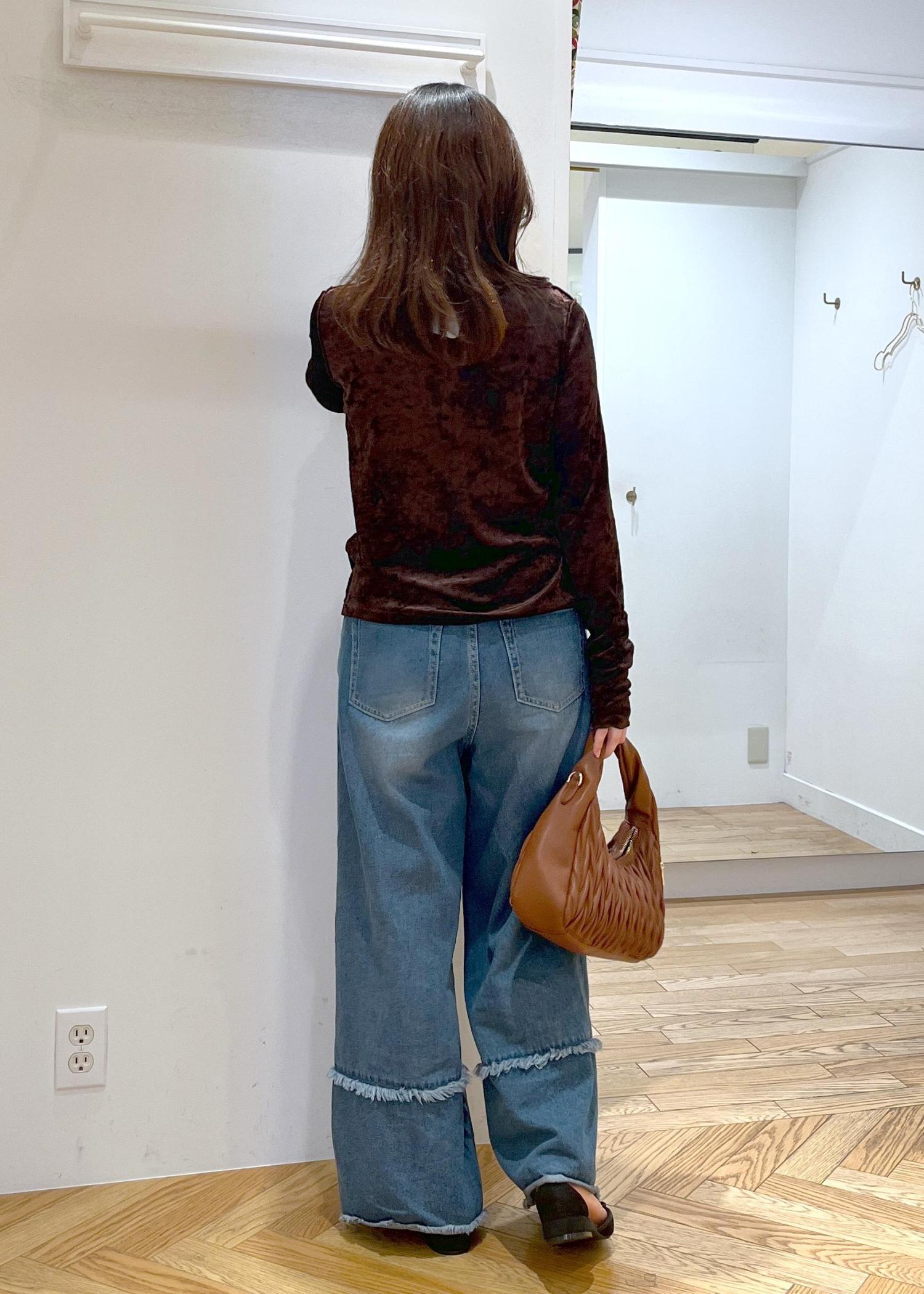 袖口のシャーリングがくしゅっとしていて、冬にインナーとしてレイヤードしても可愛いです。