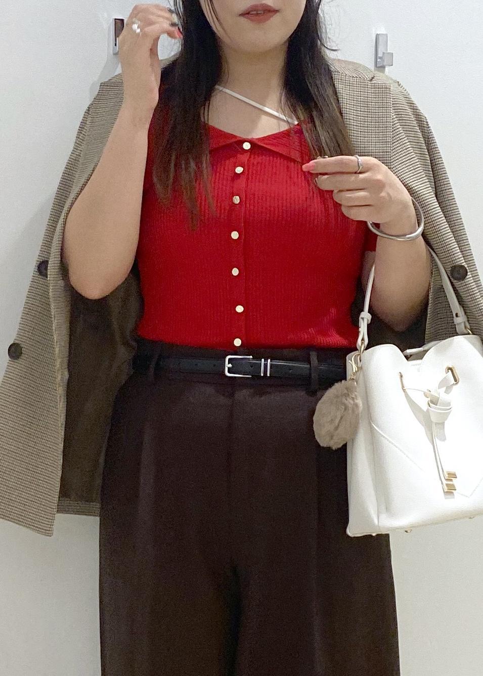 骨格ストレートなので、ピッタリすぎるシルエットは苦手なのですが首元の開きと大きめな襟元で、上半身がスッキリ見えやすいです。 -