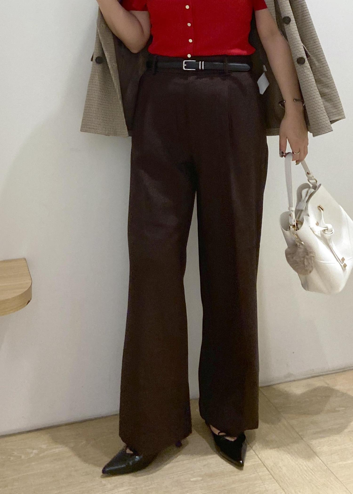 VIS【美easy】ウーリッシュワンタックワイドパンツ【セットアップ対応/洗える】ダークブラウン / L¥6,589レビューゆったりなウエストで、肌寒い季節に肌着や少し厚みのあるニットをインしやすいです。