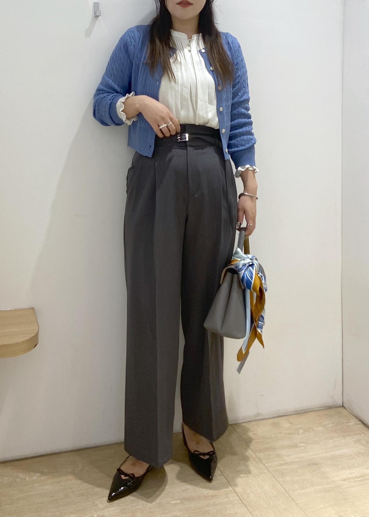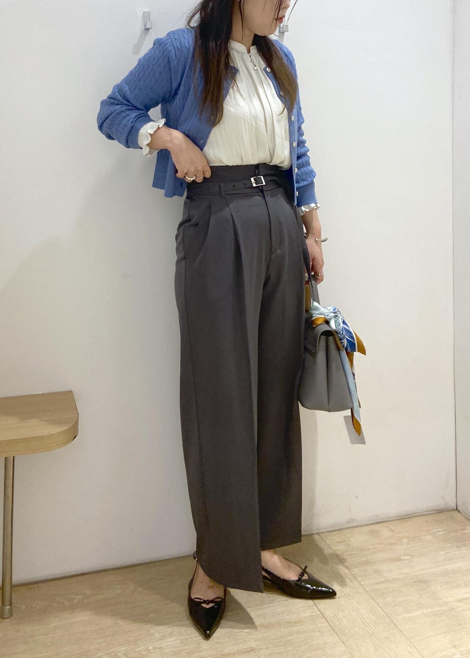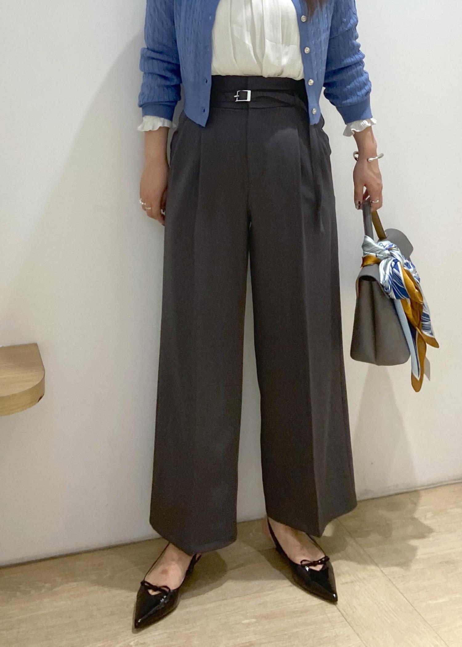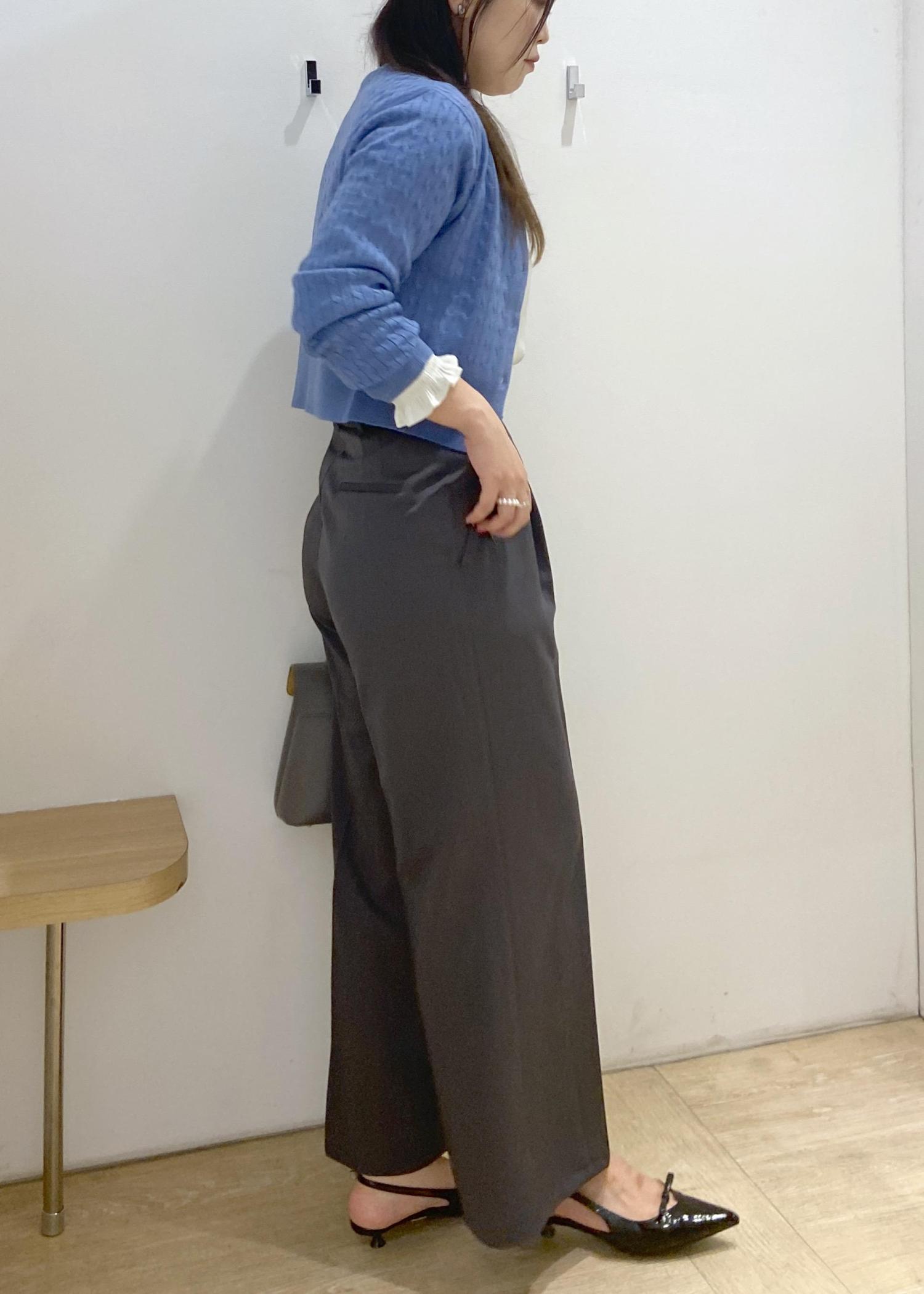 脚のラインを拾いにくいワイドシルエットですが、タックが入っていることでスッキリと見えやすいです。 -