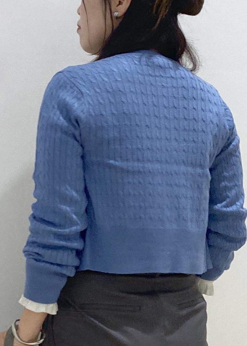 VIS【POLO BCS】VIS別注ミニケーブルノーカラーニットカーディガンサックス / F¥6,930レビューおへそが隠れる丈感です。