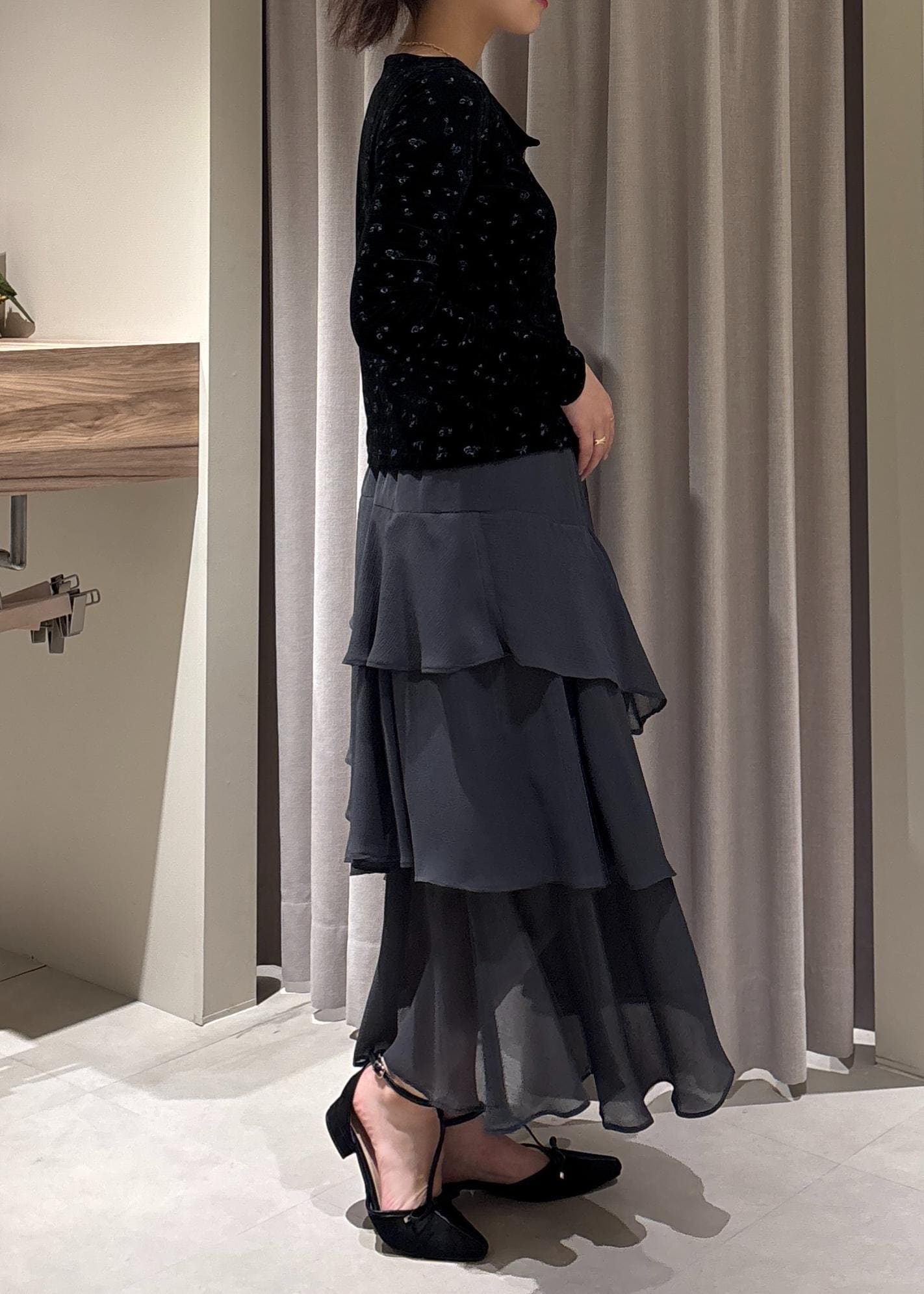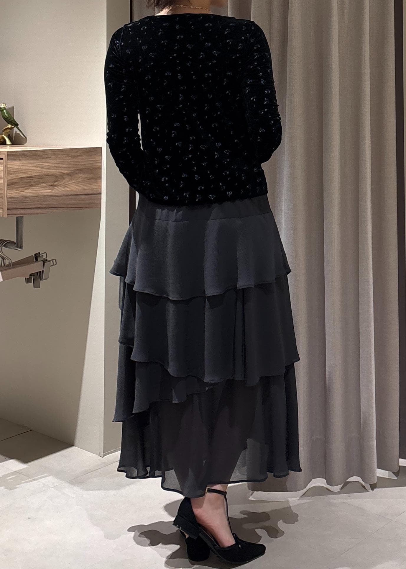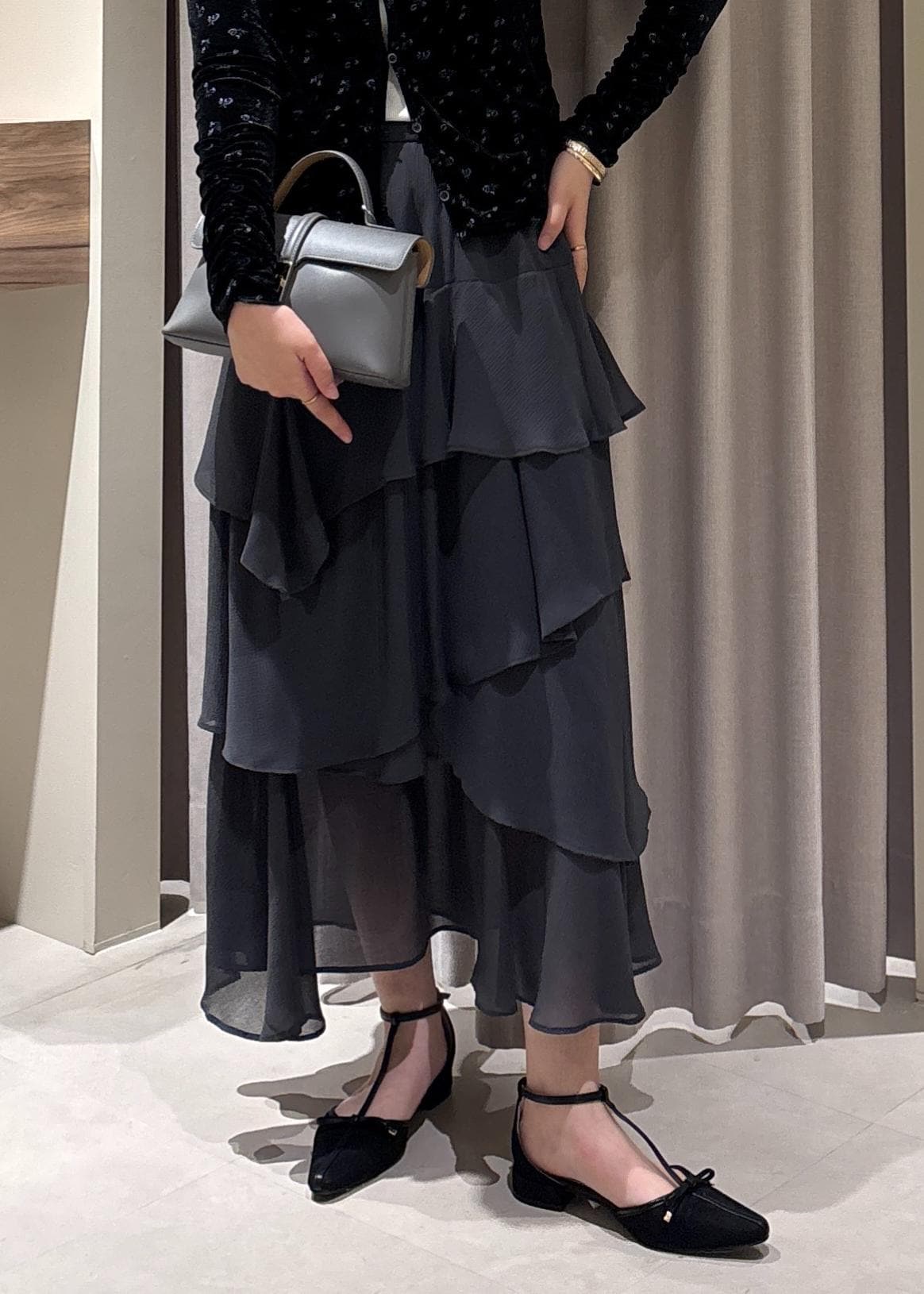 VIS花柄アソート楊柳ティアードスカートチャコール / F¥4,613レビューひらっと動くフリルがポイントになるティアードスカート!