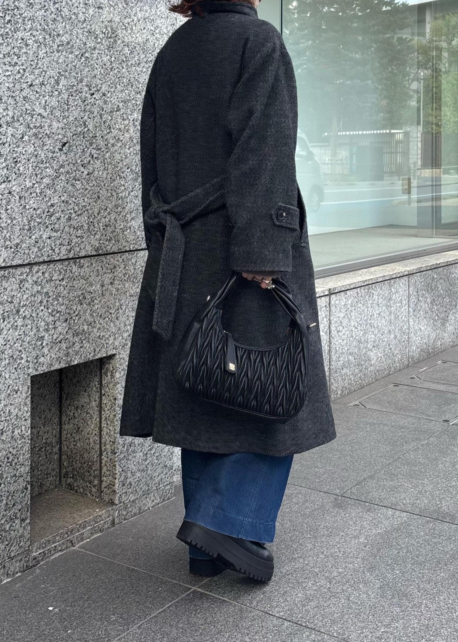 毎シーズン大好評の尾州ウールのシャギーコート♪見た目の高見えデザインに加えウールなのにとで軽く、着心地◎ゆっりめなアームなので、中に厚手のニットなども着やすいです!