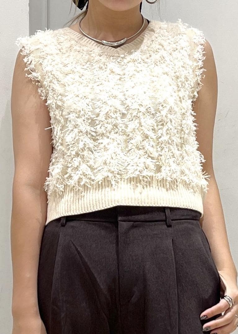 VIS【2WAY】フリンジニットベストキナリ / F¥5,929レビュー前後2wayなので首元の変化を楽しめるベスト!毛足もあるので華やかさも◎