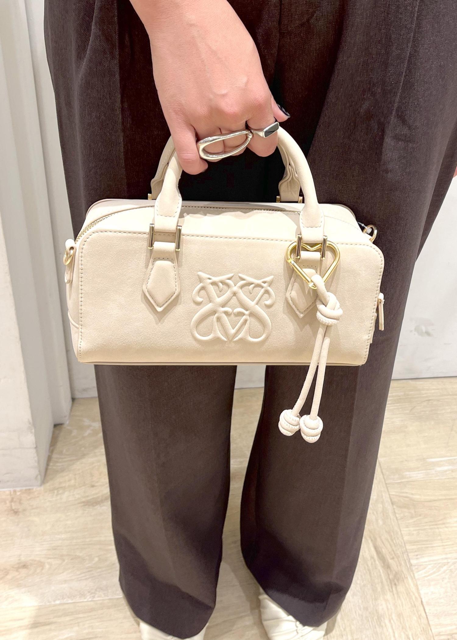 VISロゴスエードミニボストンバッグ/2WAYベージュ系 / F¥6,919レビュー可愛さもありつつ上品にも持てるスエード素材てコーデのポイントに!チャーム付きなのも嬉しい☺︎