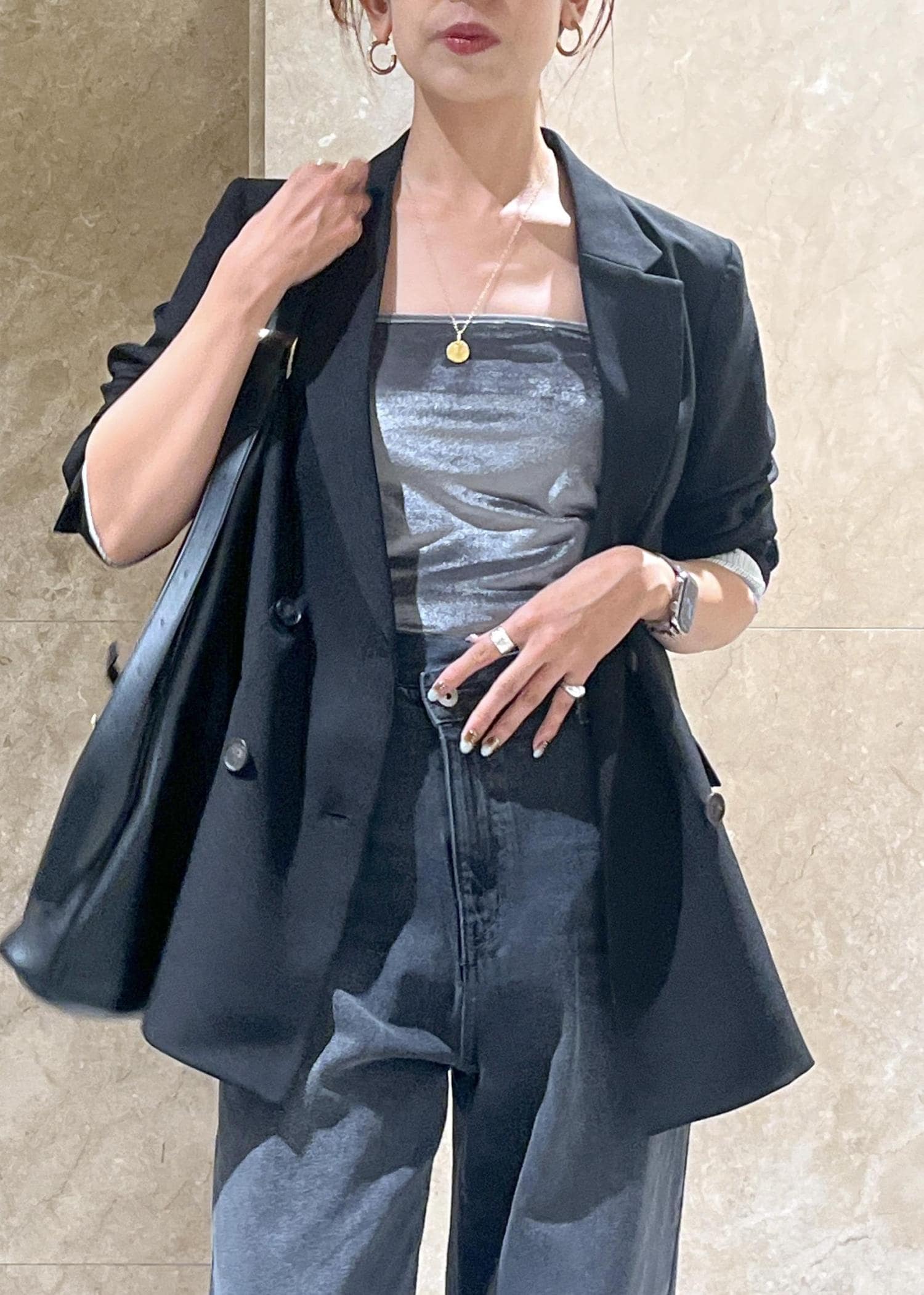 全体的にゆったりと余裕のあるサイズ感で、インナーは少し厚みのあるニットでも着られそう!