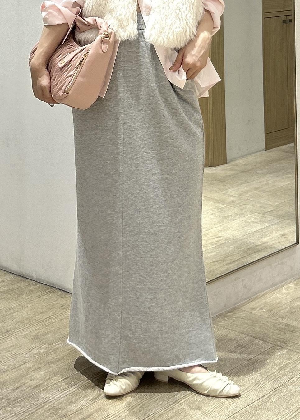 VISミニ裏毛ナロースカートライトグレー / F¥5,489レビュー157cmでくるぶしが隠れるくらいの着丈でした。