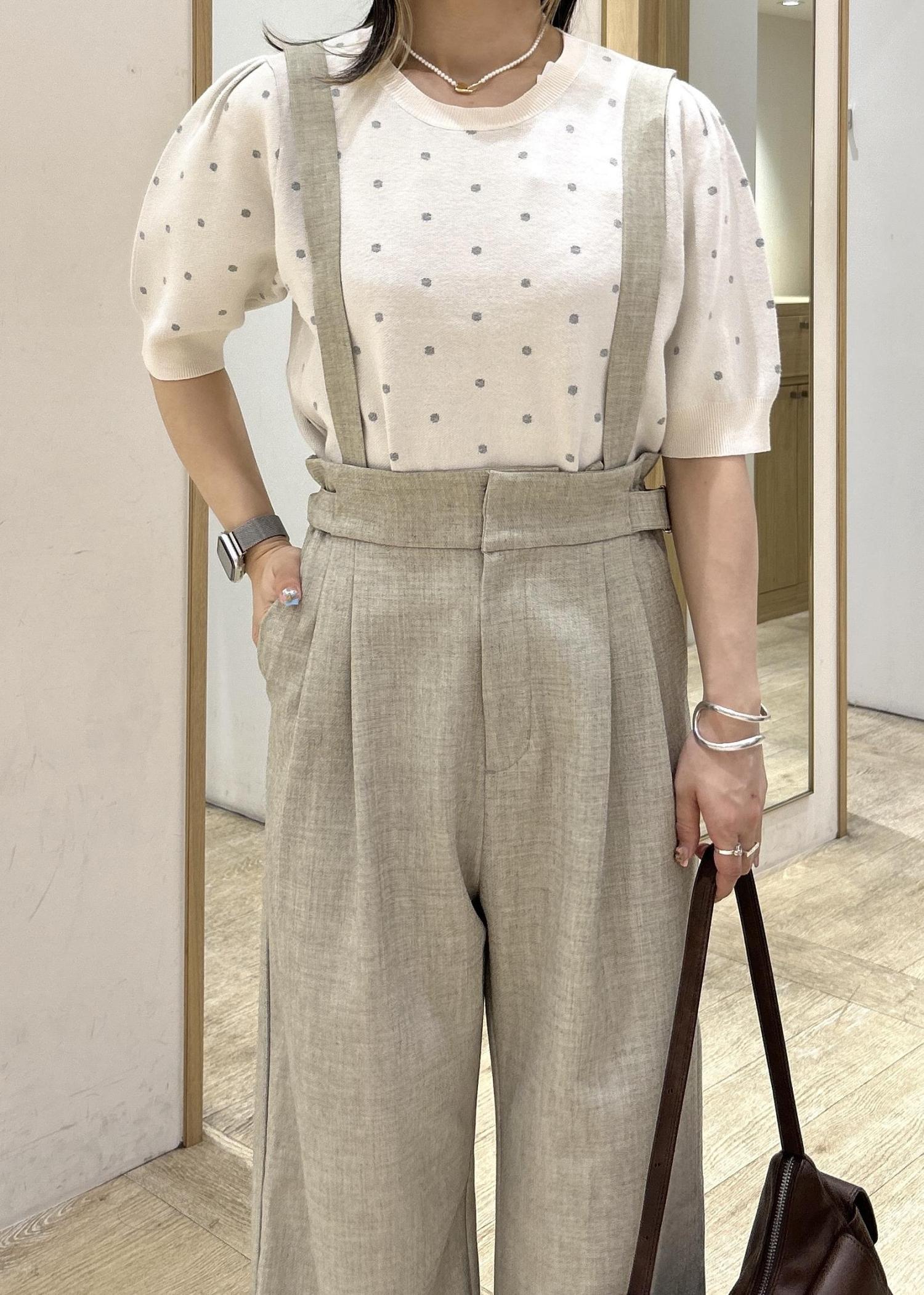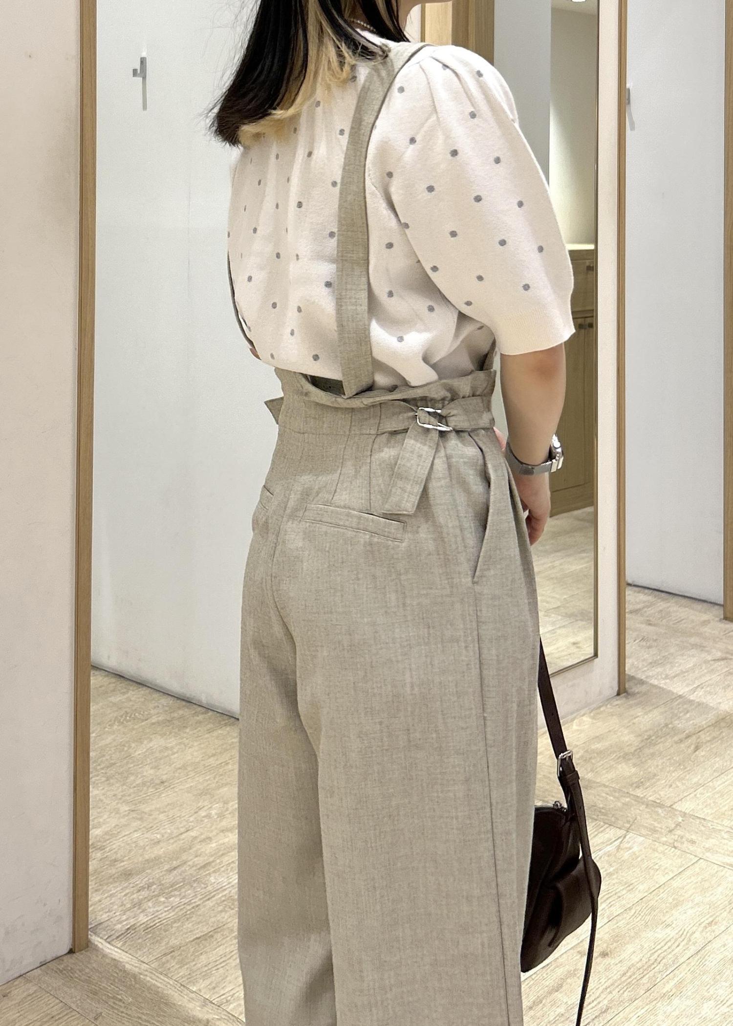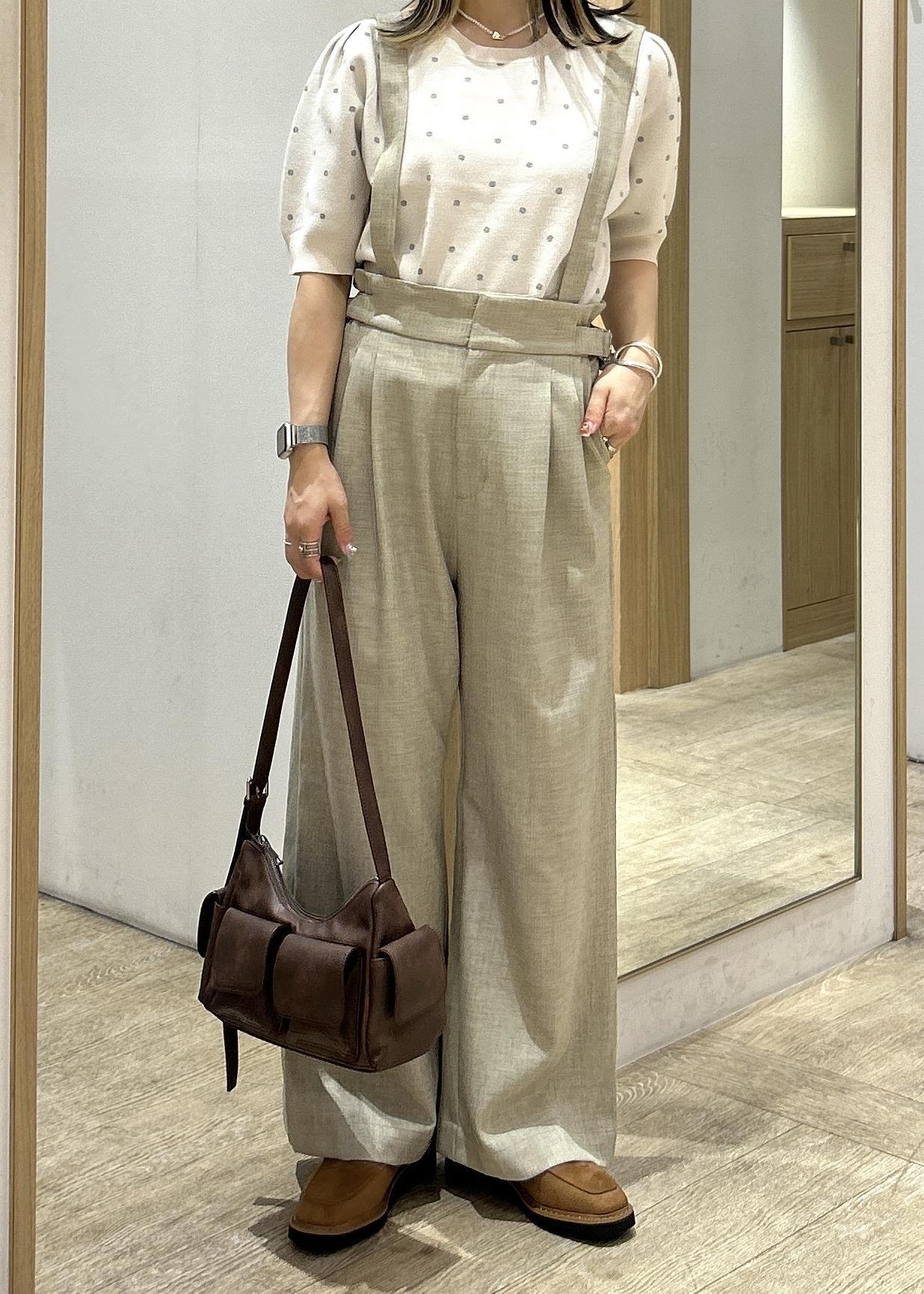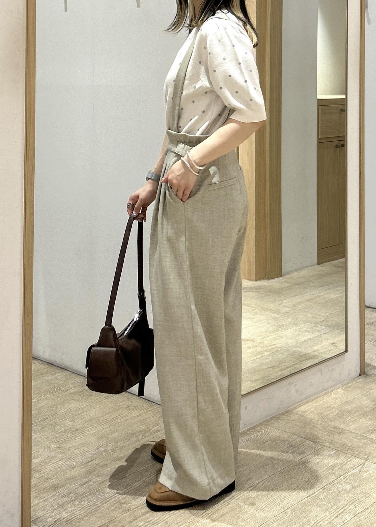 着丈も少し長めですが、サスペンダー付きなのでフラットシューズでも引きずることなくジャストで着用できました!