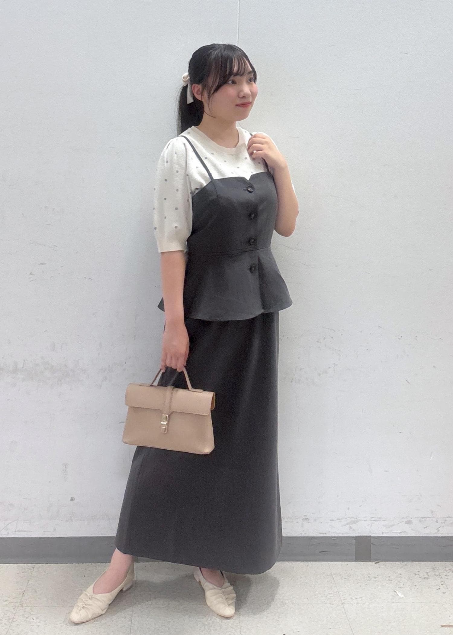 VISドットジャガードニットキナリ系 / F¥3,842レビュートレンドのドット柄とお袖のパフスリーブ風の形がなんとも可愛らしくフェミニンな印象を与えてくれます♡