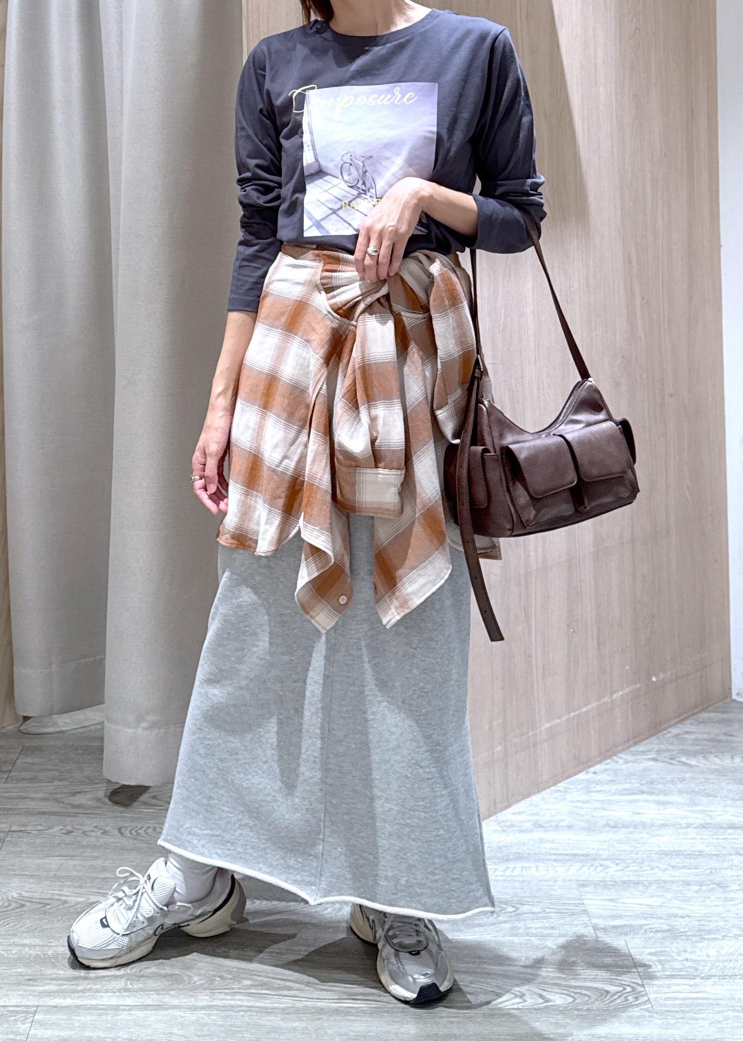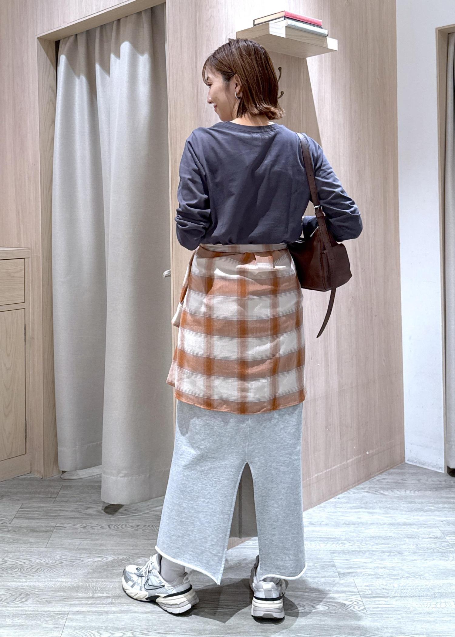 ロンT合わせだとシンプルなので腰にチェックシャツを巻いてポイントにしました♪