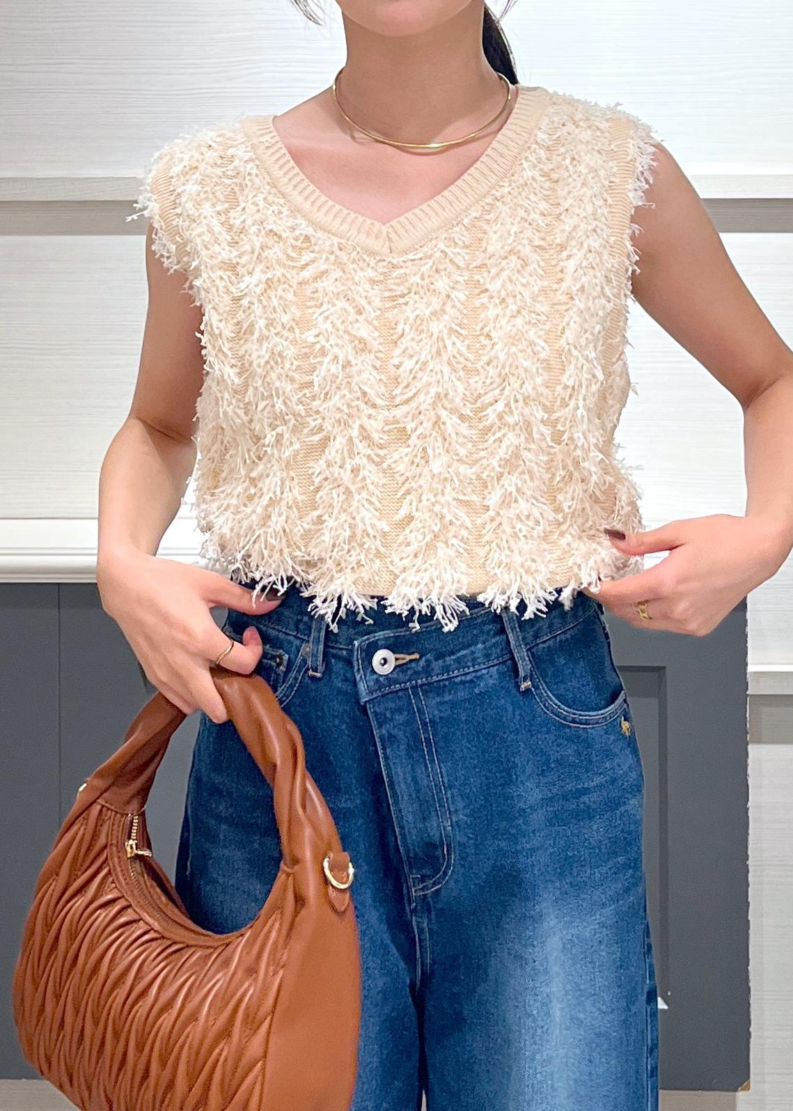 VIS【2WAY】フリンジニットベストキナリ / F¥5,929レビュー156cmで腰がしっかり隠れる丈感です。